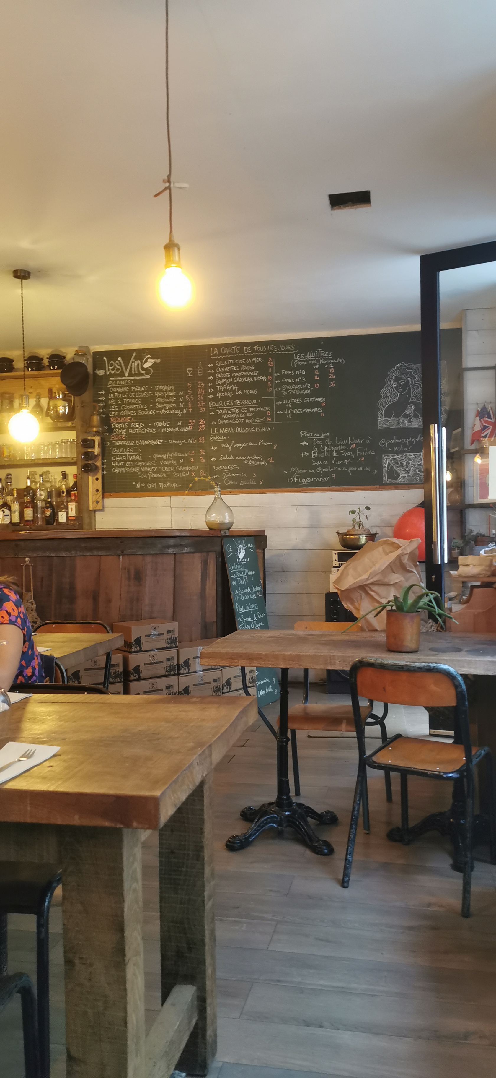 Le lieu est grand et très agréable. Les vins et les mets sont vraiment de qualité. J'ai adoré la terrine de truite et la planche de fromage/charcuterie qui sont très copieux. L'accueil est en outre hyper chaleureux. Je recommande vivement !!
