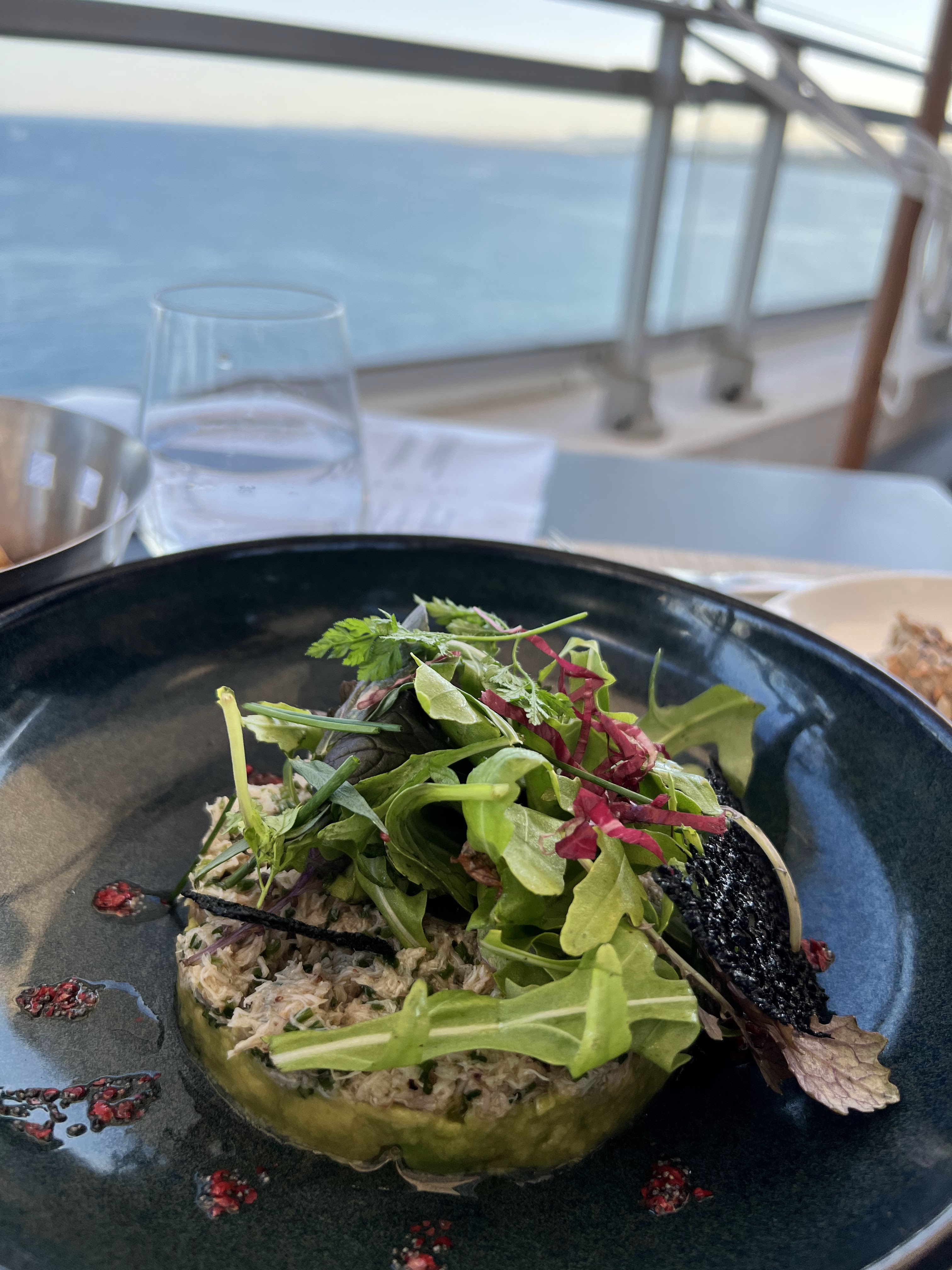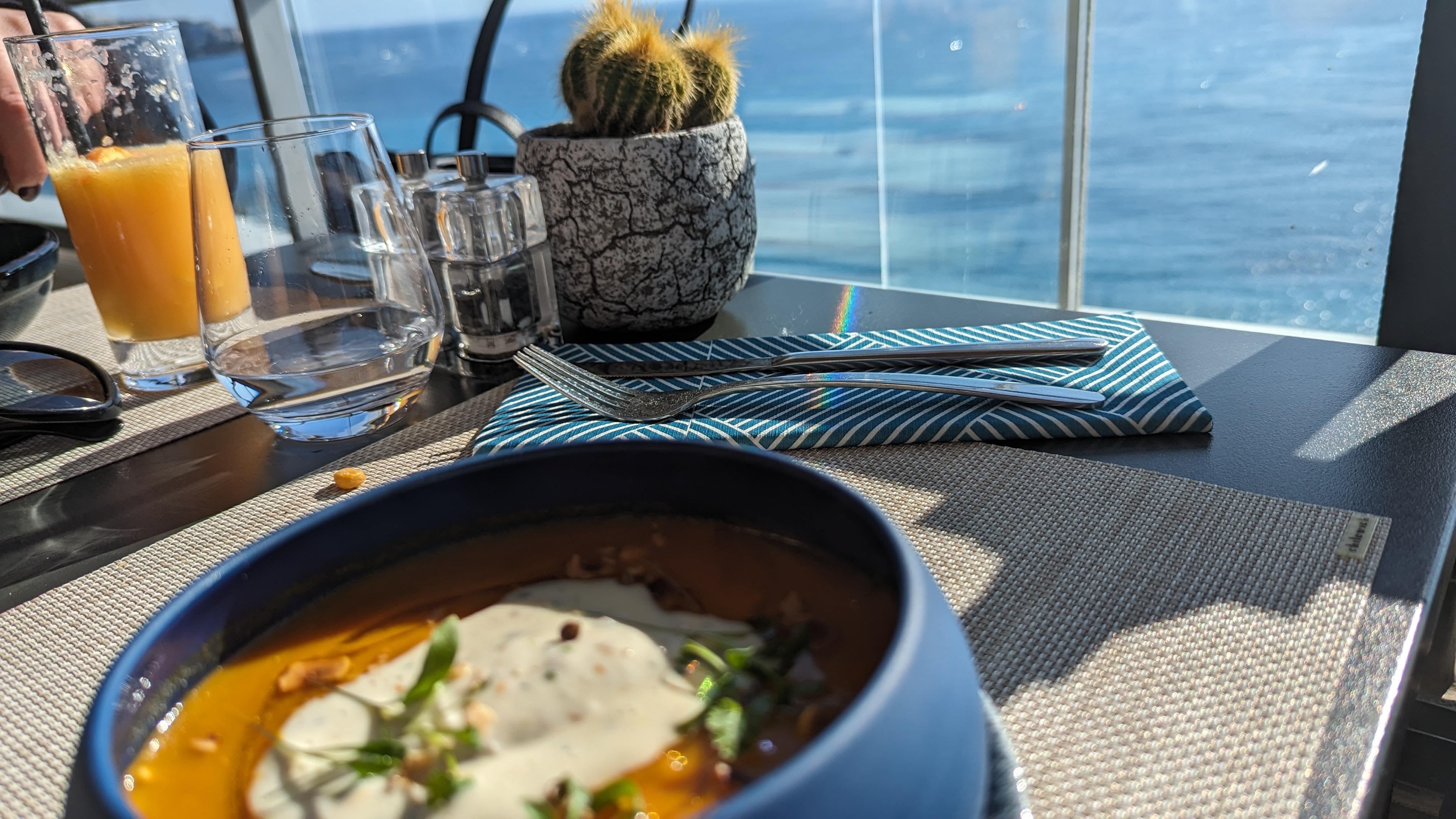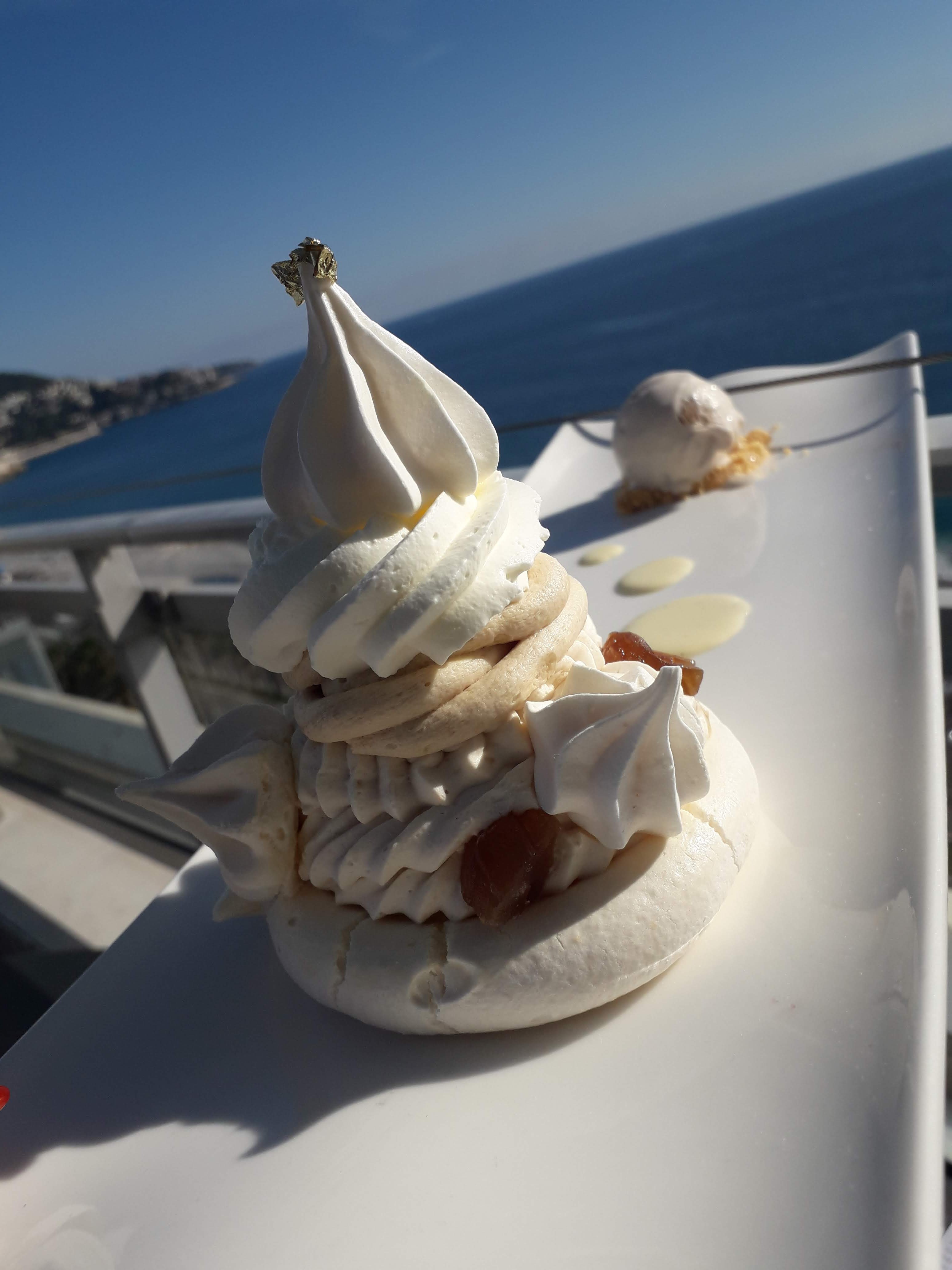 Un moment de régal suspendu entre ciel et mer. Le plaisir des papilles et des yeux. Une vue magnifique.