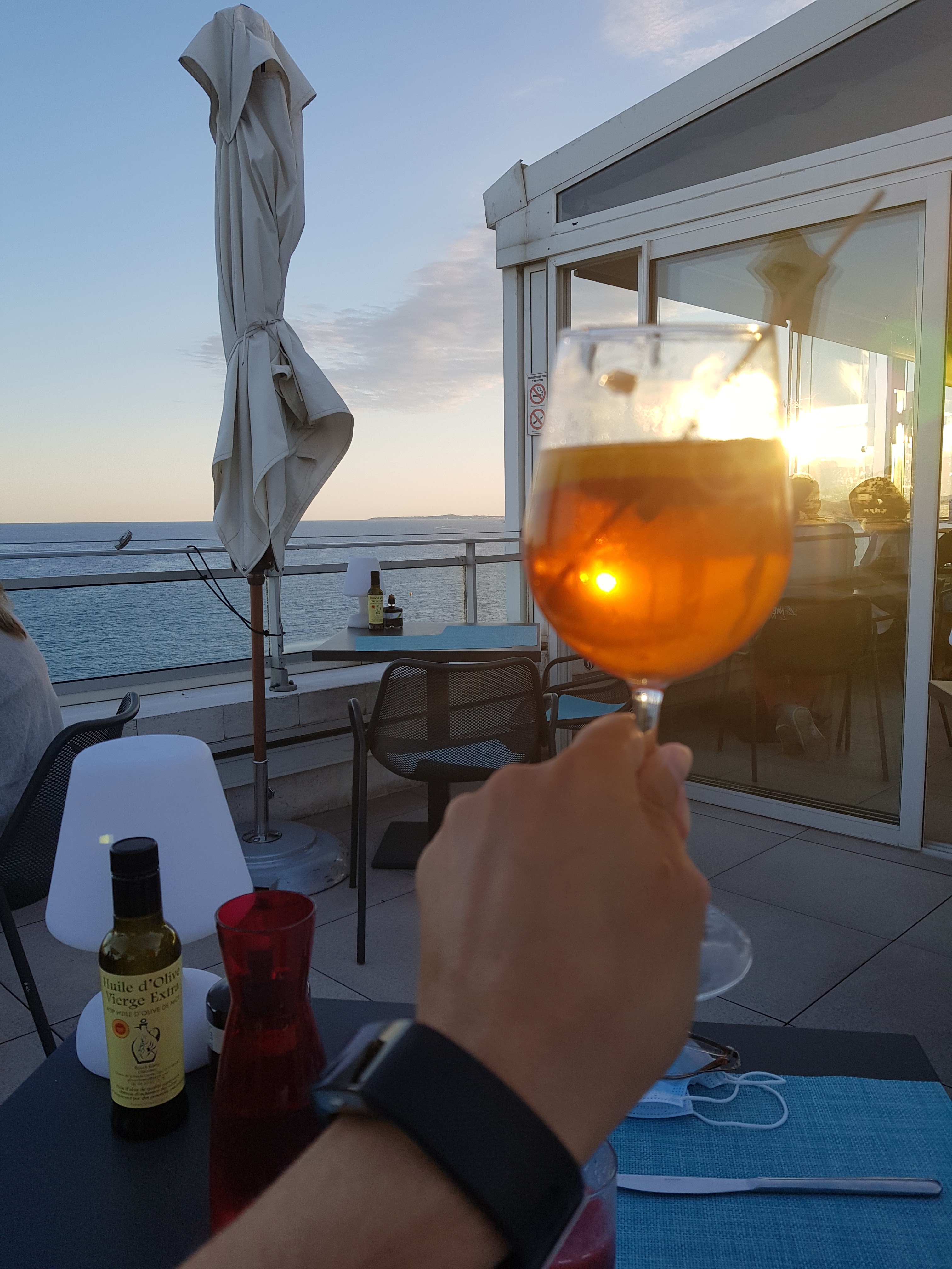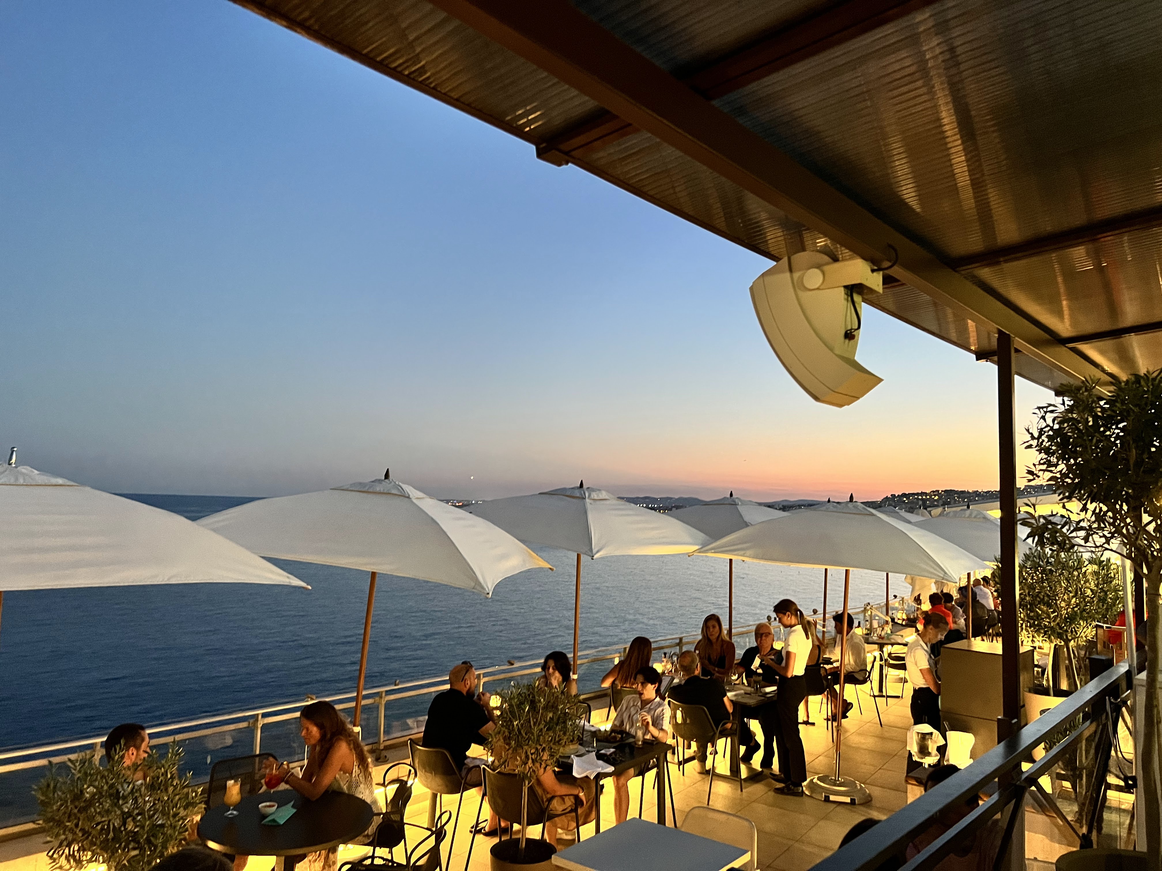 Magique terrasse pour déguster un cocktail, une coupe de champagne en profitant dune vue imprenable sur la baie des anges 😍. En été, l'endroit est très prisé. Préconisez plutôt une visite hors affluence pour bénéficier d'une table en 1ère ligne.