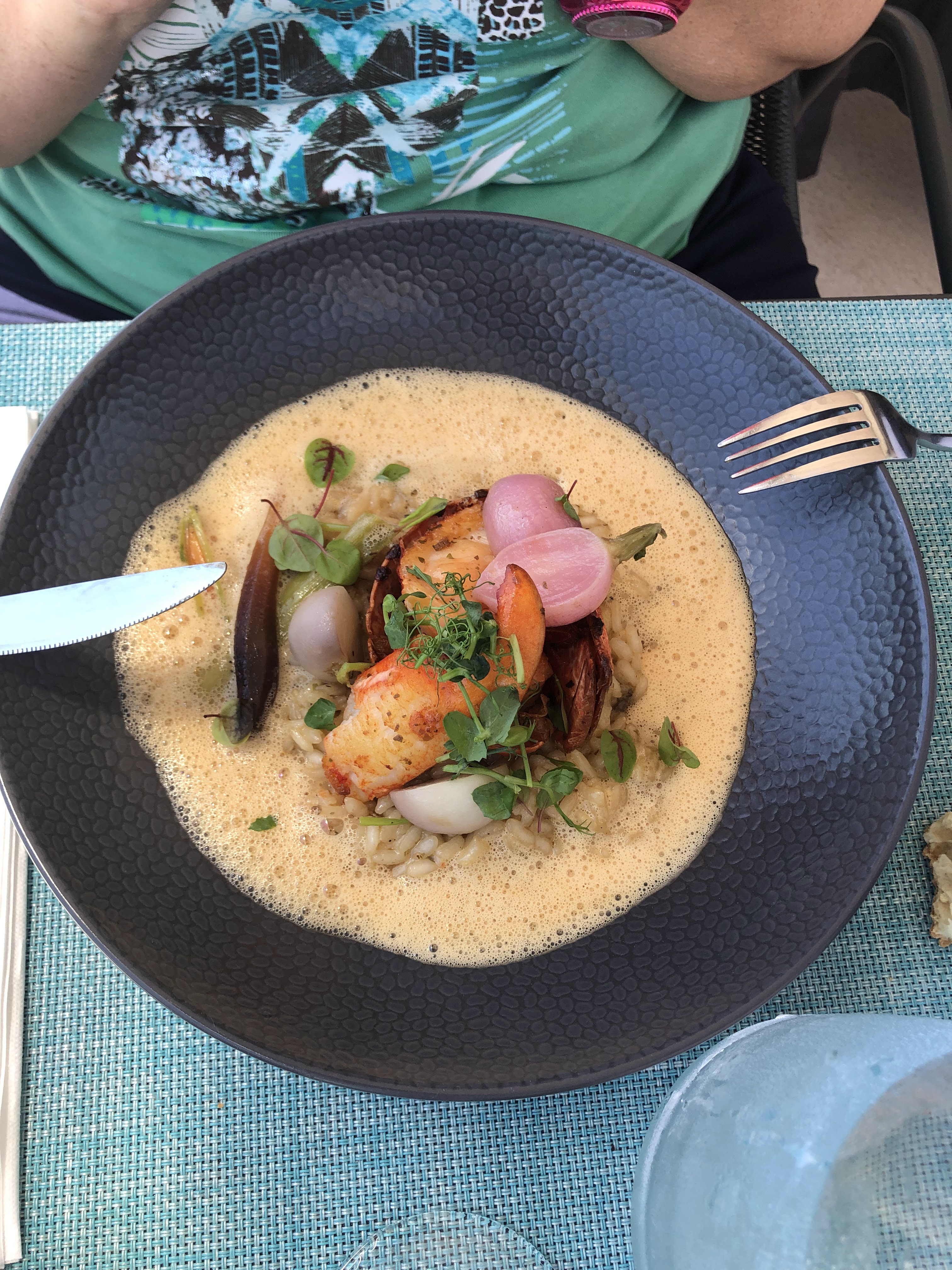Au début, nous étions inquiets d'avoir commis une erreur. Apparemment, personne ne voulait venir nous asseoir. Tout va bien au final. Le risotto au homard était merveilleux. La vue est incroyable.