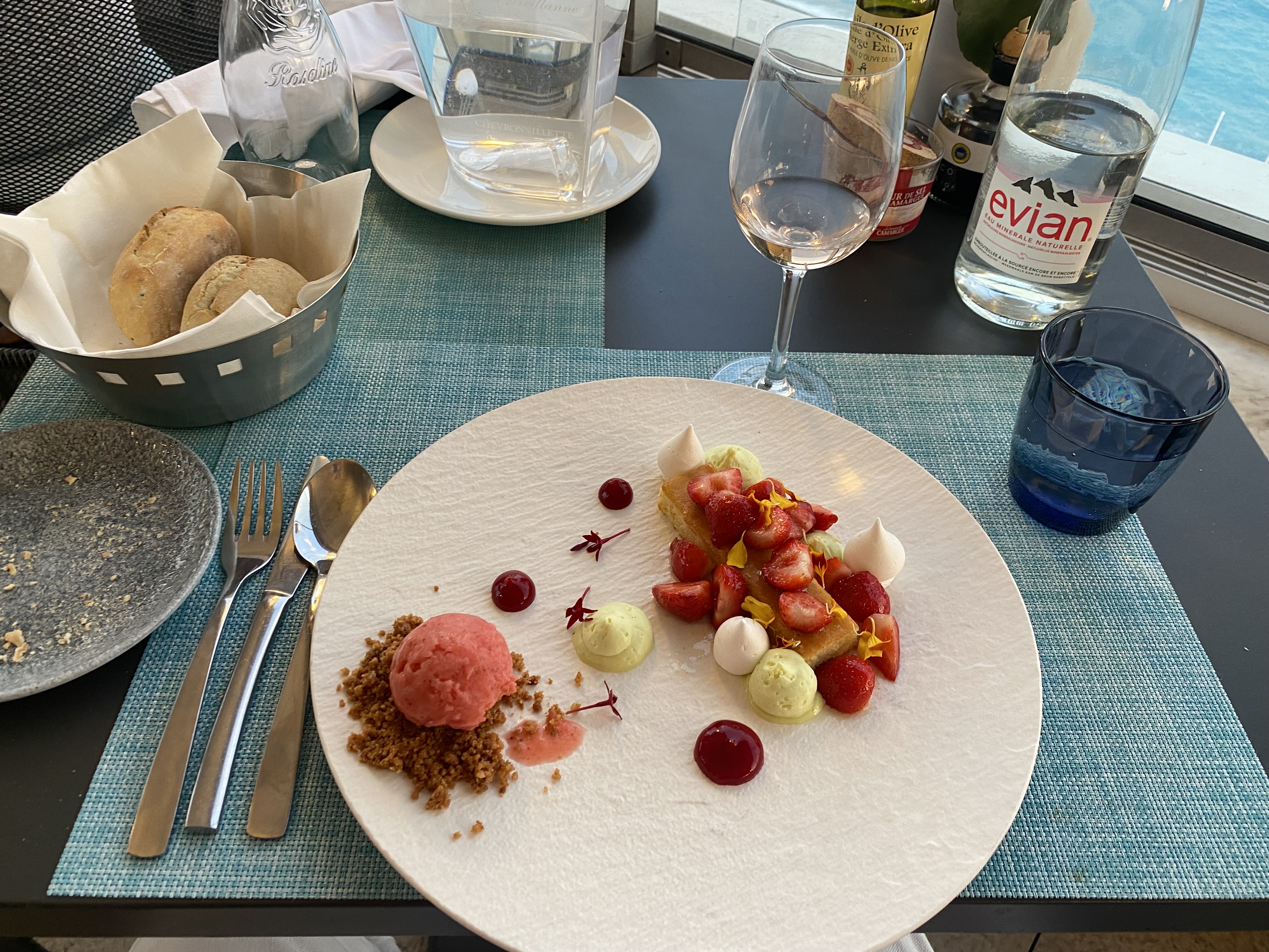 Terrasse magnifique, personnel au petit soin, petit bémol sur le plat qui aurait pu être un peu mieux présenté mais néanmoins très bon et magnifique dessert.