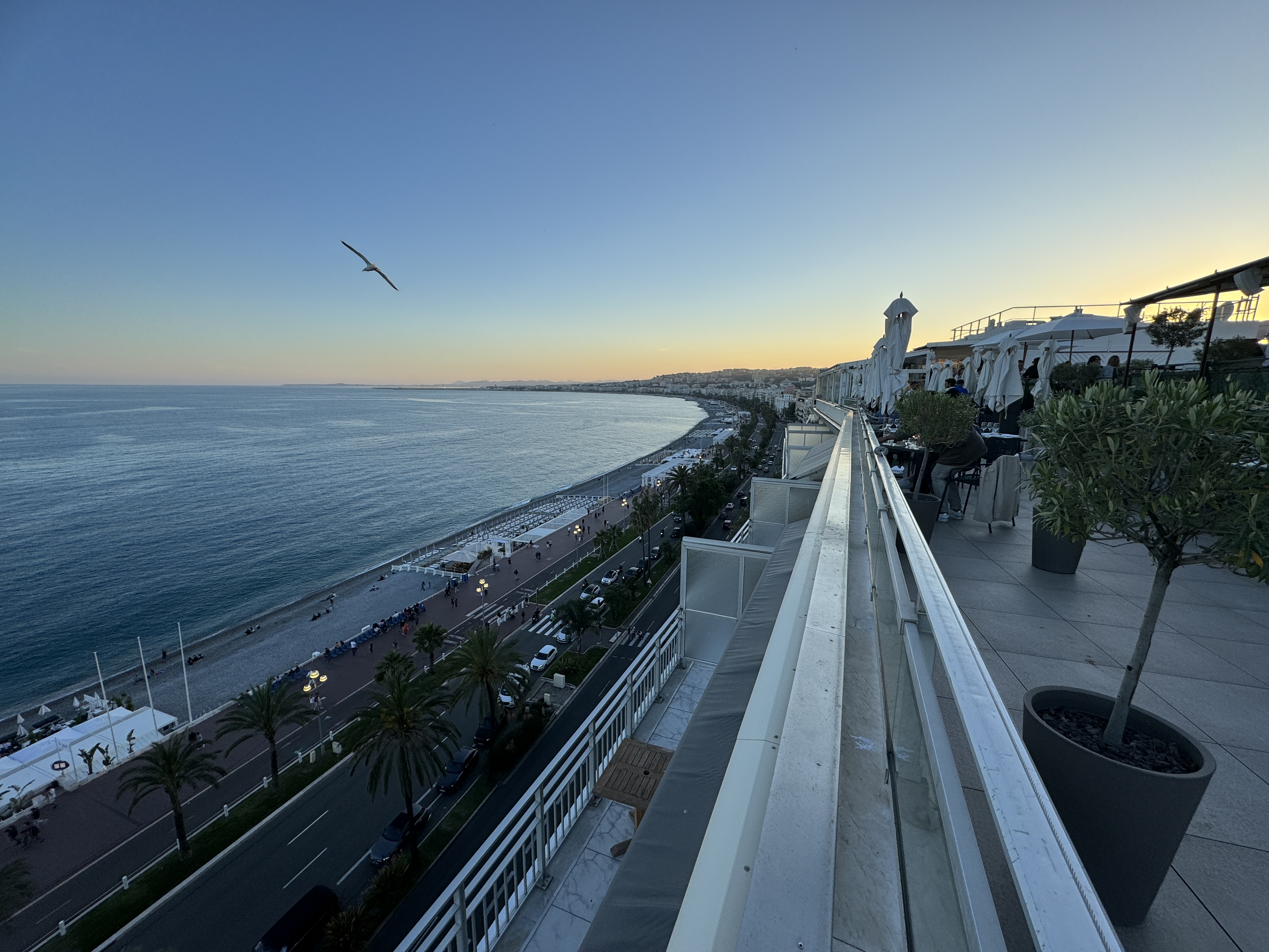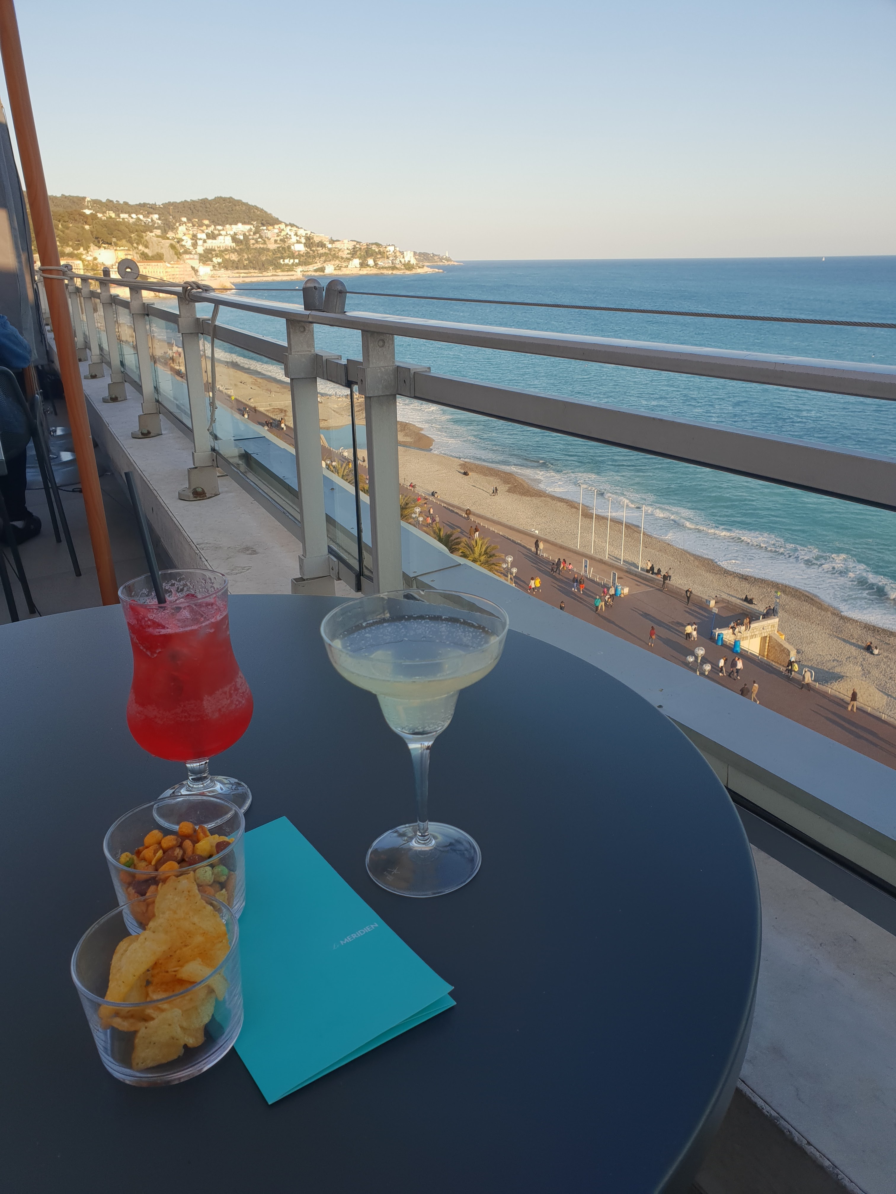 Beau rooftop au dessus de l’hôtel « Le Méridien », un personnel accueillant, bel endroit pour apprécié un café ou cocktail avec une vue sur la promenade des anglais.