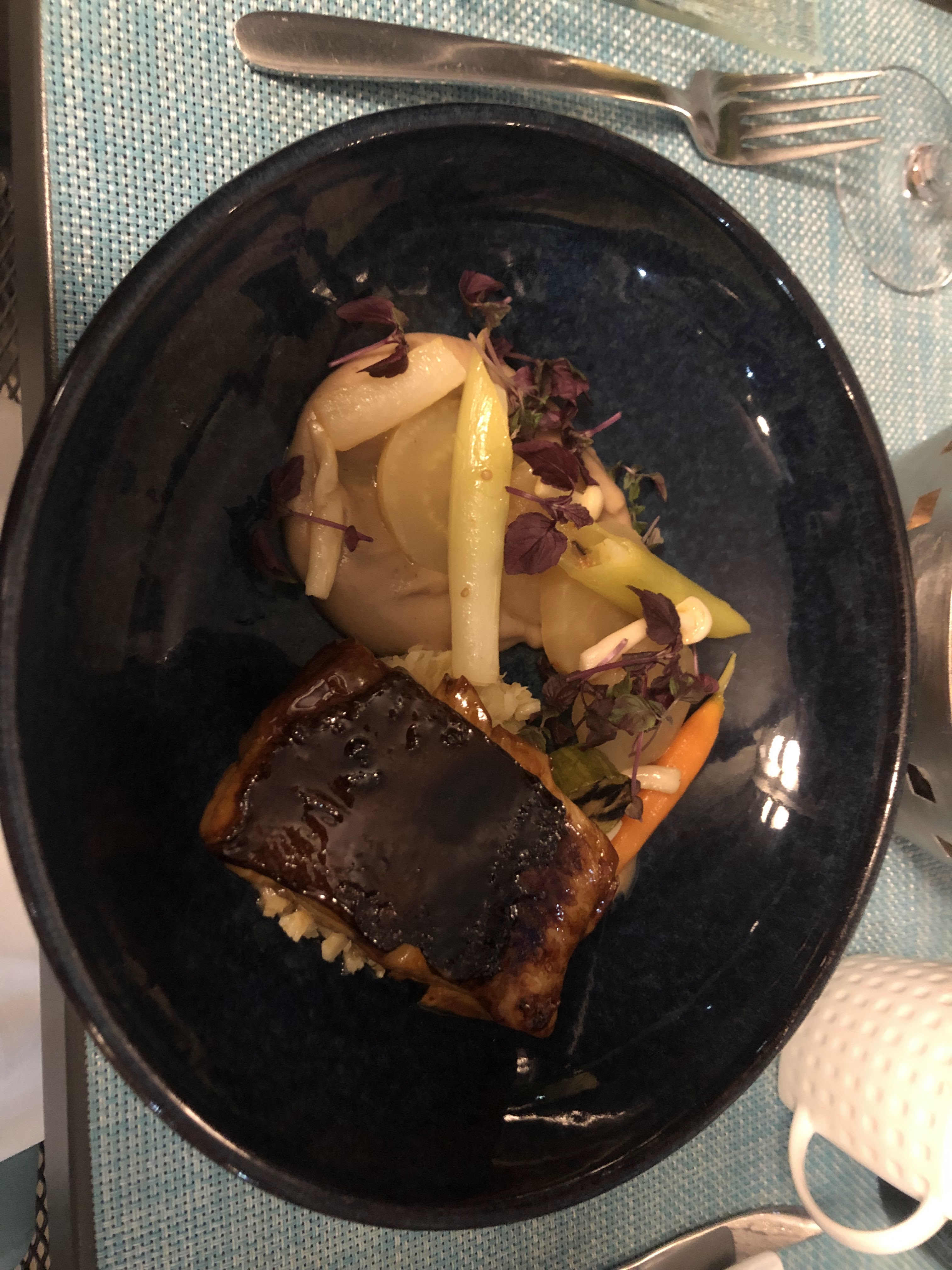 Je n'aimais pas trop la nourriture. C'était trop prétentieux et manquait de saveurs qui fonctionnaient ensemble. Cependant, la vue était fantastique. Je ne resterais que pour des boissons et des petites assiettes.