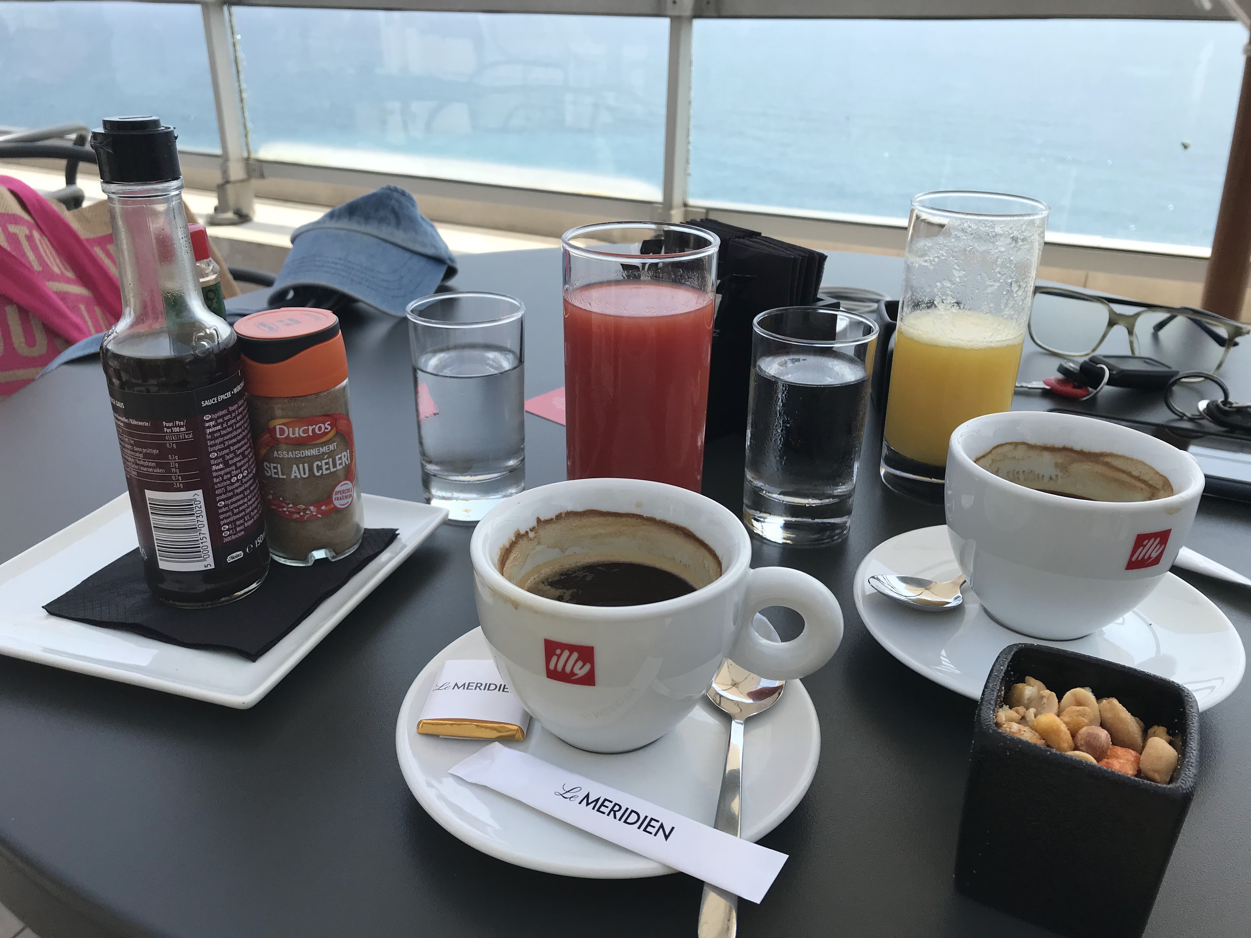 Vue superbe. Le carpaccio de St Jaques à 24€ se résume à 6 lamelles ... et le verre de vin 15€... trop chers Quant aux toilettes du restaurant, elles ne sont pas dignes de la renommée du Méridien Le personnel est aimable.