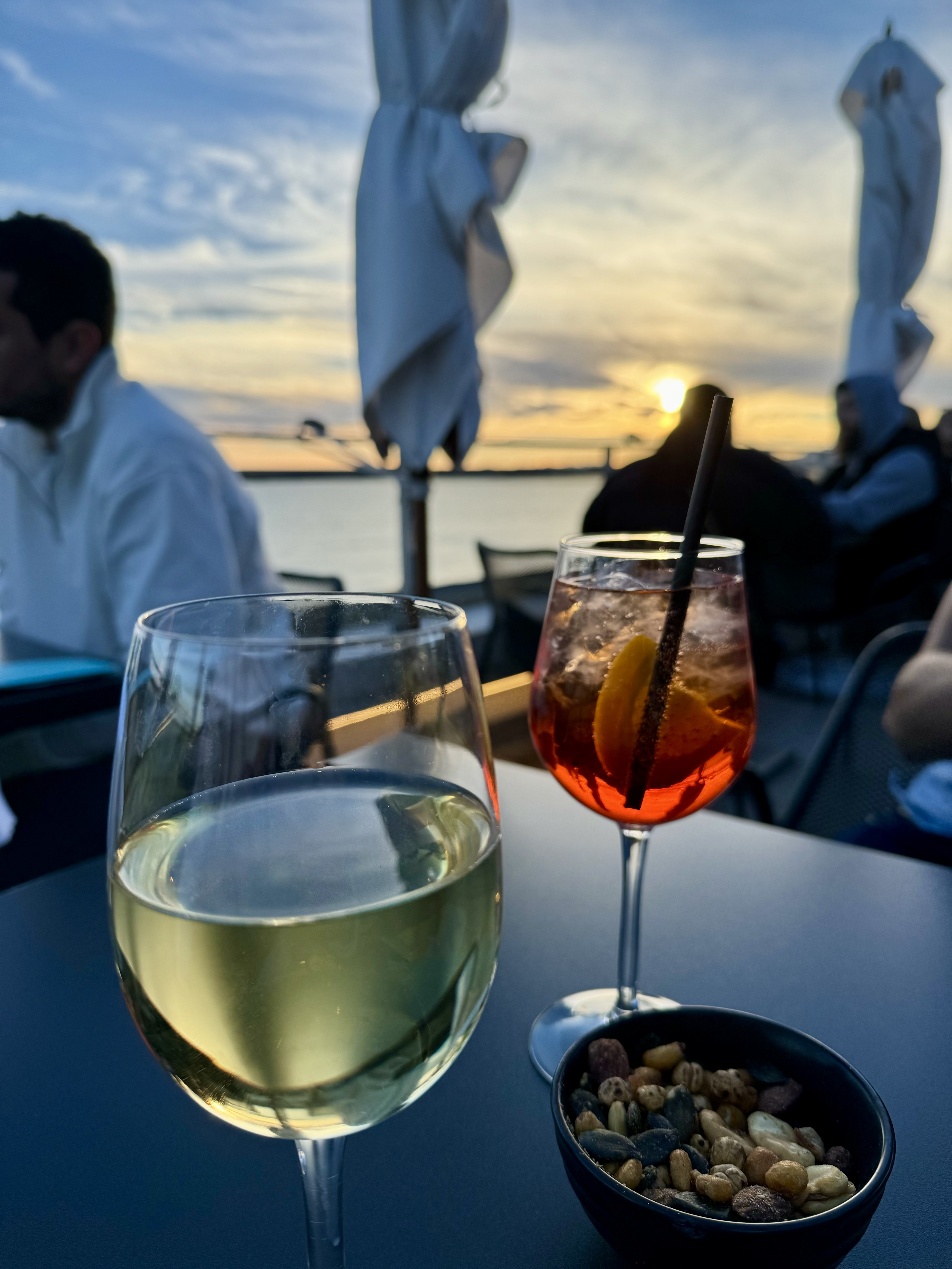 Bien que ce soit un endroit charmant avec une vue magnifique sur la mer et le coucher du soleil, j'ai eu deux problèmes lors de ma visite. Premièrement, le service était assez médiocre. J'étais là lors de la soirée d'ouverture du festival de jazz qui se déroulait en contrebas. Oui, il y avait beaucoup de monde, mais le restaurant aurait pu/aurait dû anticiper cela et doter le personnel en conséquence. Deuxièmement, pourquoi ils ont dû avoir un DJ diffusant une musique en conflit avec le festival de musique ci-dessous me dépasse. En fin de compte, la direction n'a pas regardé le calendrier lors de la planification du personnel pour la soirée. Mon mojito au gingembre avait un goût étrange, mais le barman était heureux de le soigner. Je vais réessayer et j'espère avoir une meilleure expérience.