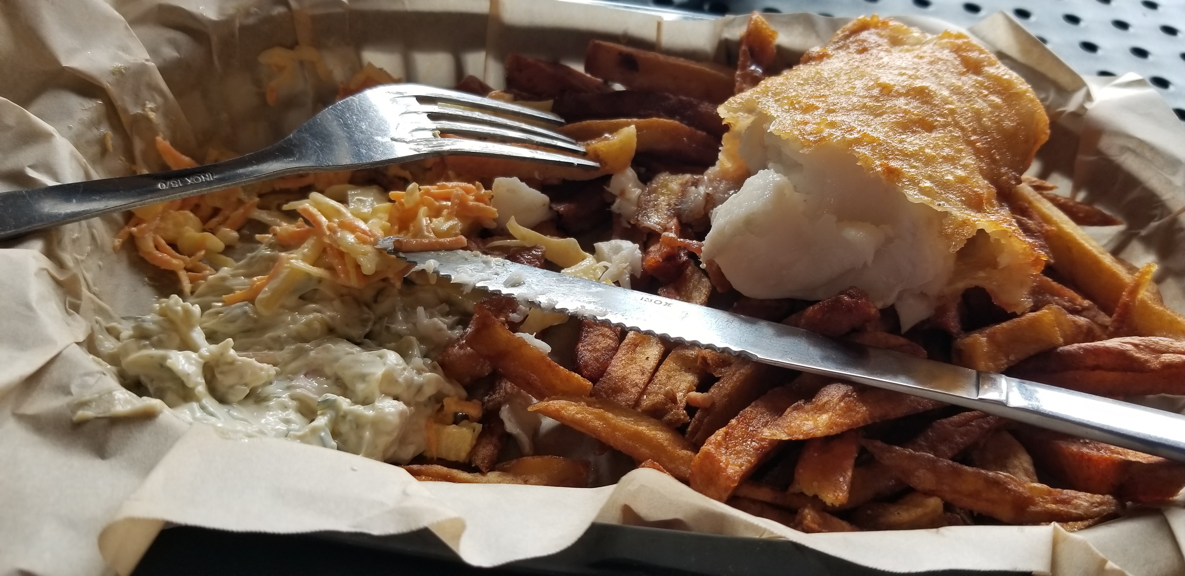 Pause déjeuner tardive par hasard, le Fish & chips est excellent, sauce tartare maison, le poisson cuit à point! Concept sans prétention mais on s’est régalé !