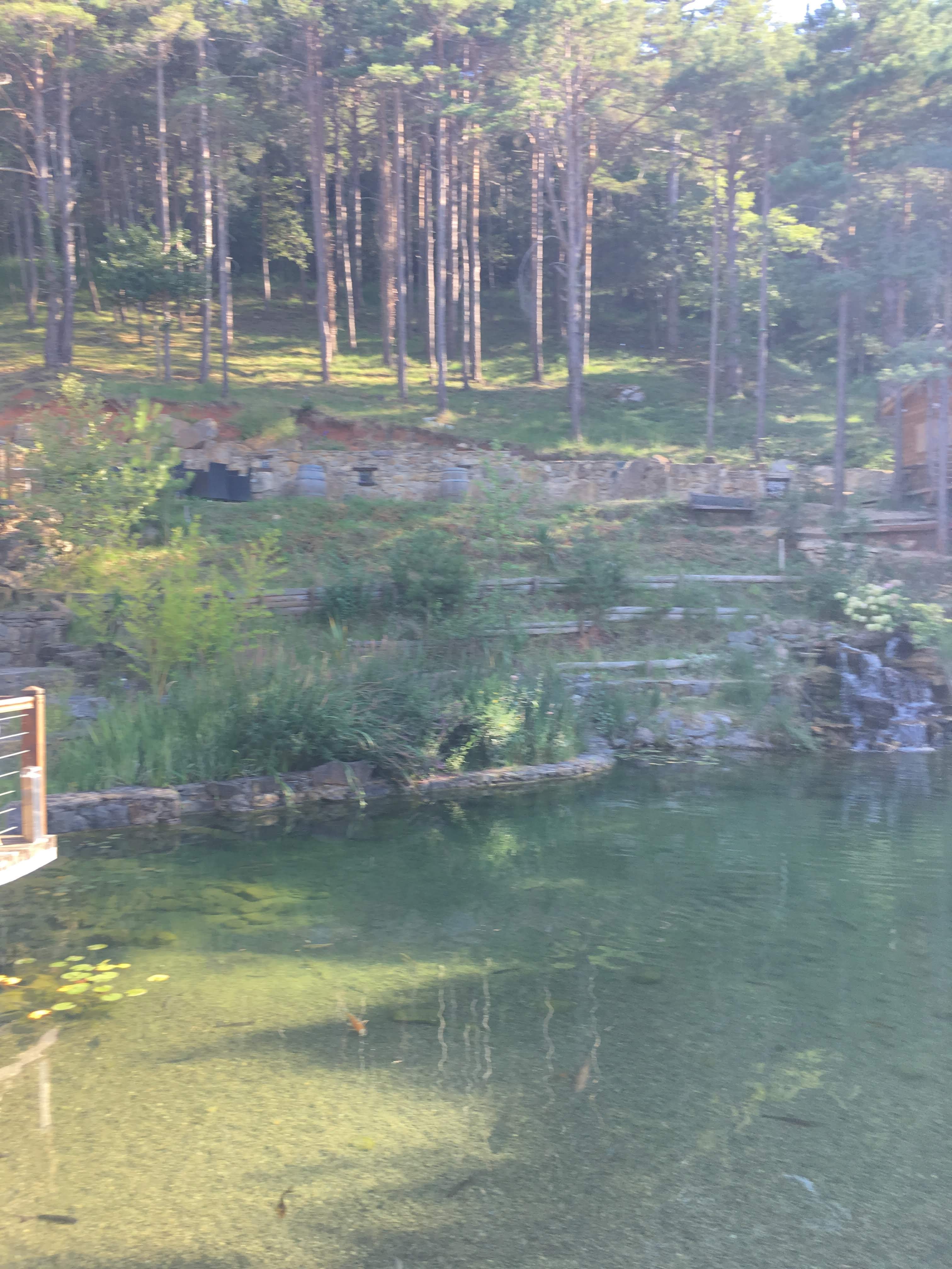 Super lieu avec terrasse et mare avec beau poissons , service sympa,sans chichi.ideal pour famille avec jeune enfant