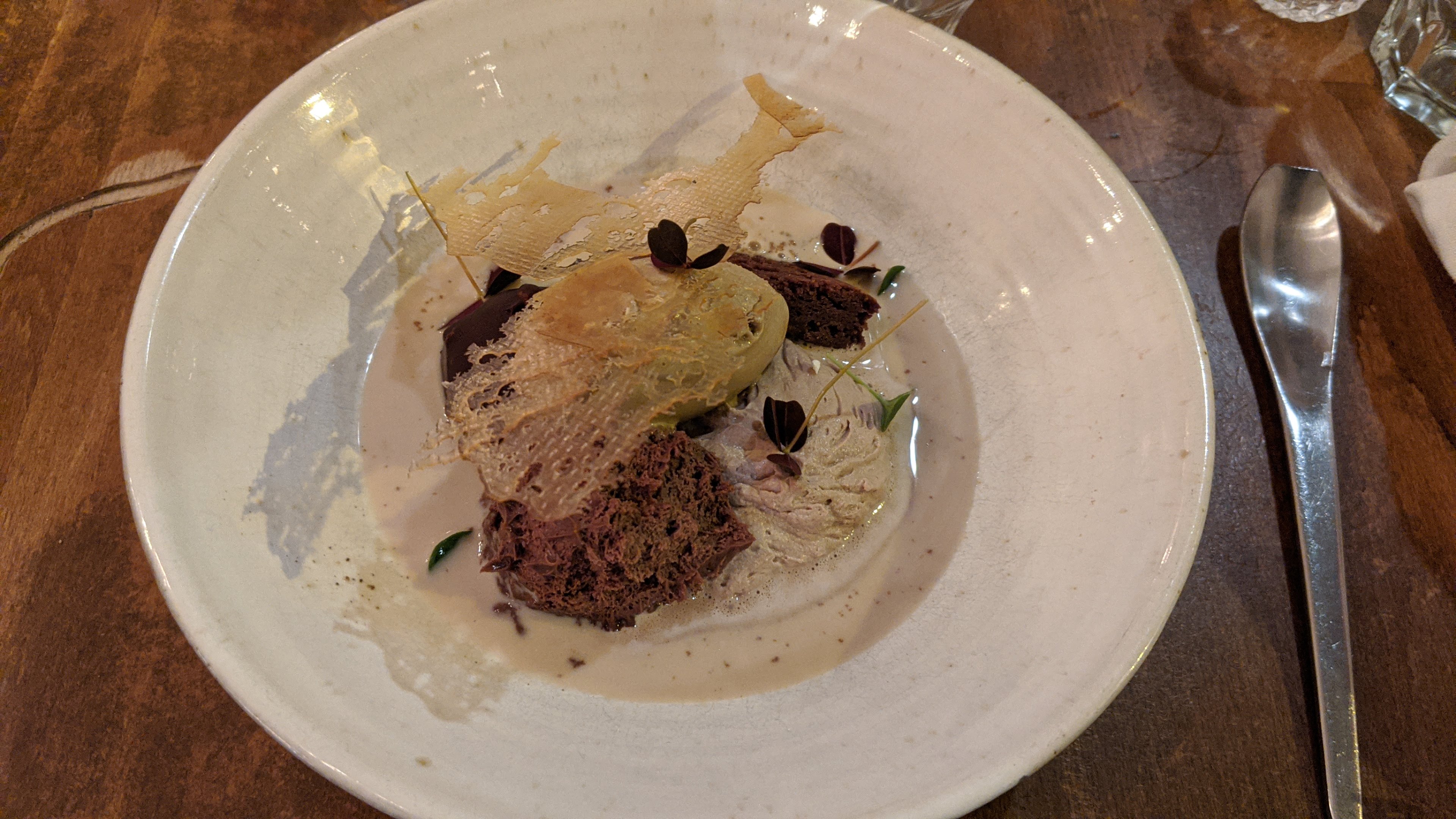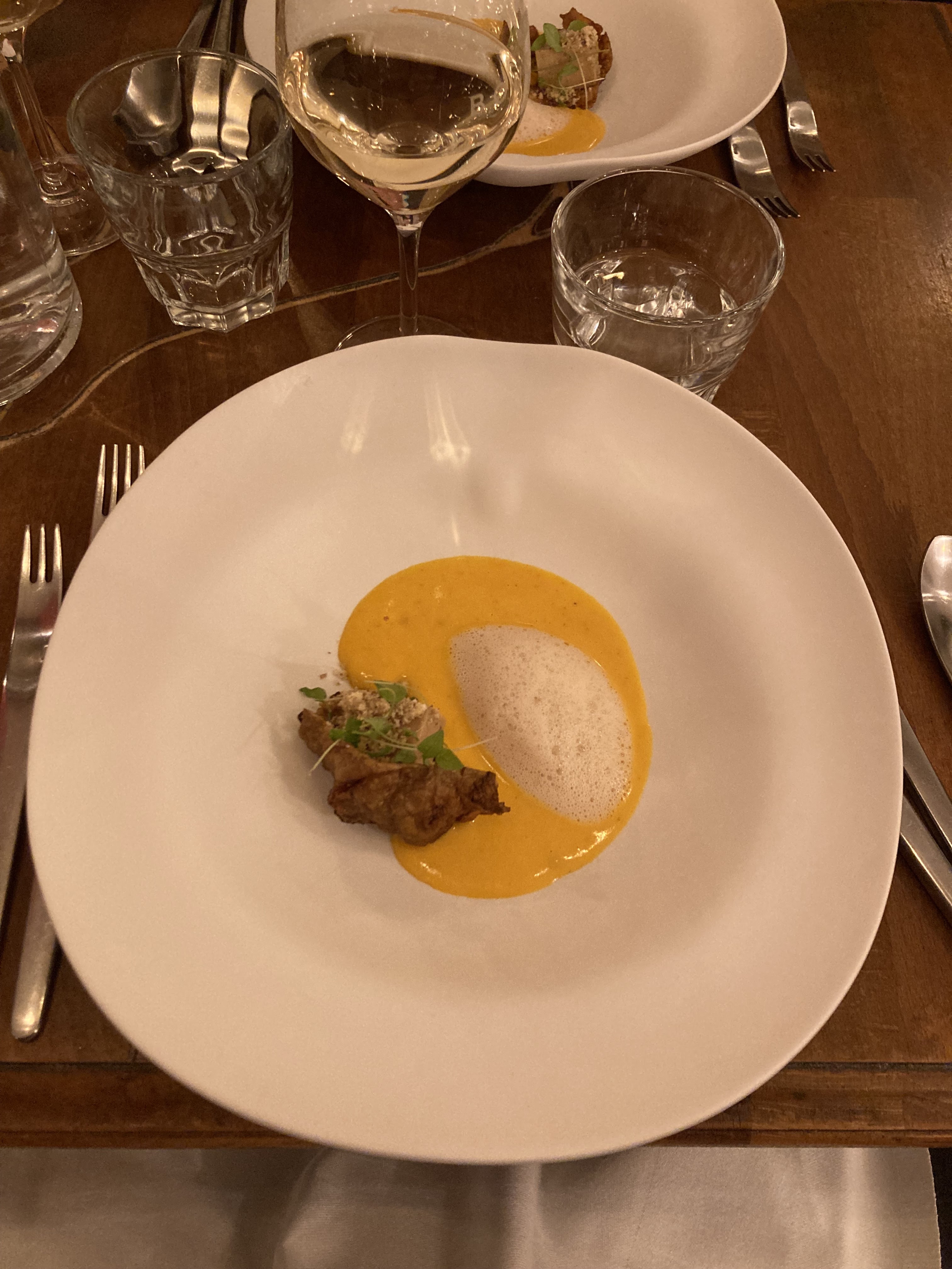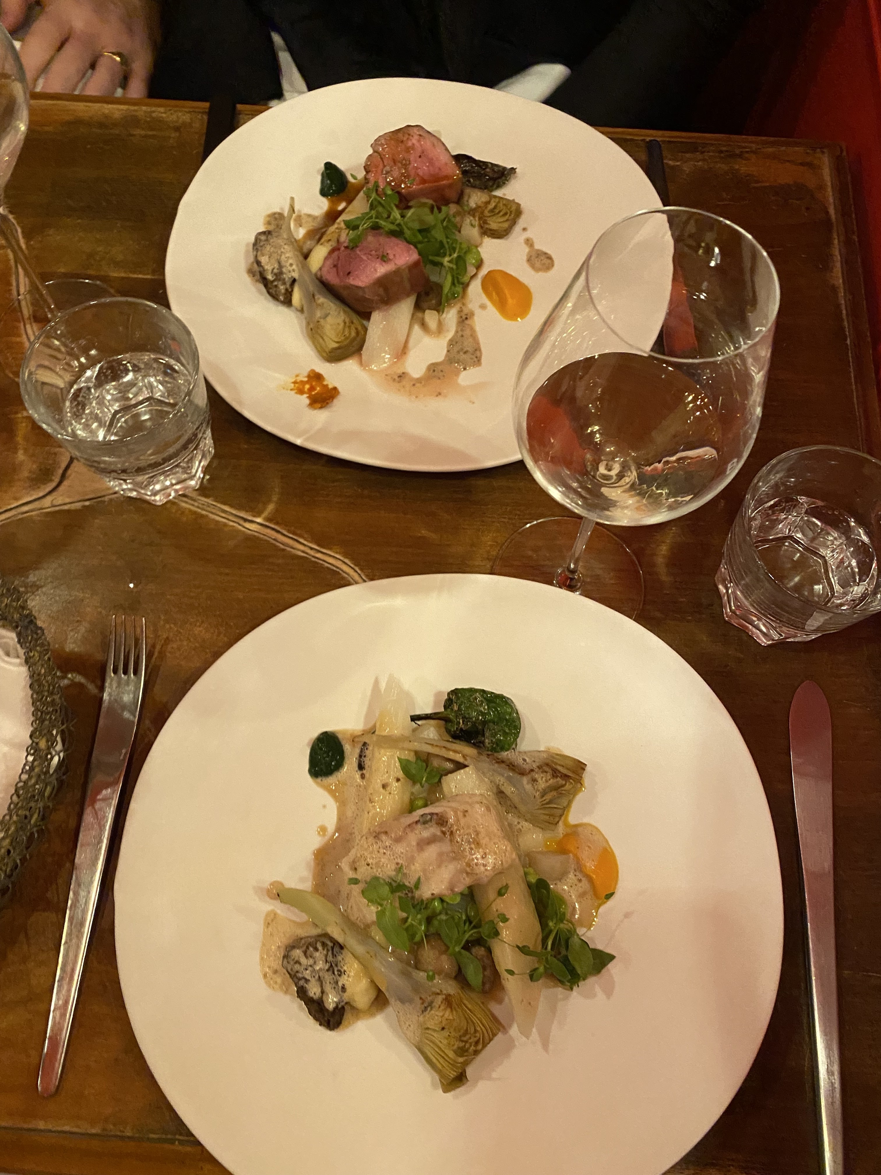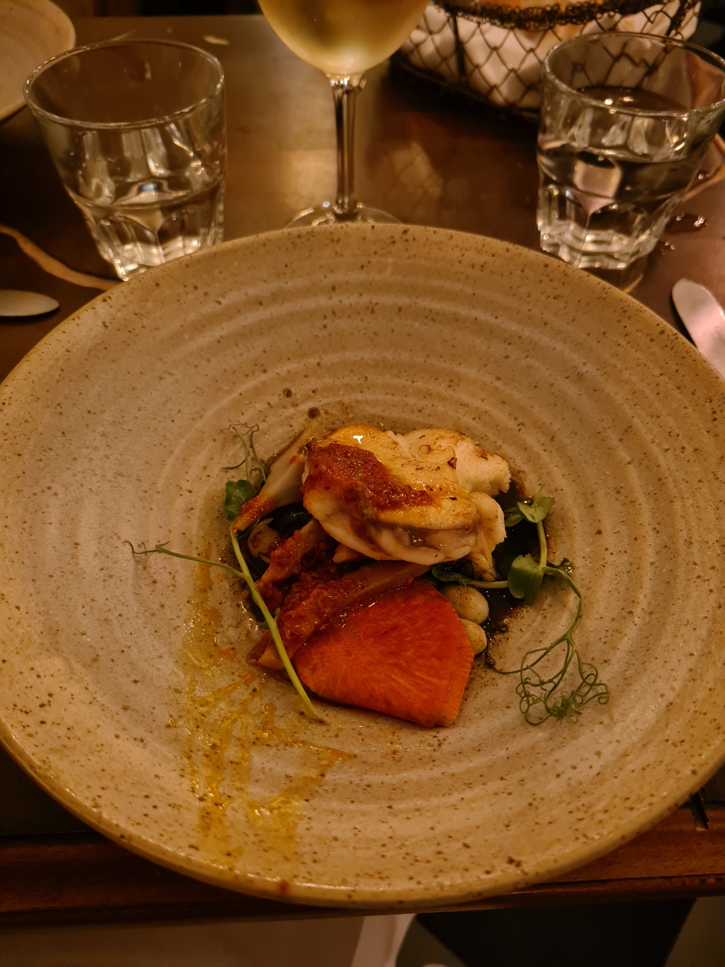 Des plats propres et bien exécuté. Quelques bonne surprises dans le choix des légumes et herbes qui agrément les plats. Parfois les sauces auraient pu être un plus généreuse et les assaisonnements un peu plus horse mais c’est un dîner délicieux et très calme que j’ai beaucoup apprécié