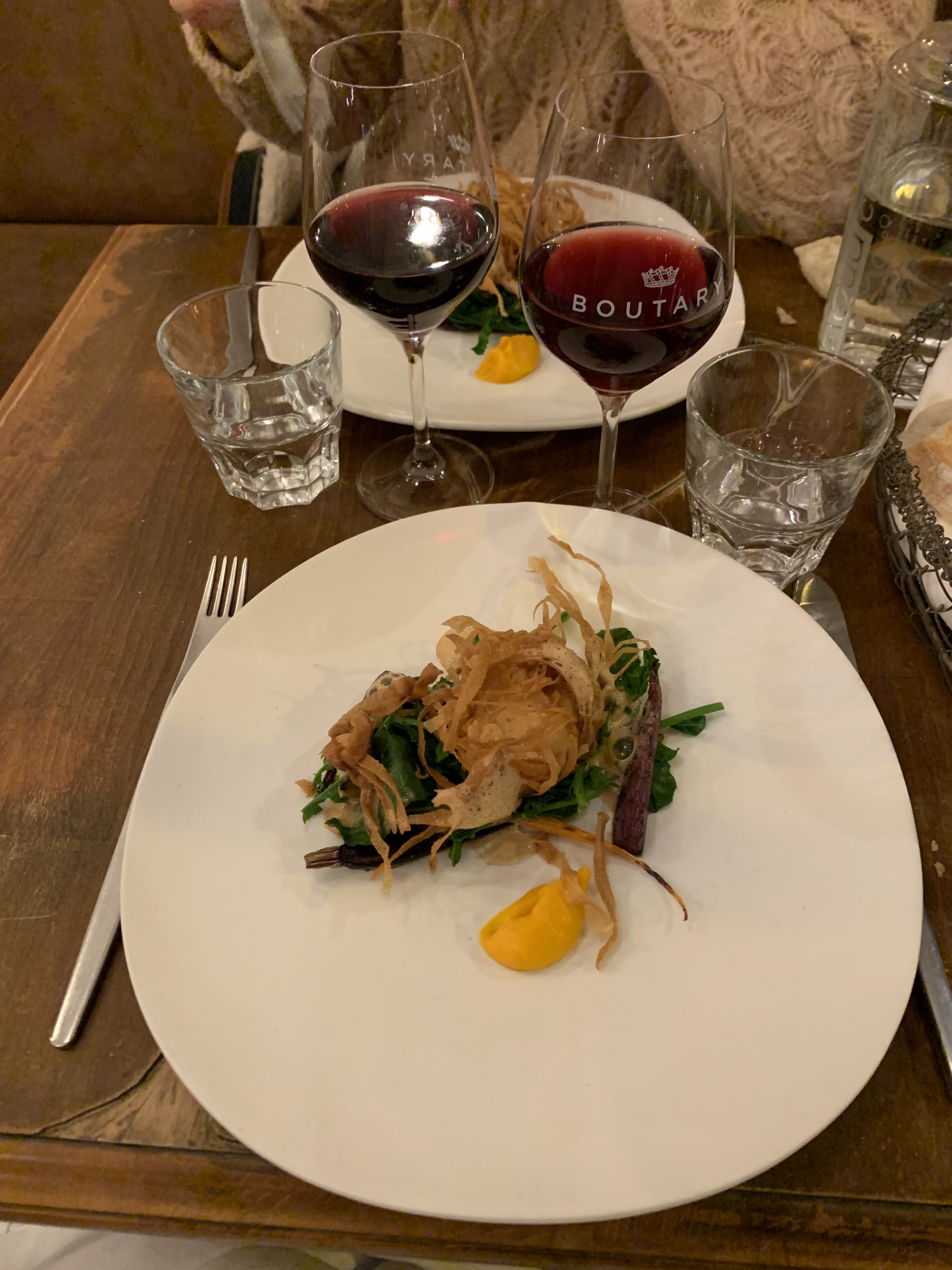 Nous avons passé une très belle soirée au petit boutary. Nous avons été surpris de trouver ce petit bijou. La nourriture était absolument incroyable, la serveuse très compétente et sympathique et les accords mets et vins également bien pensés. Nous avons dit par la suite qu'il ne s'agissait pas seulement d'un dîner mais d'une expérience et nous pouvons certainement le recommander. Également abordable, nous avons eu un repas de 4 plats avec 4 accords de vins et avons payé environ 100 € chacun... et nous étions très rassasiés ! :))