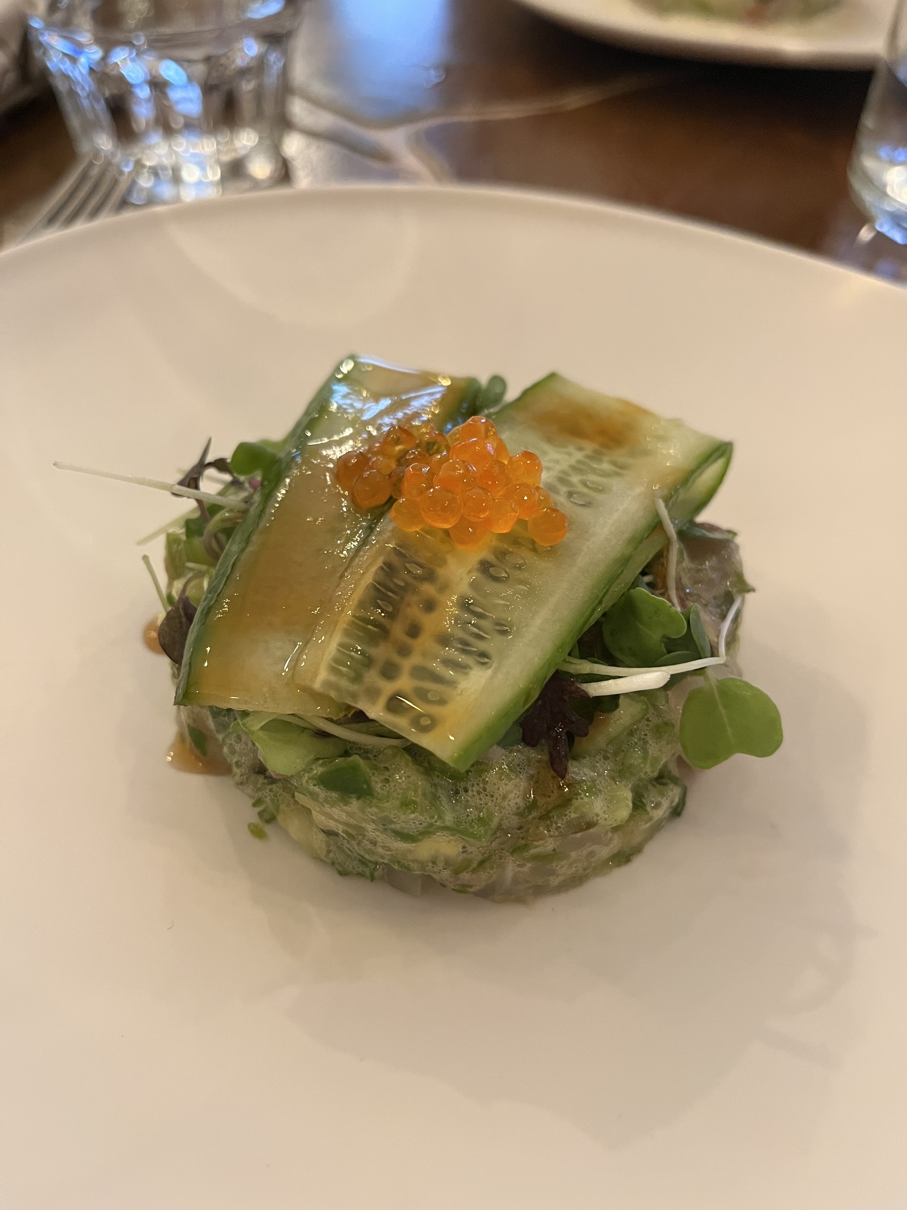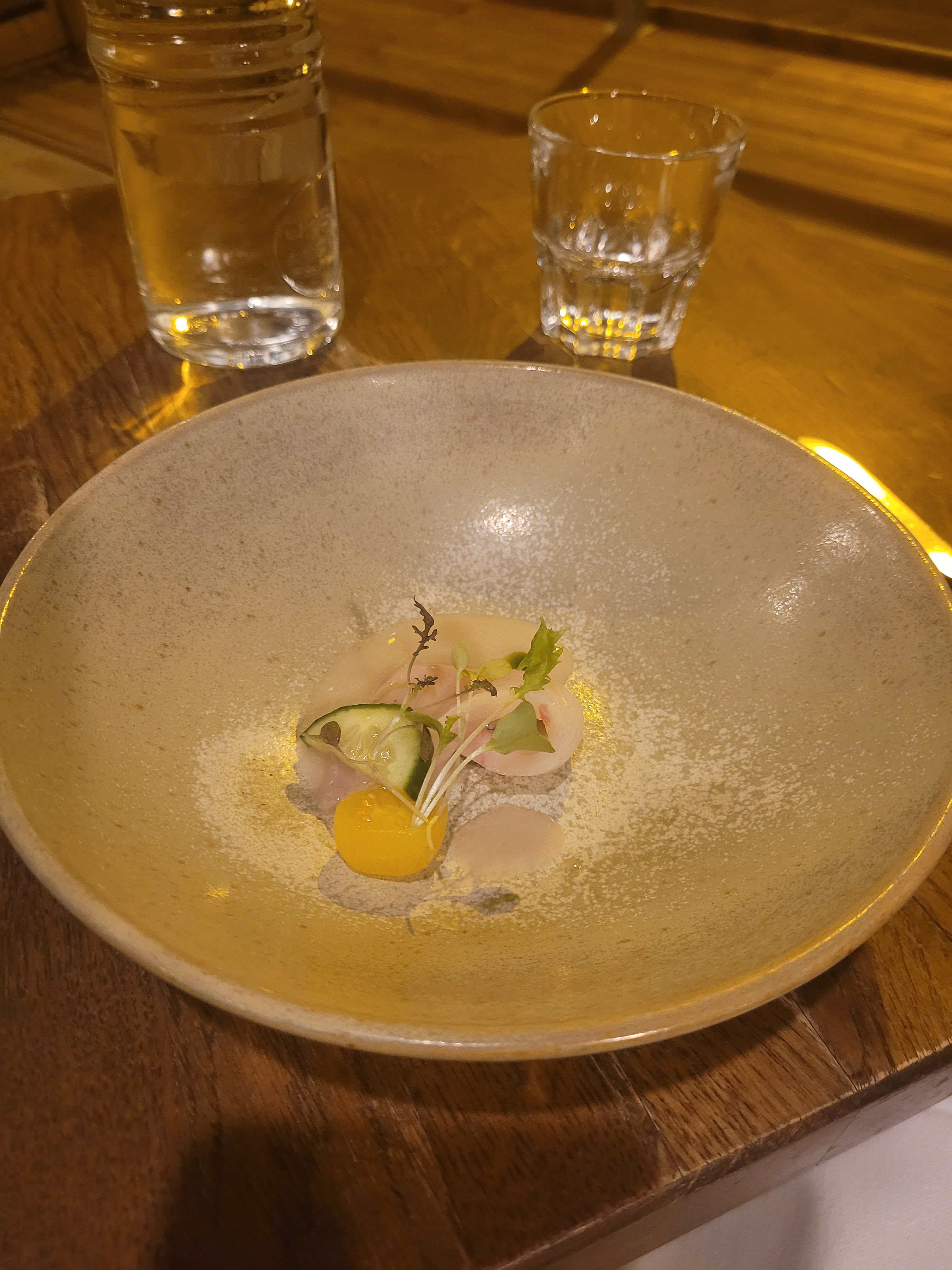 Nous avons passé un merveilleux dîner ici. Vous choisissez 4 ou 5 plats et le chef a carte blanche. Nous sommes allés au dîner de 5 plats. Soit 2 entrées, 2 plats et 1 dessert. Tout était absolument incroyable. Recommandé.