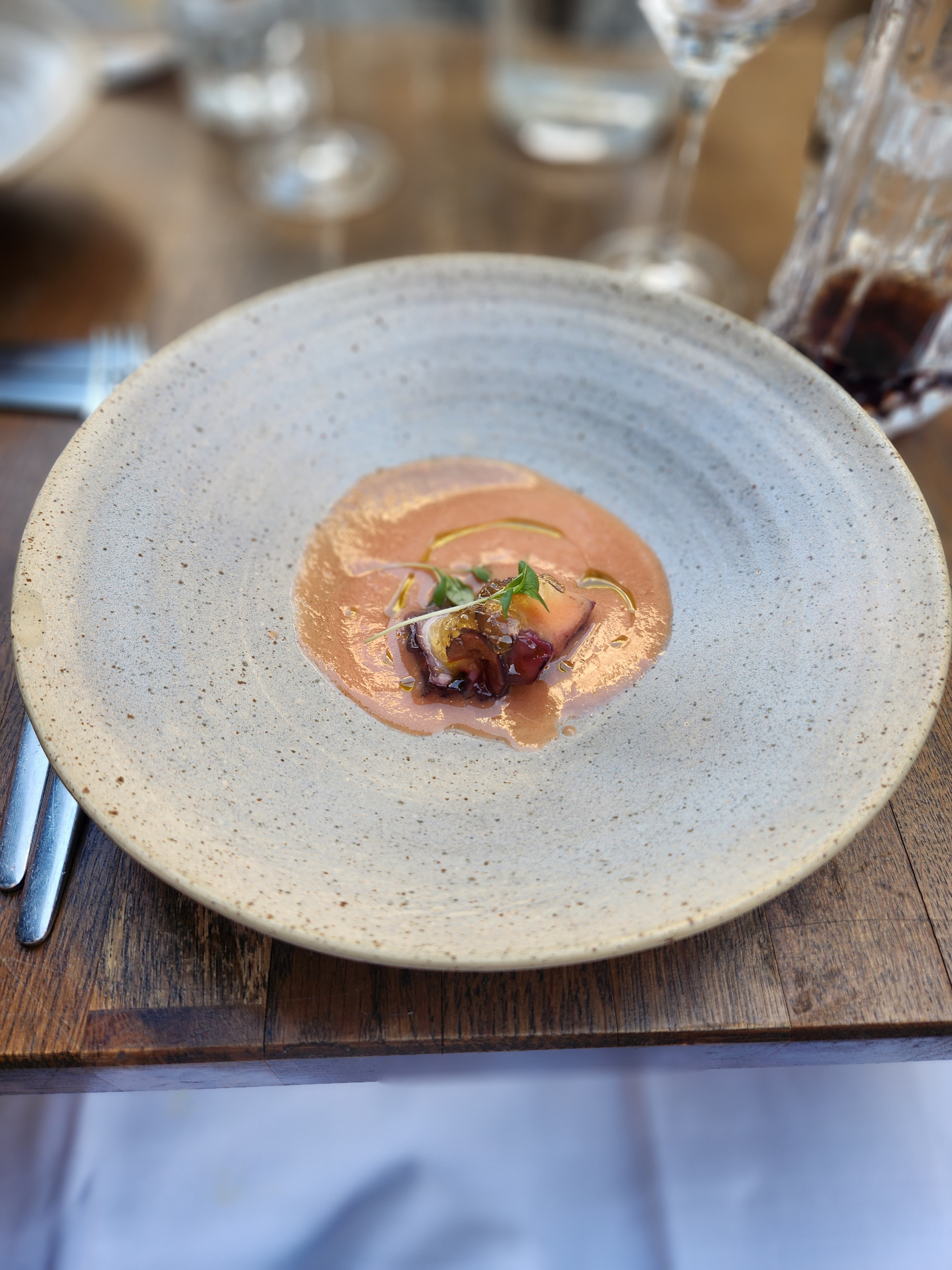 Merveilleuse équipe offrant un service chaleureux dans ce bistro. Nous leur avons choisi un menu de 4 plats et des vins assortis. A part le gaspacho qui manquait d'éclat, la nourriture était délicieuse et les vins étaient excellents.