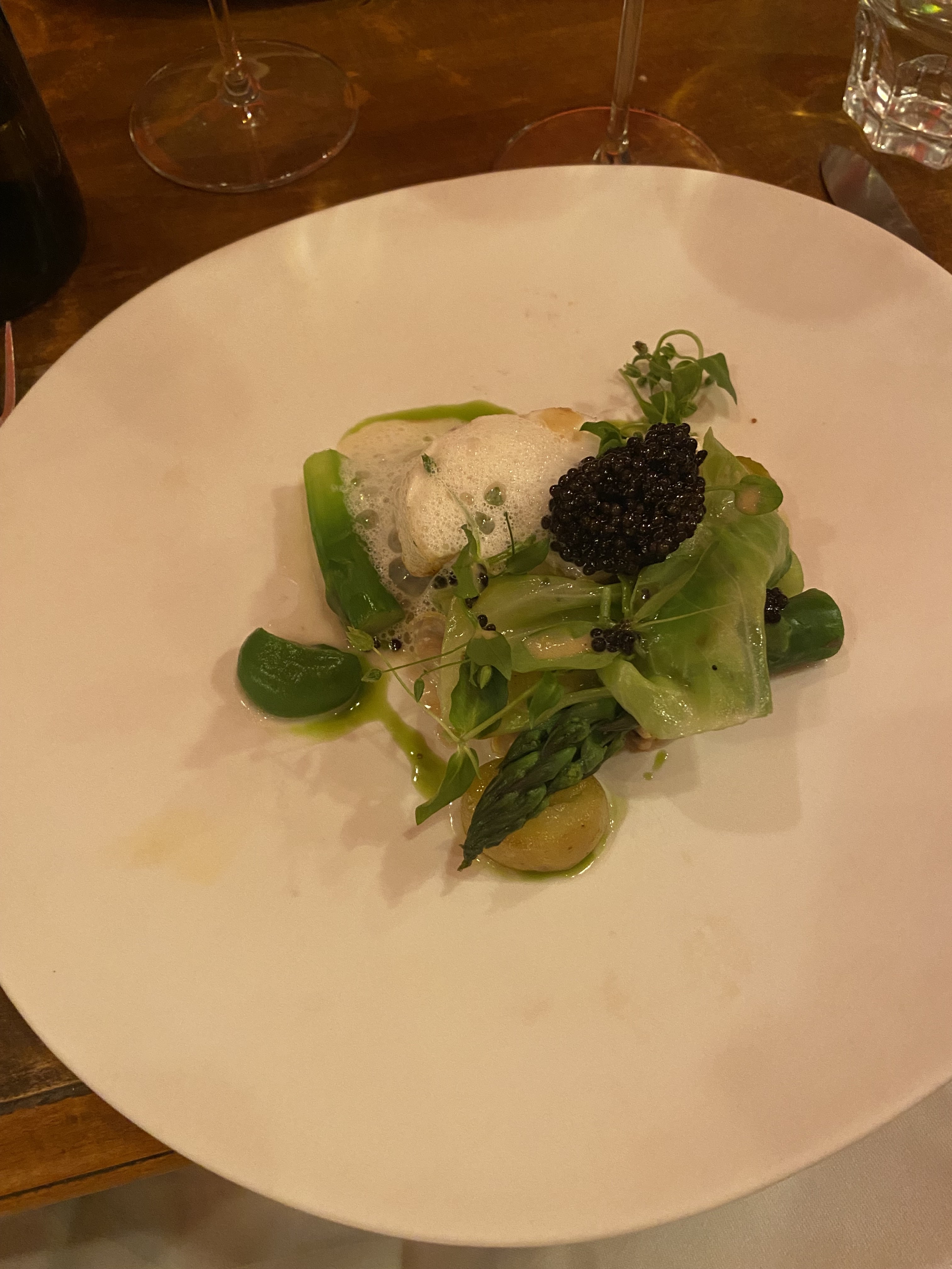 Une très belle surprise. Le chef nous guide au gré de ses envies avec le choix entre un menu 4 ou 5 plats. Le fait de ne pas connaître les plats à l'avance rend l'expérience d'autant plus étonnante. L'accord met vin est très bien, bien que des informations supplémentaires sur les vins seraient appréciables. Mention spéciale au caviar maison que vous pouvez déguster à la royale. A tester