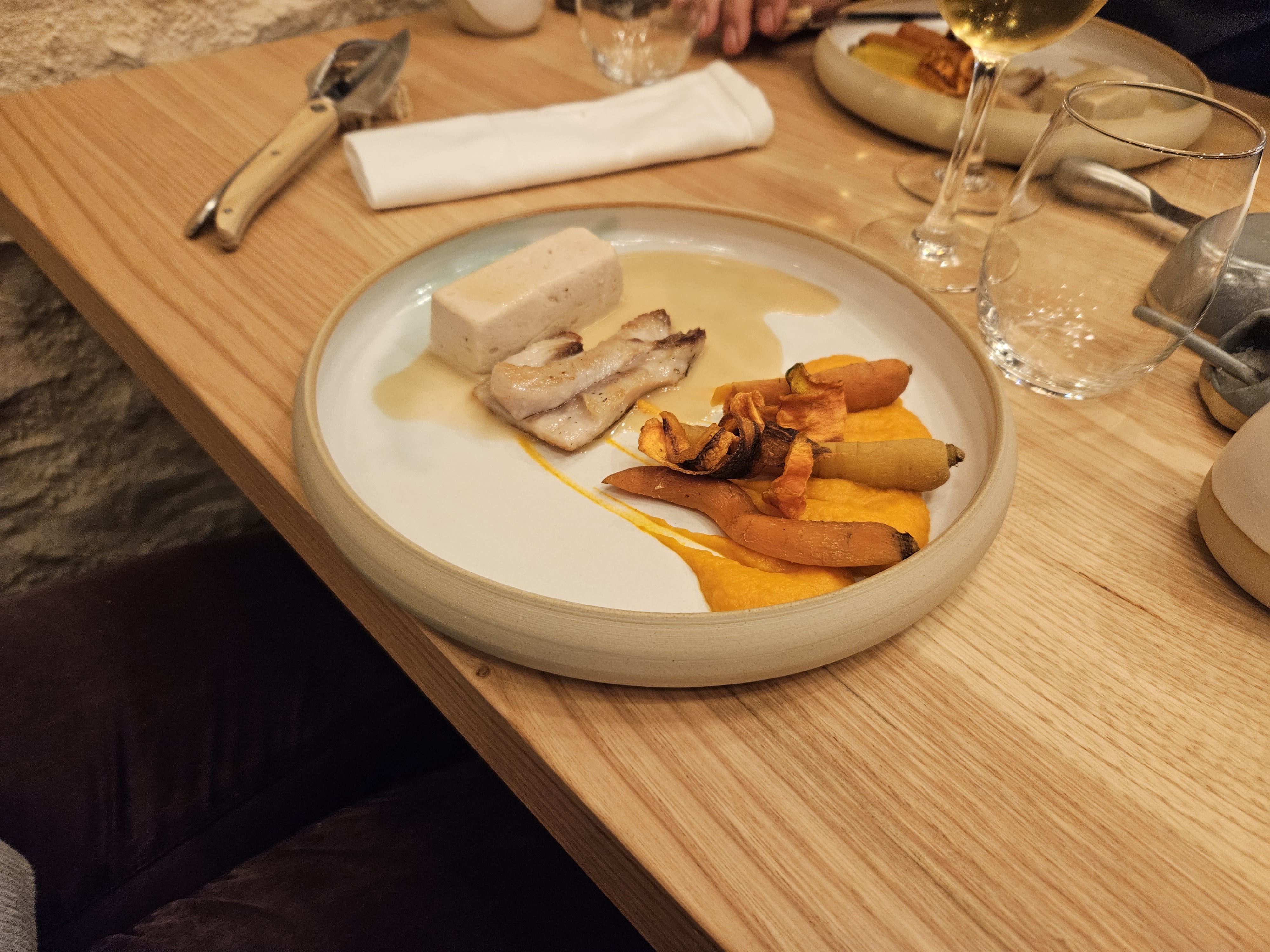 Une ambiance chaleureuse, un cadre magnifique et reposant même si nous n’avons pas dîné en extérieur ( mois de décembre oblige ) Un accueil juste parfait : une cheffe passionnée qui régale les papilles avec des produits locaux , frais , provenant du jardin , et des mélanges de saveurs inventives et délicieuses, des serveurs qui nous accueillent et nous conseillent avec un savoir faire et une gentillesse exceptionnelle aussi bien sur les mets que sur les vins et les cocktails. Et résumé : merci pour ce moment dépaysant et hors du temps . Ne changez rien !