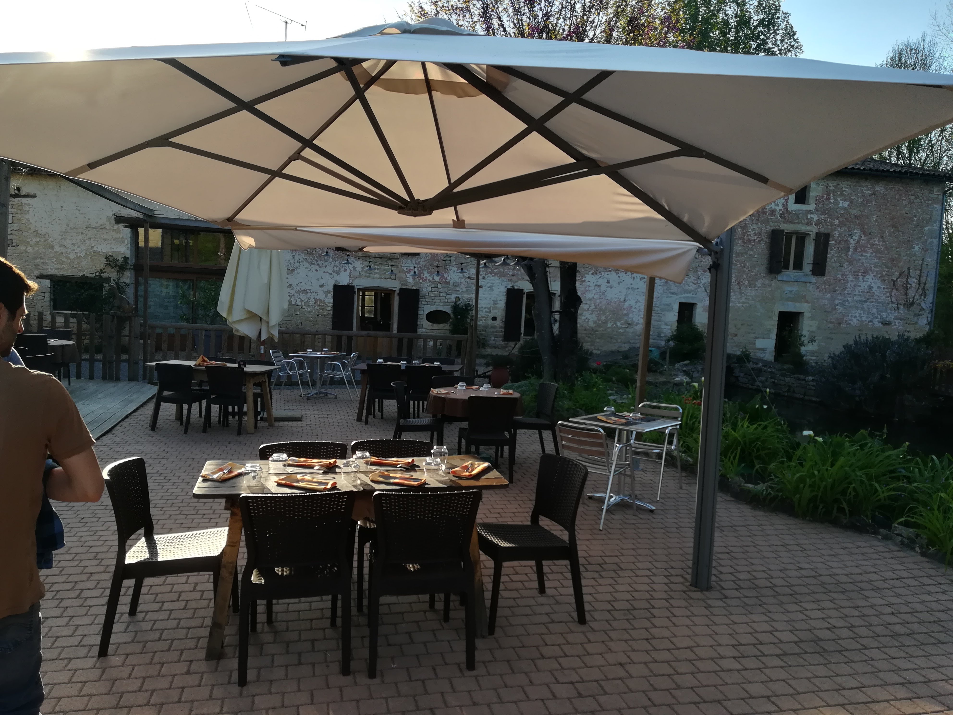 Endroit bucolique, calme et reposant proche d'une rivière. Les produits sont issus du potager cultivé sur place ou de producteurs locaux, ce qui rend les plats savoureux. Le service est détendu et avenant. C'est une très bonne adresse.