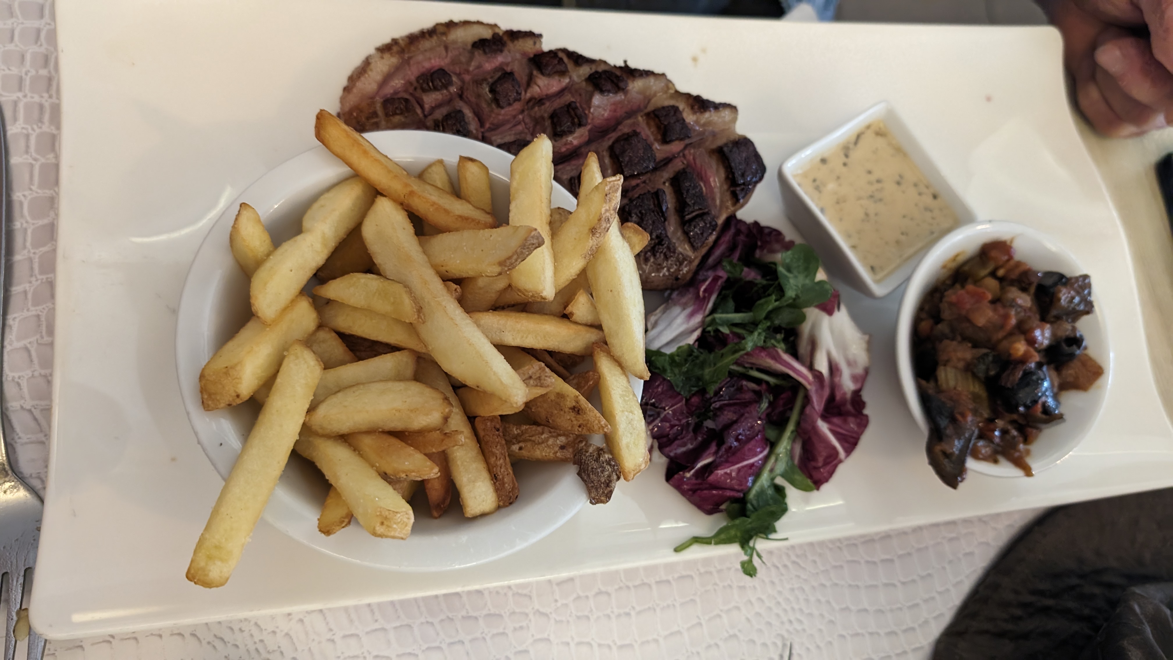 Nous avons mangé en 20 minutes top chrono, pas de climatisation dans tout le restaurant, nous sommes dans le sud, c'est une honte, nous avons eu très chaud une horreur... L'accueil est sympa mais manque de sourire peut être dû à la chaleur, je plains les employés ! Quand au repas, j'ai mangé un tartare correct, mais les frites ne sont pas maison c'est dommage ! A fuir si pas de clim