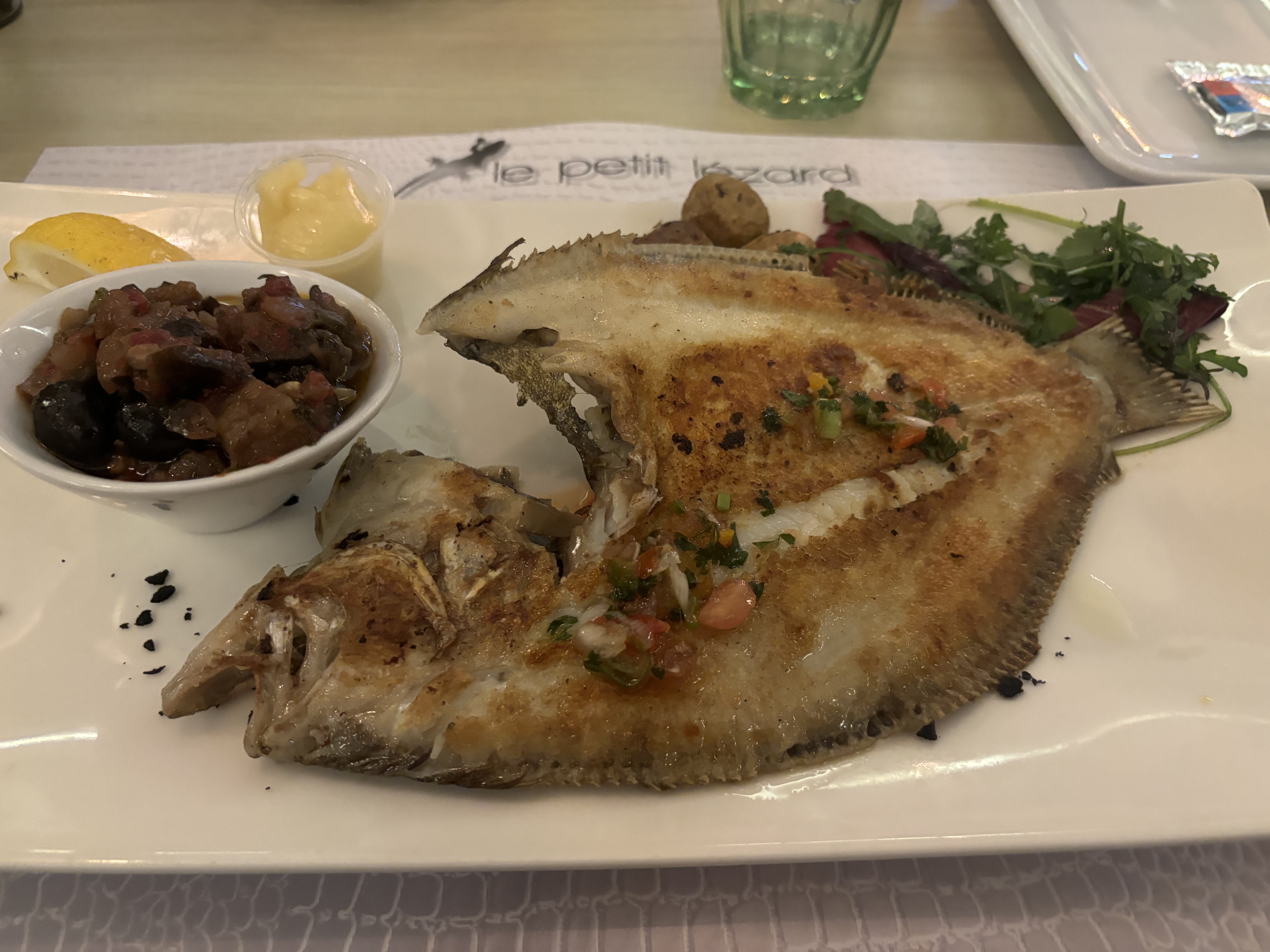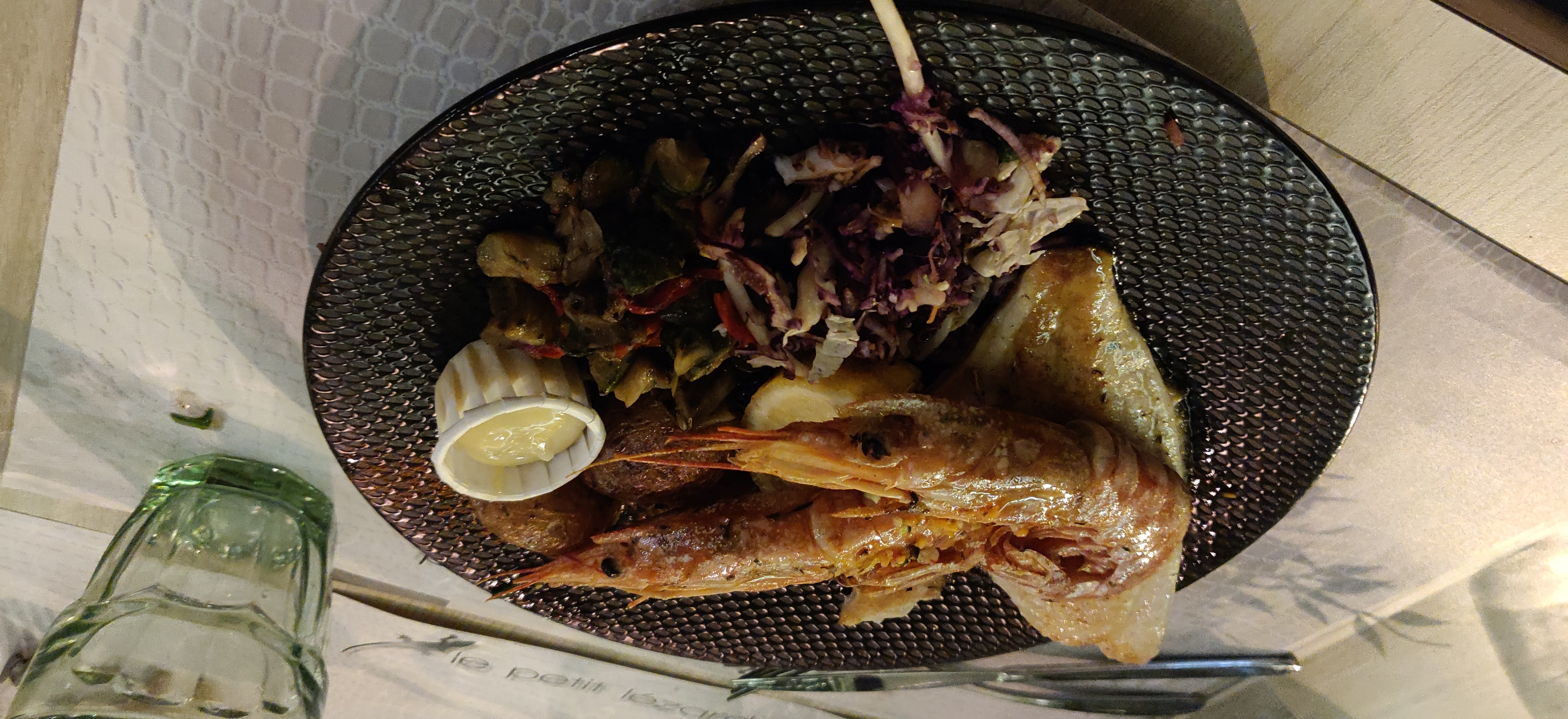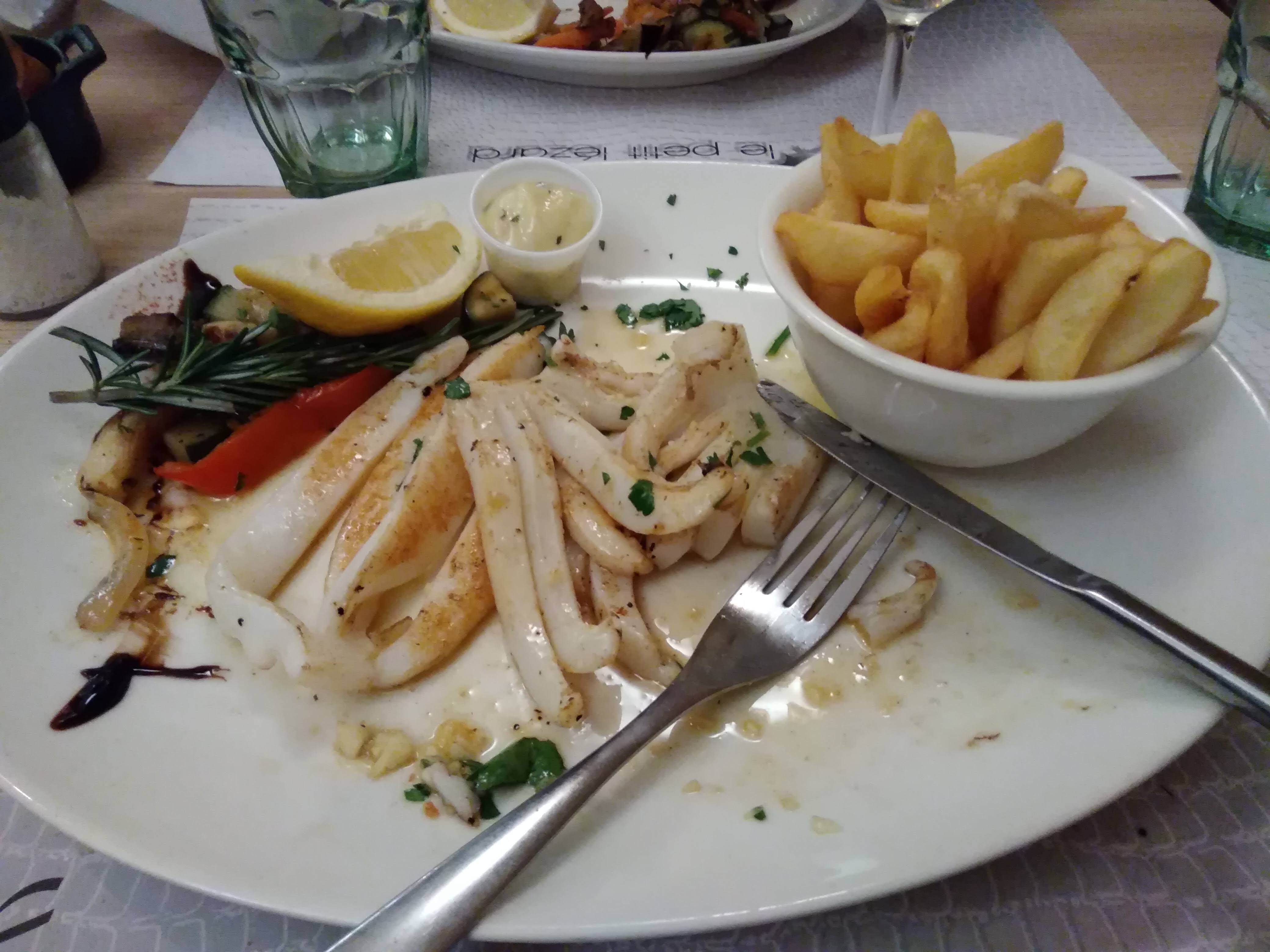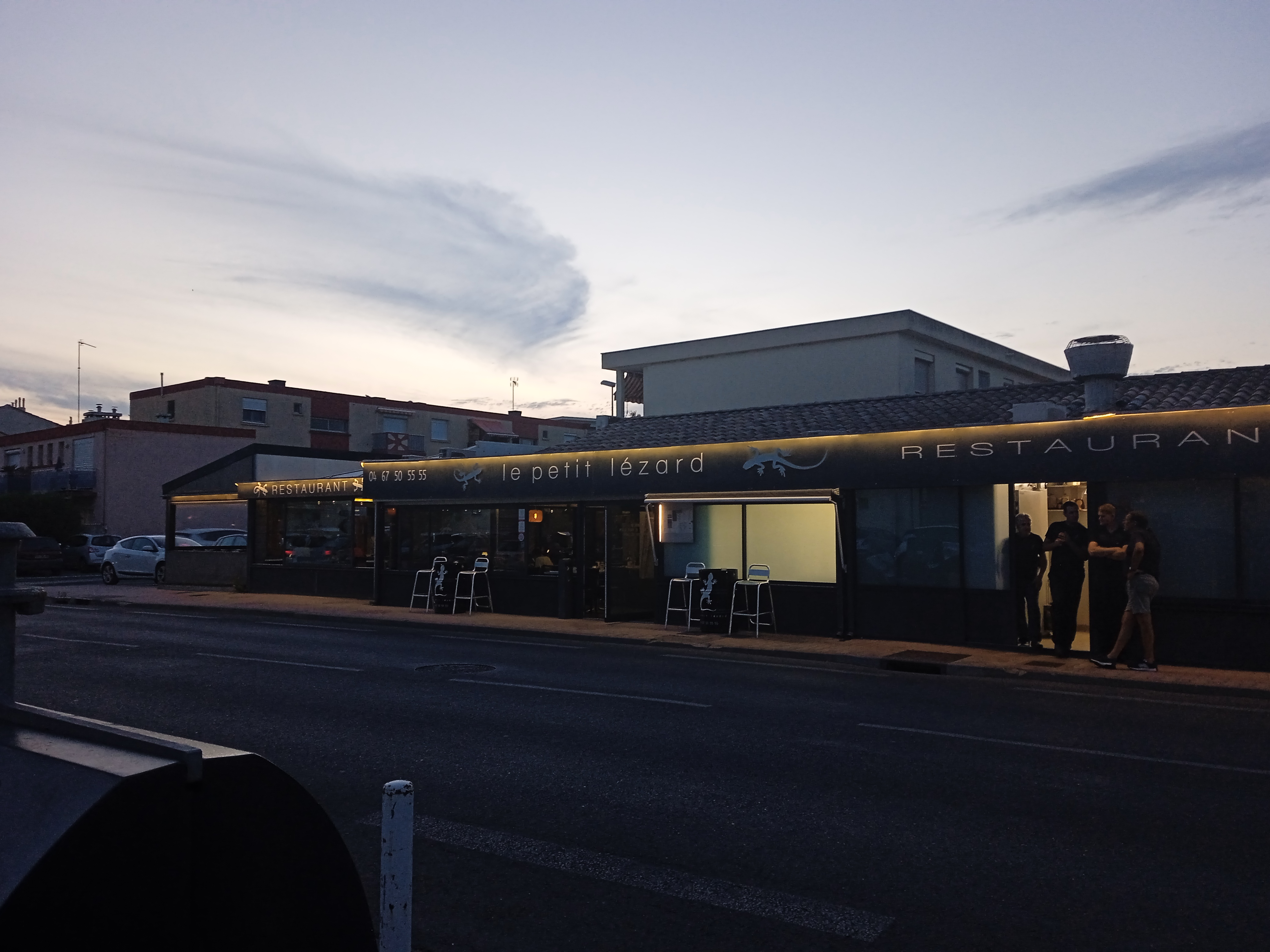 Nous avons dîné au Petit Lézard lors de notre première nuit sur Palavas les Flots dans le cadre d'un week-end. Concernant la nourriture, : les gambas, le poulpe & l'aubergine grillée étaient excellents ! Les frites cependant étaient très grasses à tel point que lorsqu'on les croquait, de l'huile coulait dans la bouche. C'est aussi dommage pour le petit pot de Mayo en plastique. Concernant les points négatifs, je dirais tout d'abord que bien que le personnel soit souriant, on a cette impression d'être pris de haut et presque de déranger.. J'ai aussi commandé un dessert, le mendiant aux pommes, mais celui ci était revisité. Malheureusement ce n'était pas précisé sur la carte ni lors du passage de la commande.. je n'ai donc pas pu manger ce dessert qui n'était pas un gâteau comme on le connaît tous, mais une verrine de crème avec de la pomme. Étant intolérante au lactose je ne pouvais pas le consommer. La serveuse m'a proposé de changer de dessert, j'ai donc pris une tarte tatin, mais la pâte de celle-ci ne me semblait vraiment pas cuite.. Nous avons donc eu un débat à ce sujet lorsque j'ai préféré ne pas la manger non plus.. On m'a assuré qu'elle était cuite mais que les pommes rendaient de l'eau.. Je sais comment est faite une tarte tatin étant moi-même pâtissière. Pour le coup la pâte n'était vraiment pas cuite et à mon sens ils ne sont pas censé être insistants et prendre cet air si agacé lorsqu'on ne souhaite pas consommer un plat en lequel on a pas confiance.. Le paiement à la fin à été expéditif et sans aucun sourire, et ils n'avaient qu'une envie : qu'on s'en aille vite. En tout cas c'est le ressenti que nous avons eu. C'est dommage parce que les plats principaux étaient vraiment délicieux.