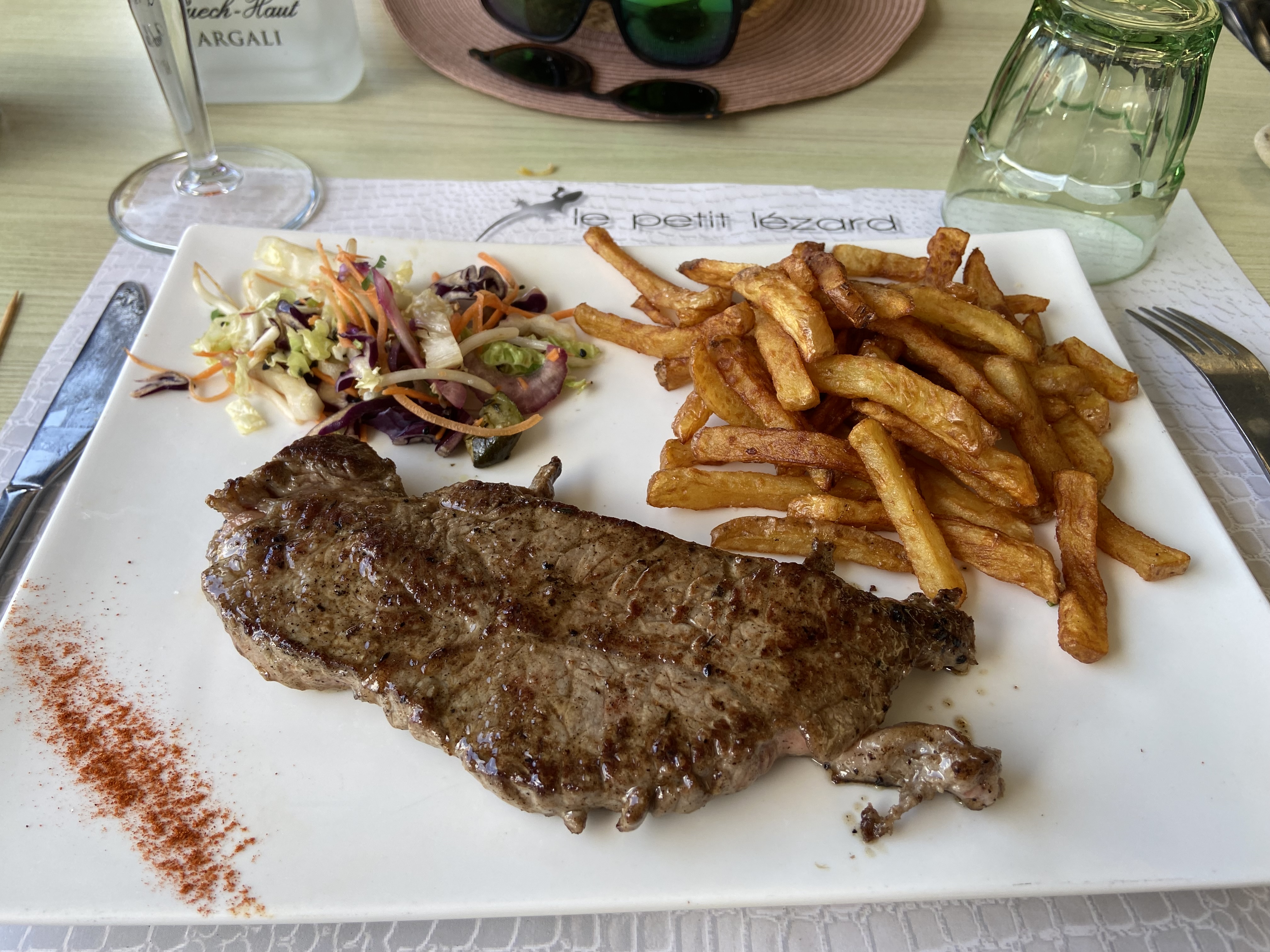Nous avons été surpris dans un premier temps par l'accueil simple et chaleureux. Puis nous avons choisi nos plats qui sont arrivés rapidement, chauds et délicieux. Thon pour moi et pièce de bœuf bleu et chaud pour M. Nous avons conseillé cet établissement à nos enfants qui résident à Montpellier.
