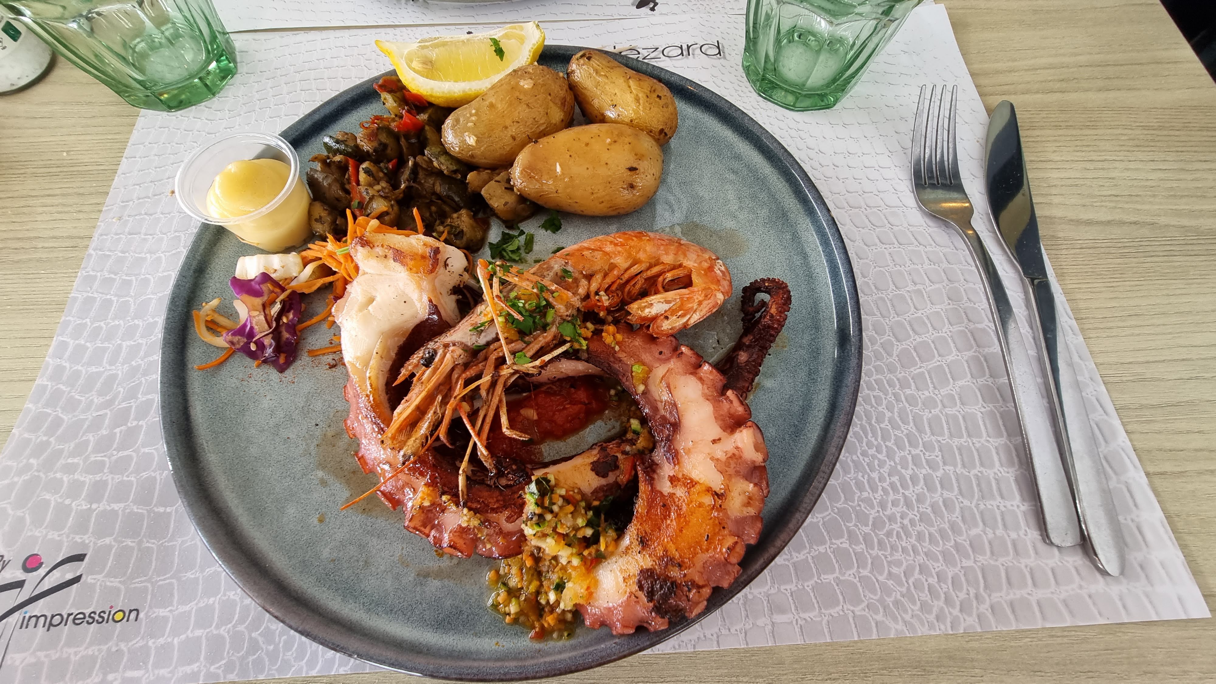 Excellent déjeuner de poissons frais cuisinés à la plancha même si nous sommes arrivés à 13h30!