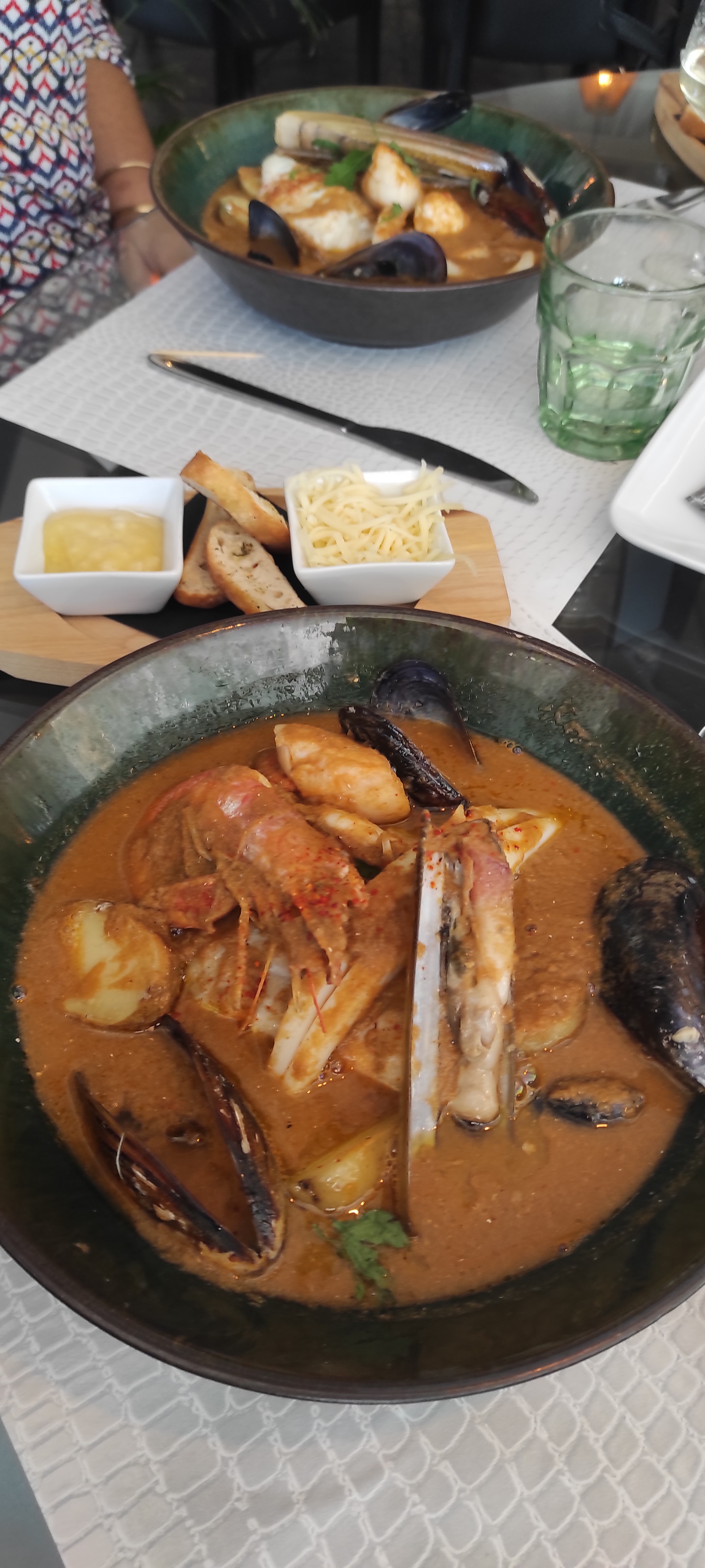 Délicieuse bouillabaisse pour l'anniversaire d'une amie. Service au TOP avec vodka-Tagada 🍓 pour accompagner le dessert 🥂✨ Merveilleux moment !!!