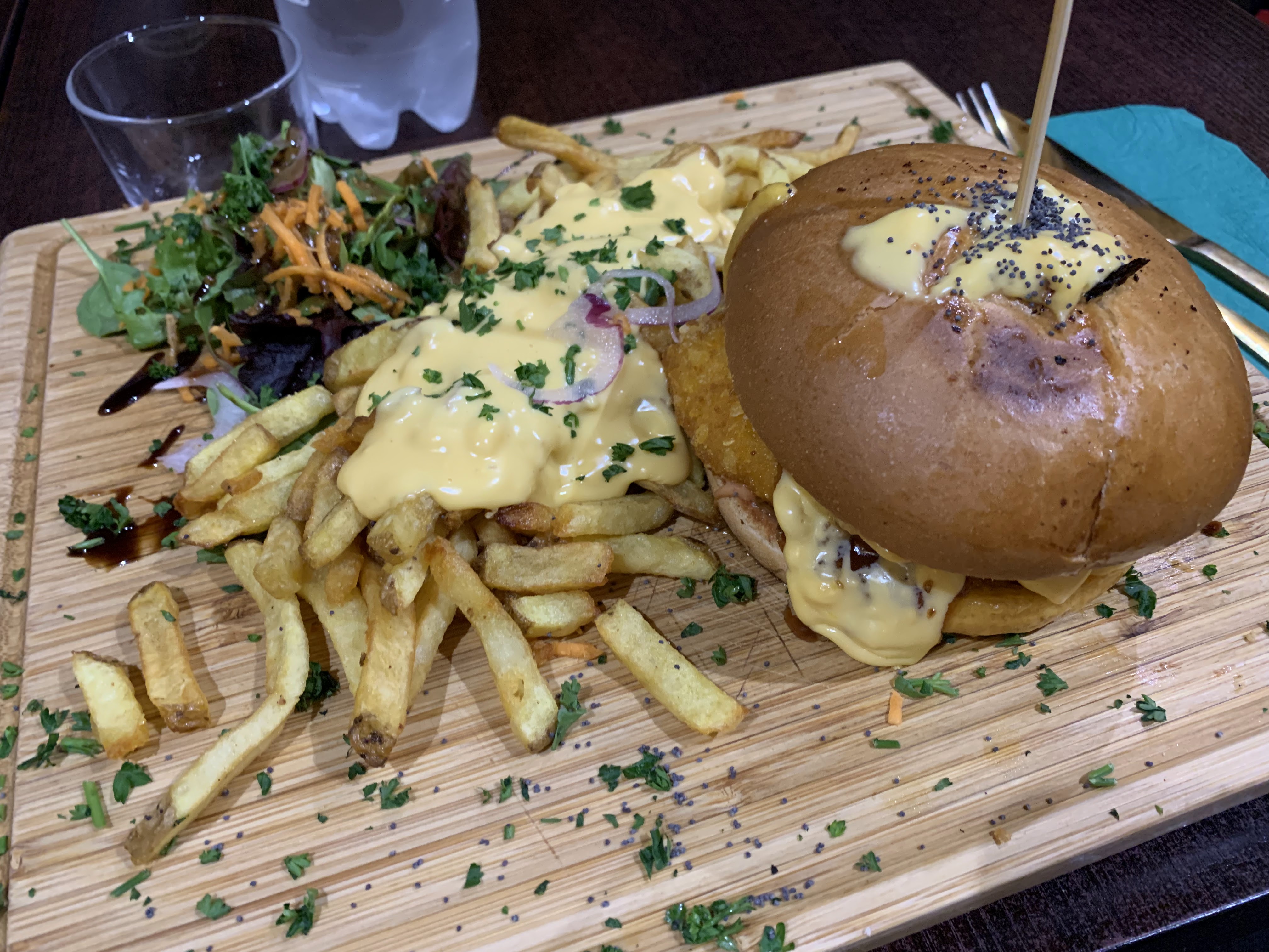 N'étant pas végétarienne j'ai quand même tenté le burger végé avec le chèvre pané et sa sauce secrète, c'était à tomber ! J'ose dire qu'il s'agit du meilleur burger que j'ai pu manger ! Les frites sont faites maison, les produits frais, les quantités très bonnes, personnel super sympathique et resto très convivial ! À recommander 👍🏻