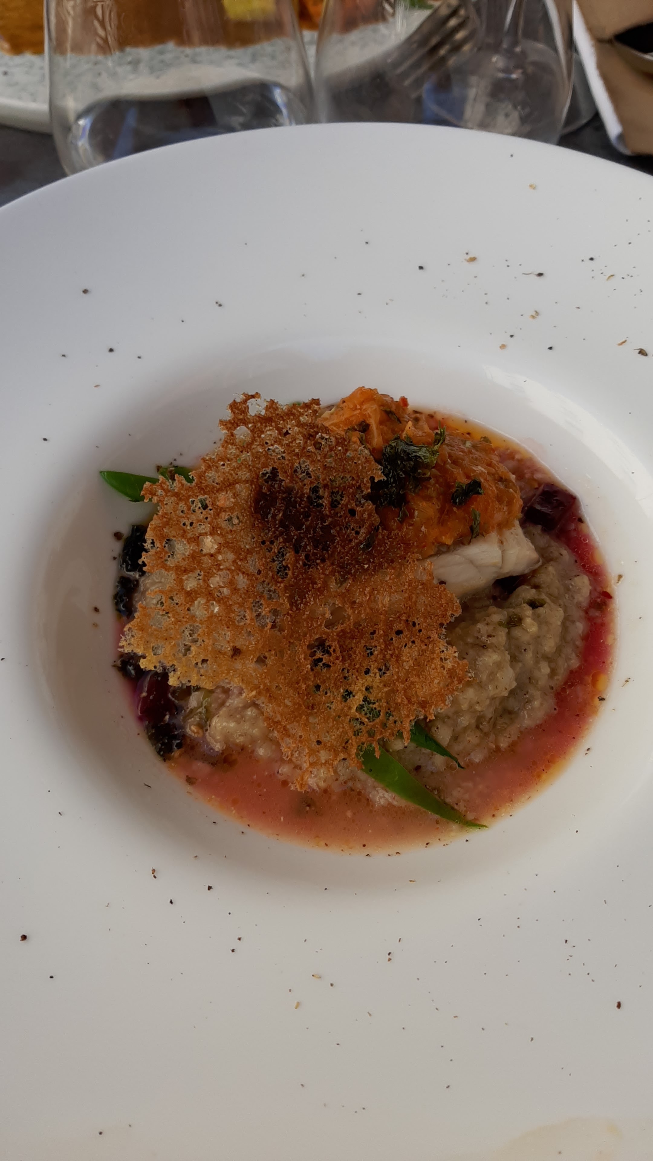 restaurant découvert au hasard cet été il me semble?, bistronomique aux saveurs subtiles, équilibrées et originales, bon accueil général & bon rapport qualité prix pour un menu du soir pour un bistronomique. Nous étions dehors , un peu plus de lumière aurait été parfait pour avoir encore une meilleure expérience et mieux voir les plats à la nuit tombée. Le chef est venu échanger avec nous : très disponible & sympathique.