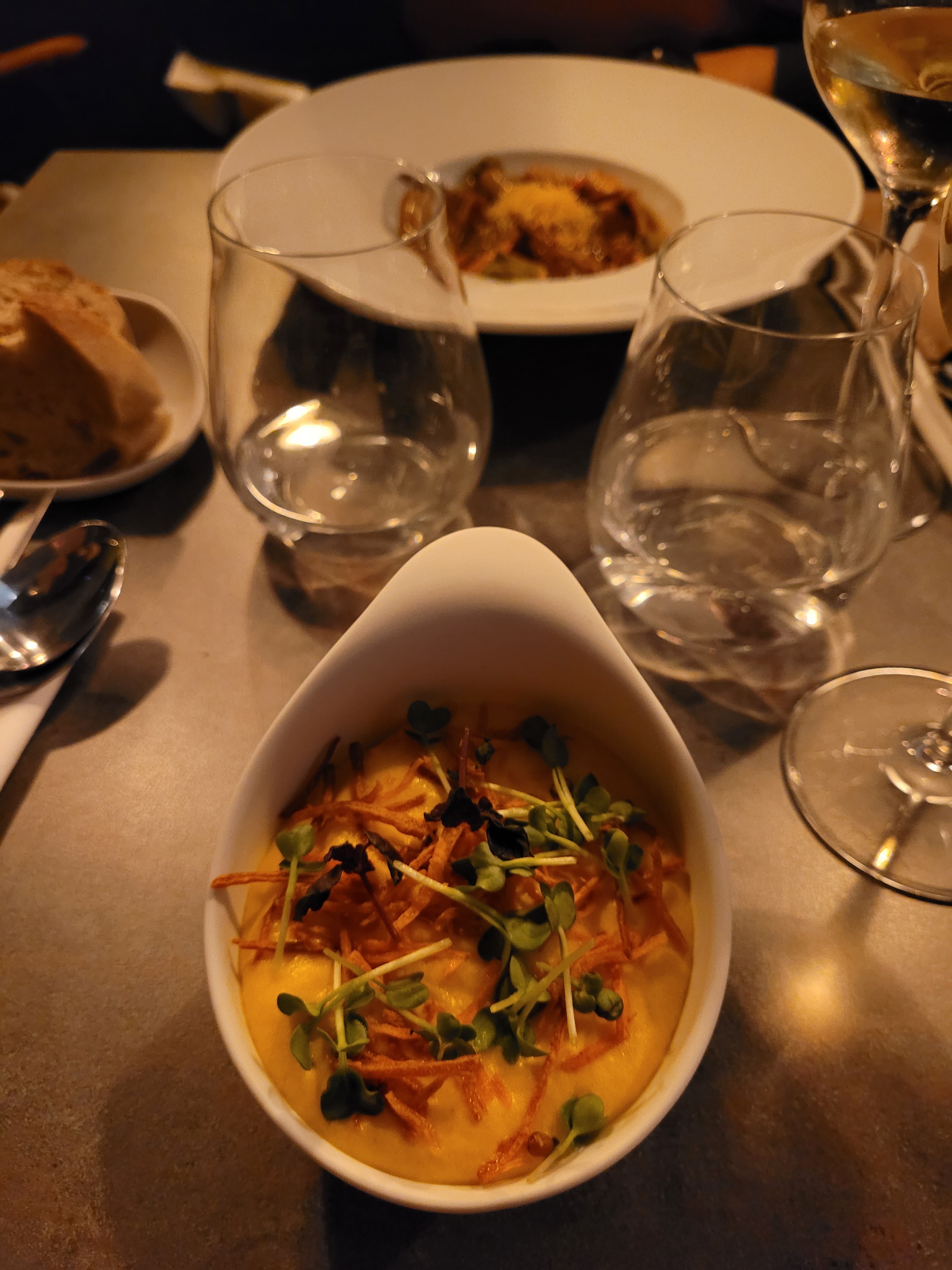 Excellent restaurant. Le personnel était très accueillant (ne changez pas). Les plats étaient excellents avec des combinaisons de saveurs intéressantes. Petit plus pour avoir vu le chef sortir. C'est toujours agréable de voir qui se cache derrière les créations.