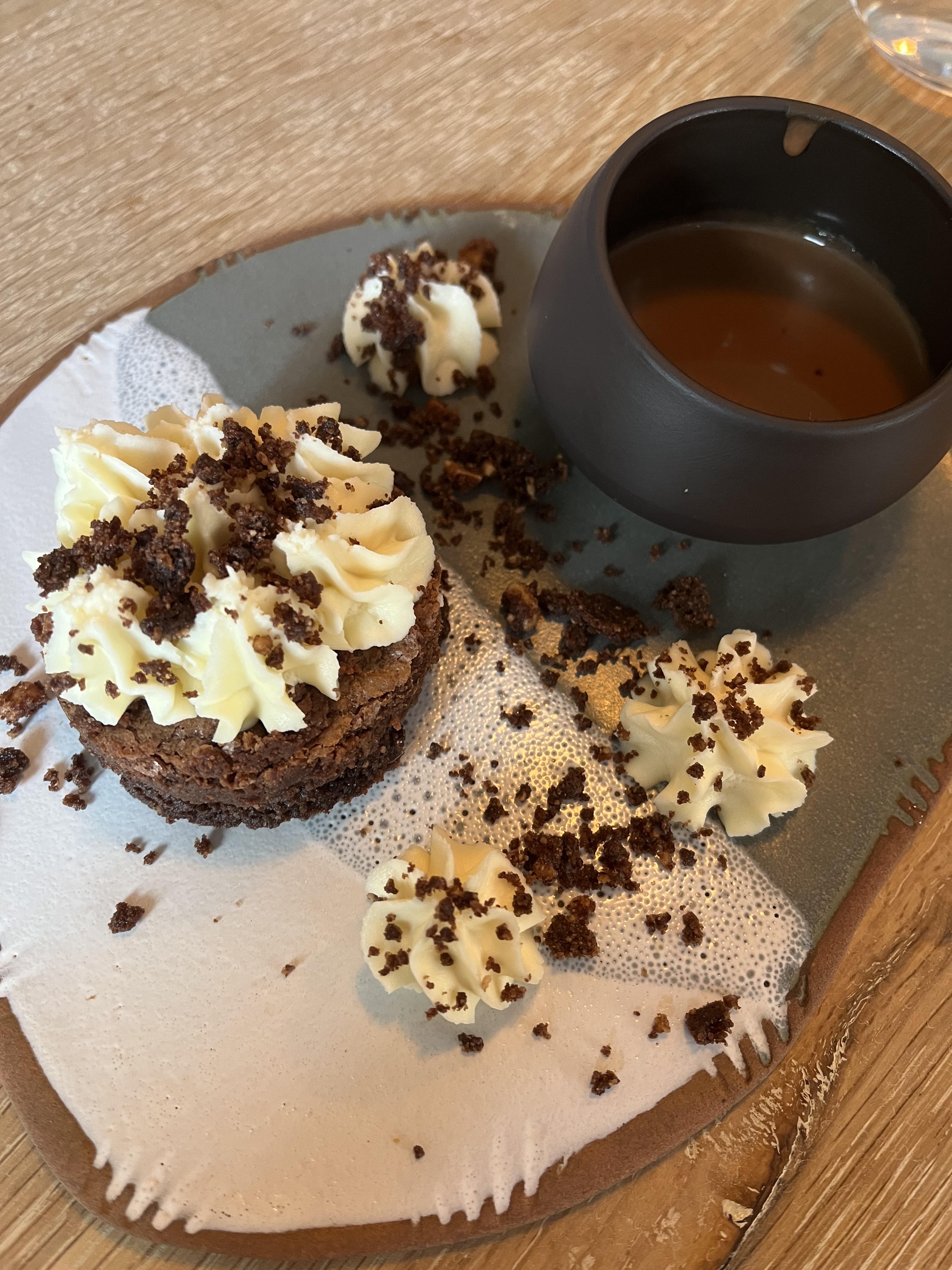 Super restau... Bien relevé avec des goûts très prononcés. Je conseille le tryptique dans les desserts... Juste incroyable...