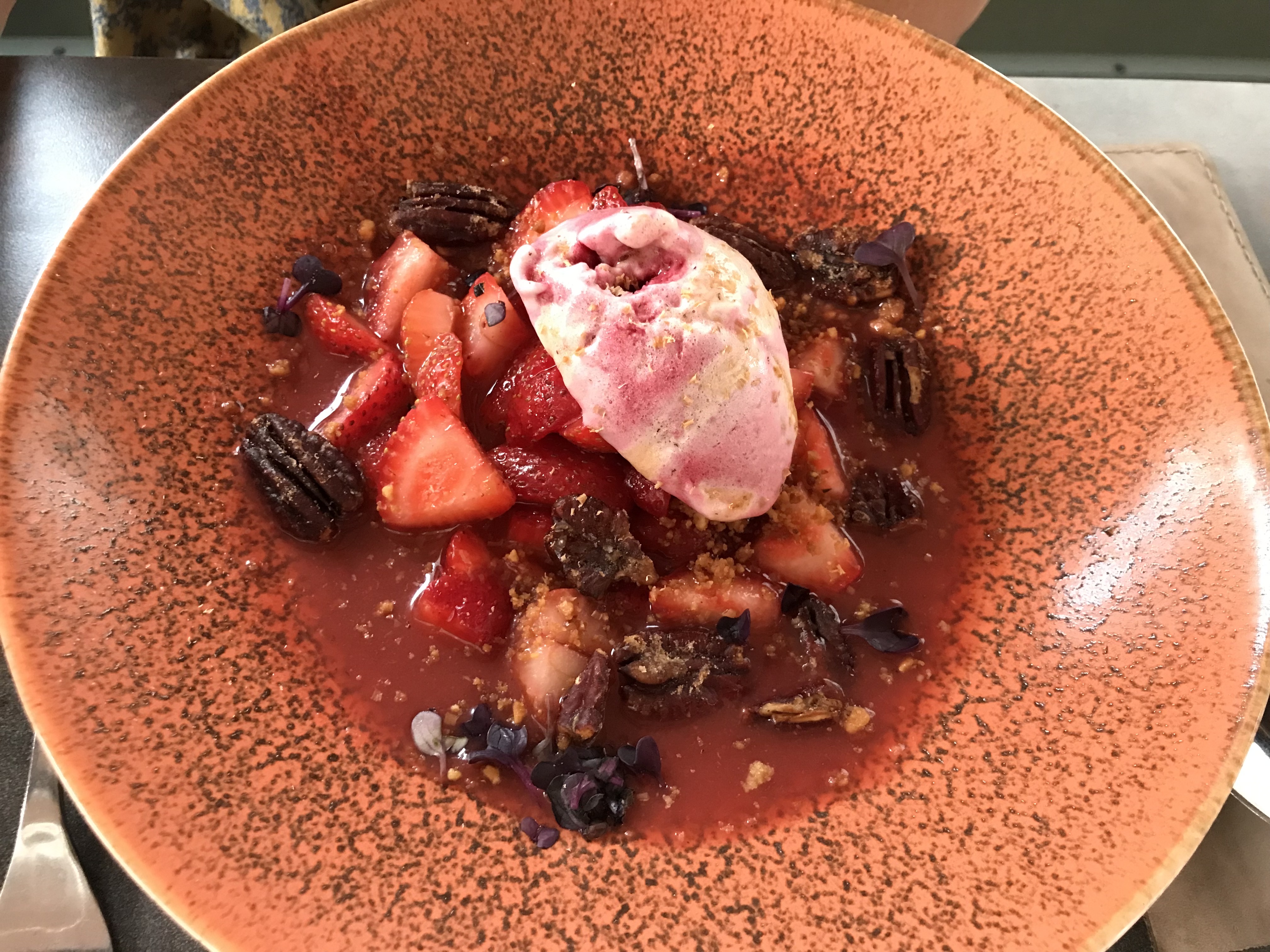 Venue pour un déjeuner clients nous avons été très bien accueillis. Le menu à moins de 30 euros avec entrée plat dessert est qualitatif et travaillé, nous avons très bien mangé. Merci pour les belles alternatives végétariennes. Terrasse ombragée le midi. Je recommande.