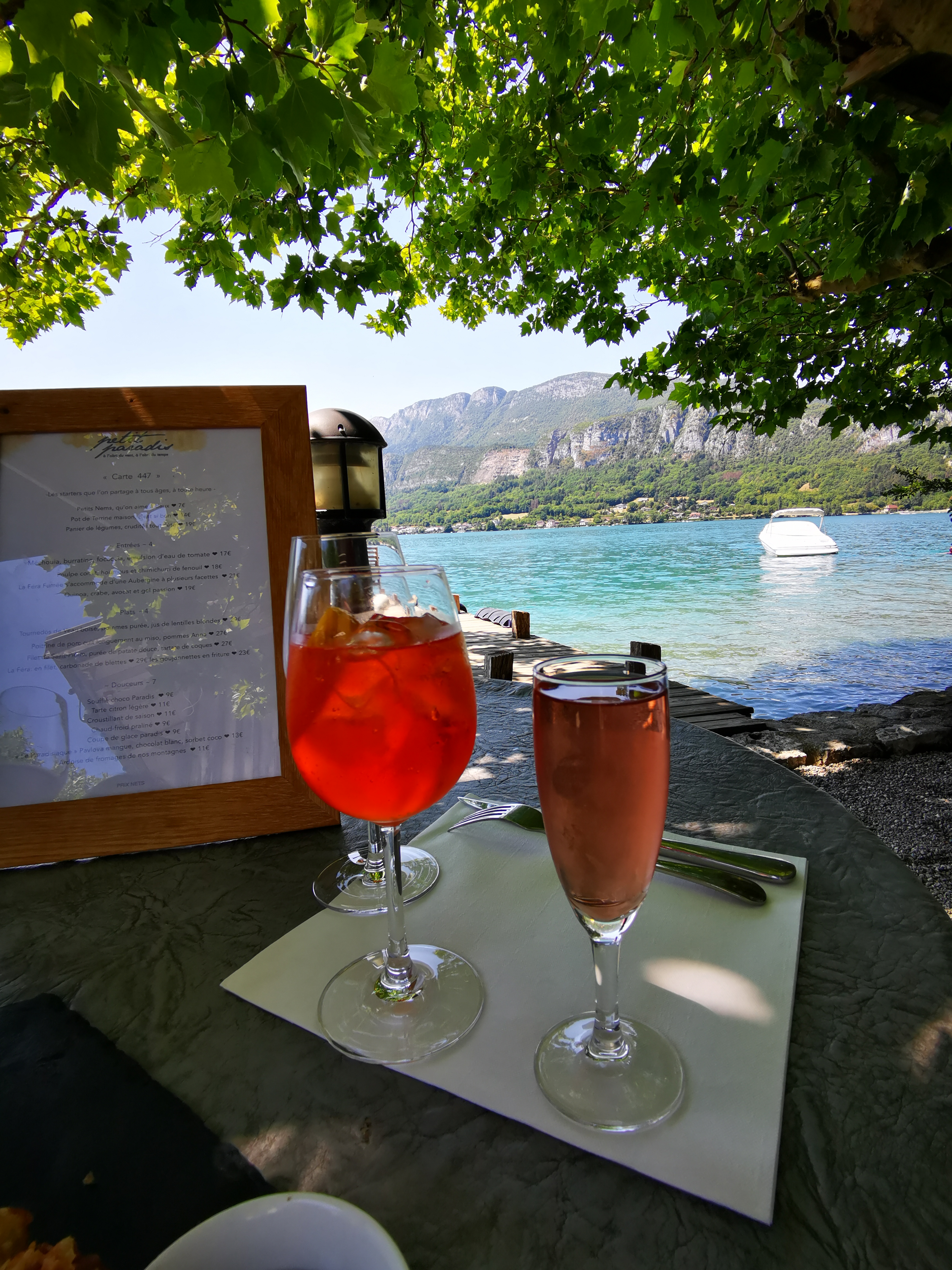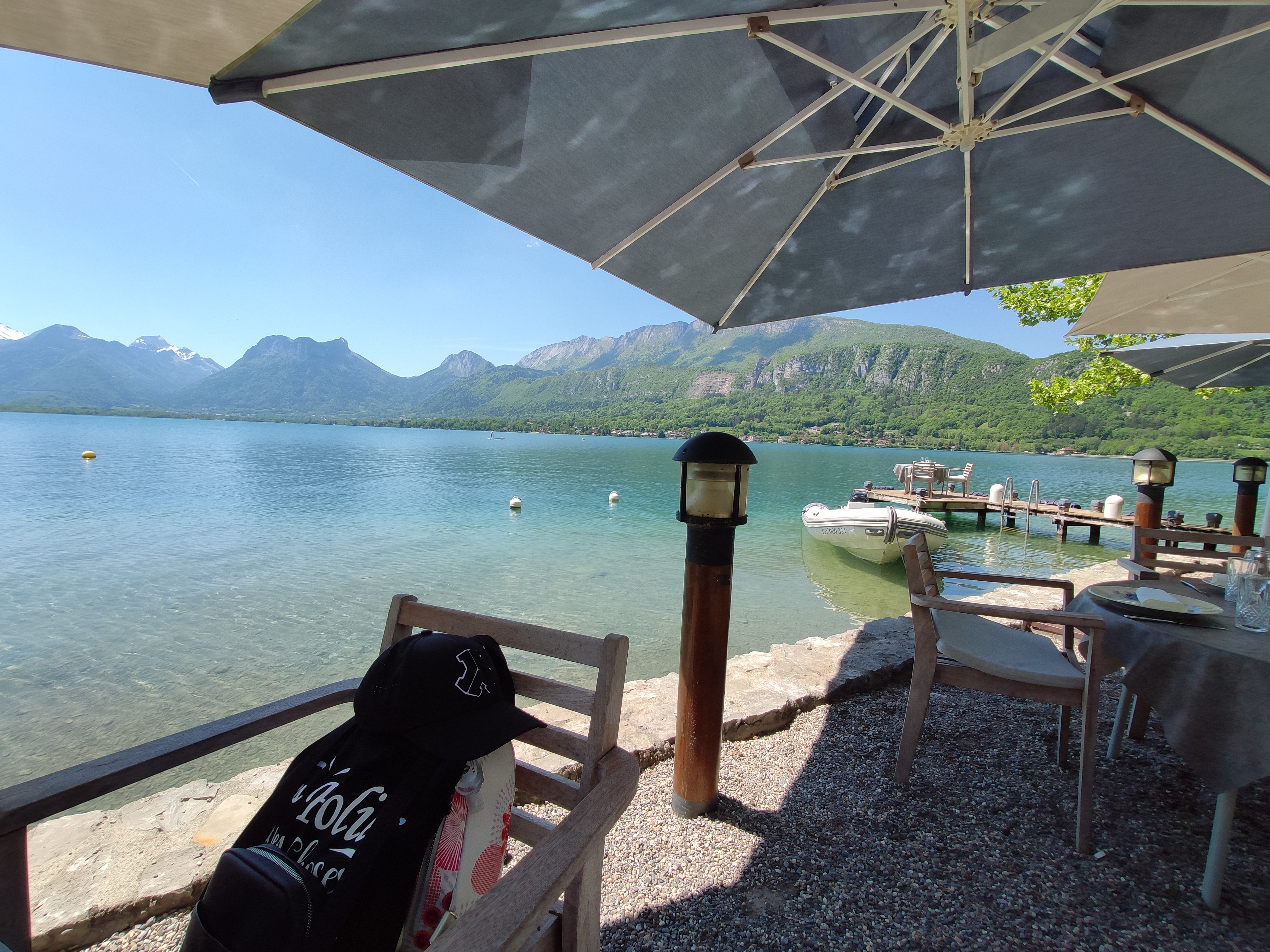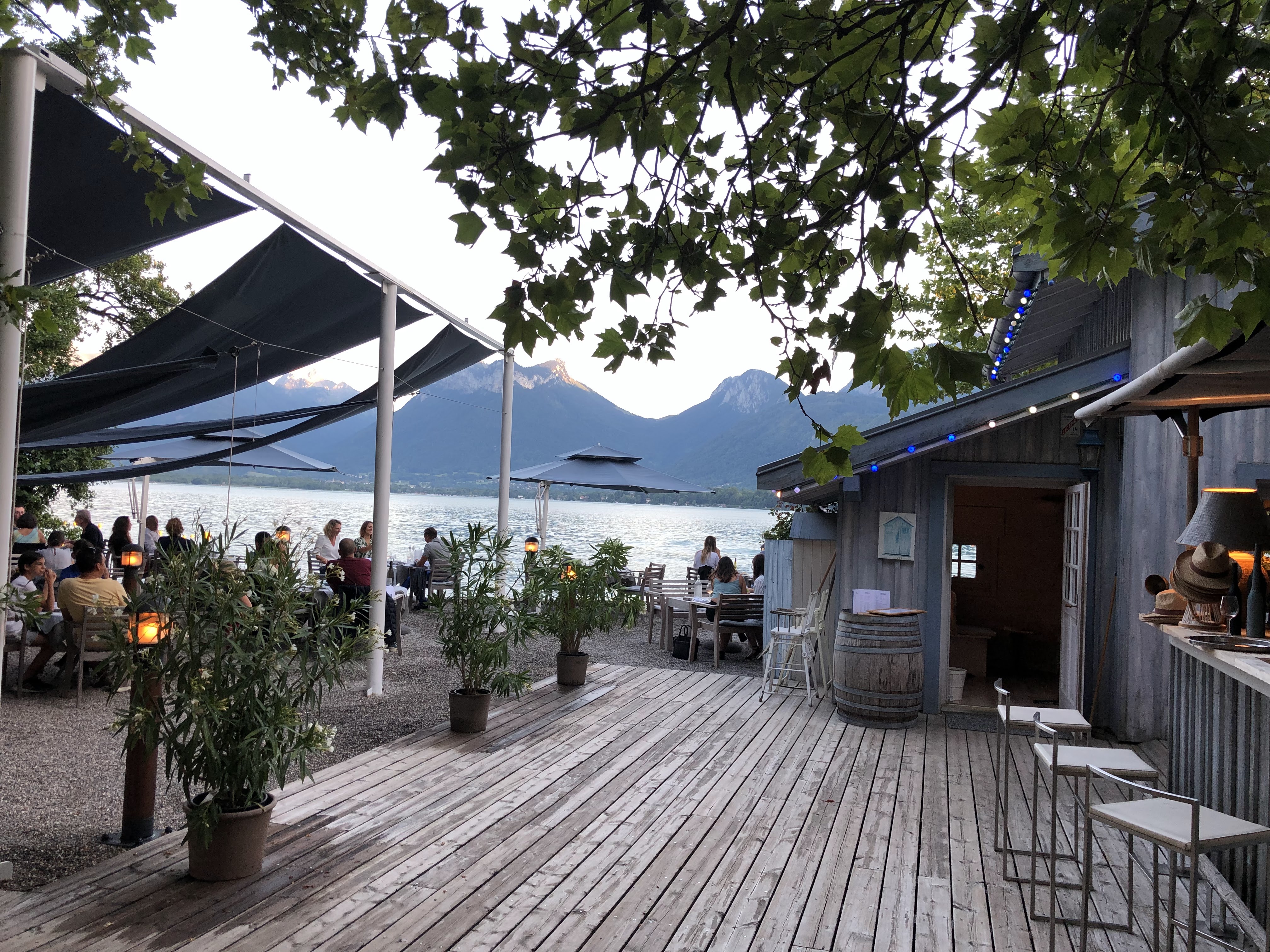 Pour un repas entre amis ou en famille, le lieu est une parenthèse enchantée au bord du lac d’Annecy. Très appréciable les distances entre les tables qui permettent un peu d’intimité.
