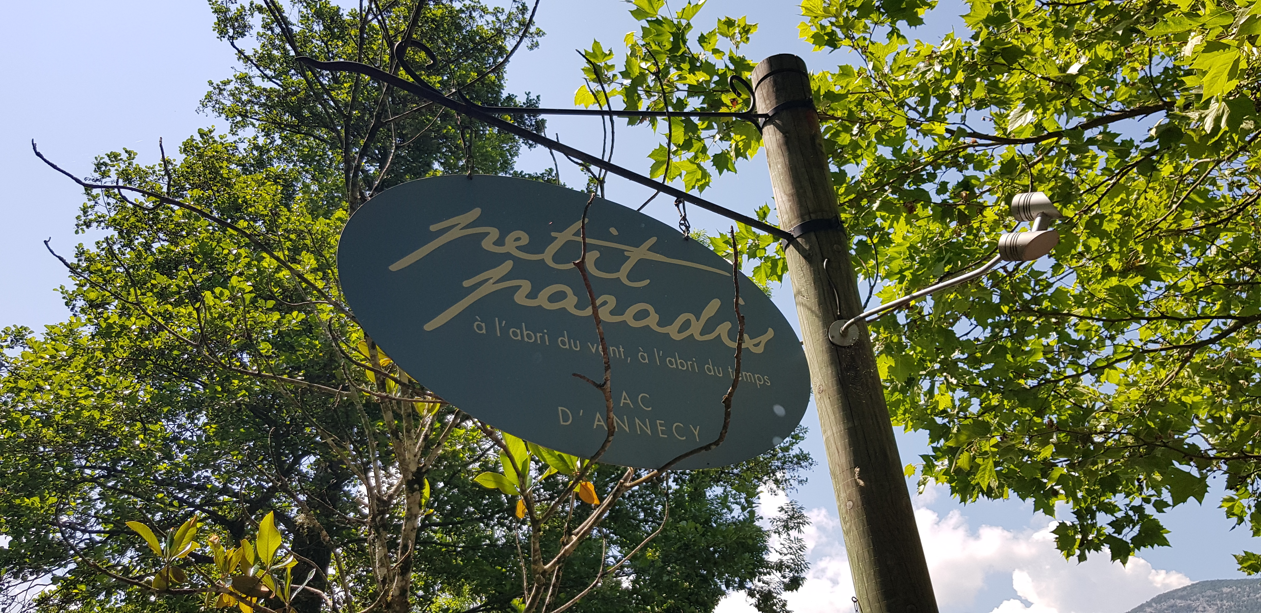 Son nom est mérité ! un véritable petit coin de paradis au bord du lac d'Annecy, un restaurant intimiste proposant une excellente cuisine française avec une touche de recherche quasi gastronomique. Une ambiance magique, dans un endroit magnifique. Littéralement au bord du lac d'un bleu azur paradisiaque, reculé des axes routiers, à l'abri d'un recoin de nature calme, dans un décor mêlant subtilement un côté simple / rustique / naturel au confort et à l'invitation au voyage et à la détente. Idéalement situé entre la plage d'Angon et le camping de Talloires (à quelques minutes de la ville d'Annecy mais dans une commune plus calme, moins citadine), avec un parking à disposition (gratuit en basse saison mais payant en juillet et août), mais dans un coin un peu moins bien desservi par les transports en communs. Des équipements modernes, confortables, et fonctionnels, un endroit bien propre, assez spacieux, avec une bonne capacité d'accueil, des tables et assises bien aménagées, et l'avantage de proposer bien sûr un côté bar pour boire un coup, ainsi qu'une zone de détente. La magie de l'extérieur réside aussi dans le fait qu'un petit ponton permet d'accoster un navire pour y accéder par le littoral, et qu'il est permis de plonger et se baigner, ce qui est un petit bonheur entre les plats qui donne un air de vacances hors du temps. Côté carte restauration, de la diversité pouvant satisfaire pleins de goûts différents, allant des classiques et une touche de recherche multiculturelle, proposant des produits locaux, frais et savoureux, des cuissons bien dosées et belles proportions servies. Un vrai régal en bouche, à la fois raffiné mais sans chichis, une belle alliance des saveurs et le tout parfaitement présenté ! Personnel véritablement agréable et serviable, efficaces, rapides et disponibles ! Bonus appréciable, accueil ouvert d'esprit et sans jugement sur le genre exprimé (donc LGBT friendly et ce, à plusieurs visites sur plusieurs saisons différentes). Prix plutôt honnêtes voire étonnamment raisonnables pour la qualité proposée et à la beauté de l'emplacement. ça reste accessible pour des budgets moyens donc vraiment un endroit qui reste humble malgré la beauté et qui se veut ouvert à toustes. Testé et approuvé à plusieurs reprises voire même devenus des habitués locaux depuis plusieurs années, jamais de déceptions.