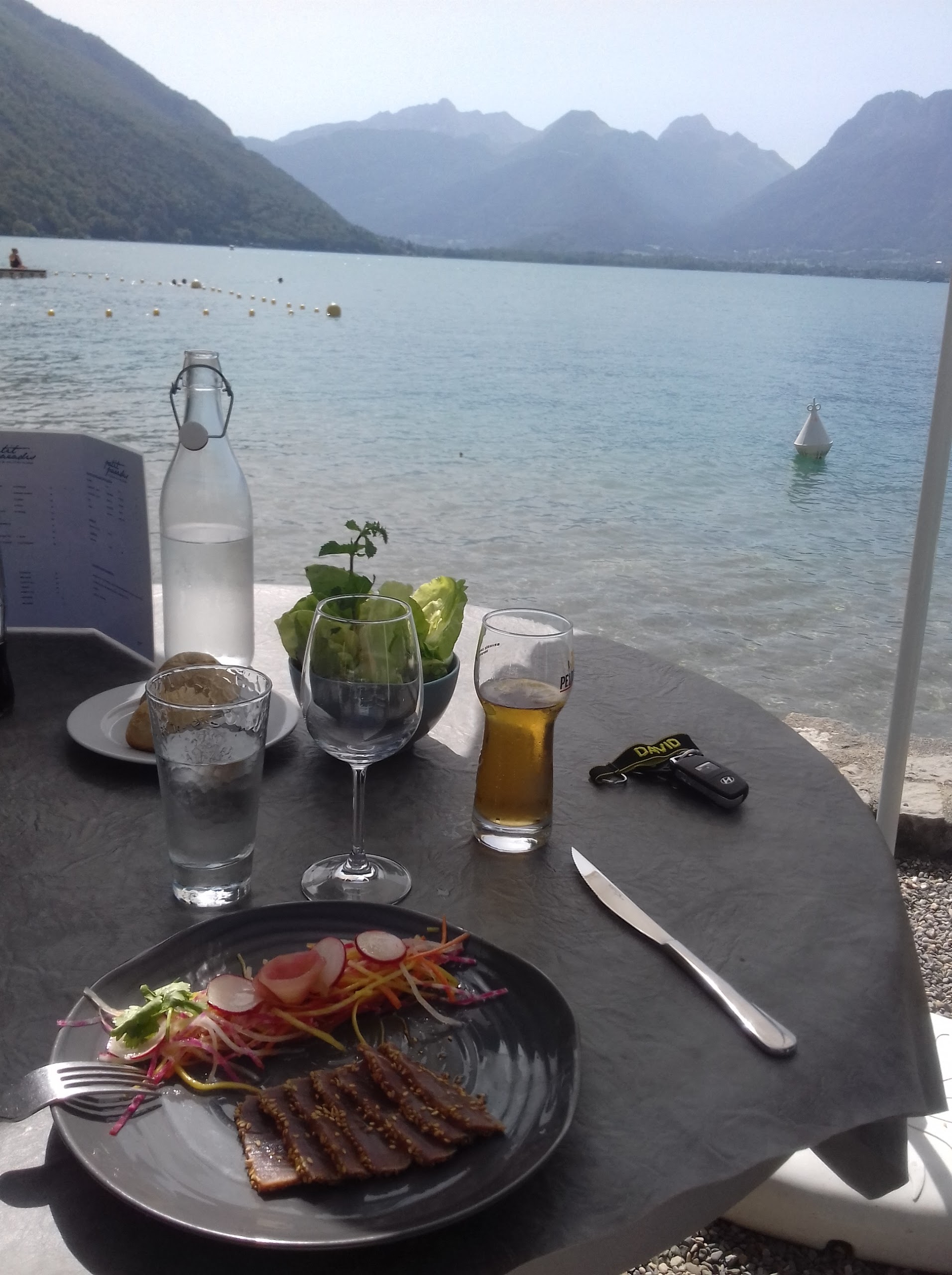 Un concept génial : les pieds dans l'eau avec possibilité de se baigner entre deux plats dans le lac d'Annecy. Appréciable pendant les fortes chaleurs, sans oublier la carte du chef. 👌👌👌👌👌