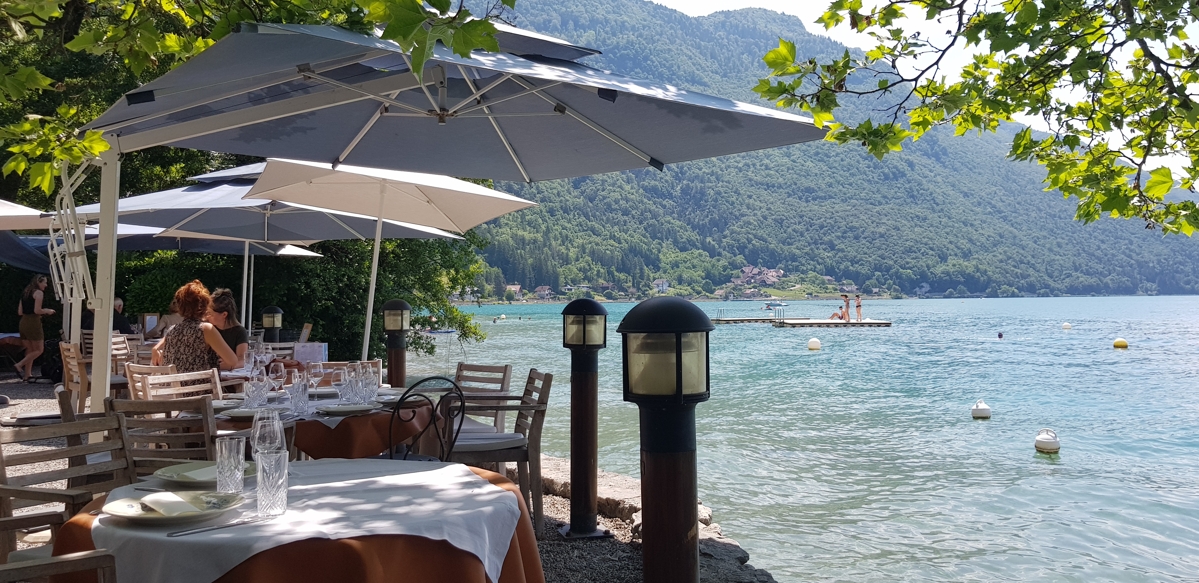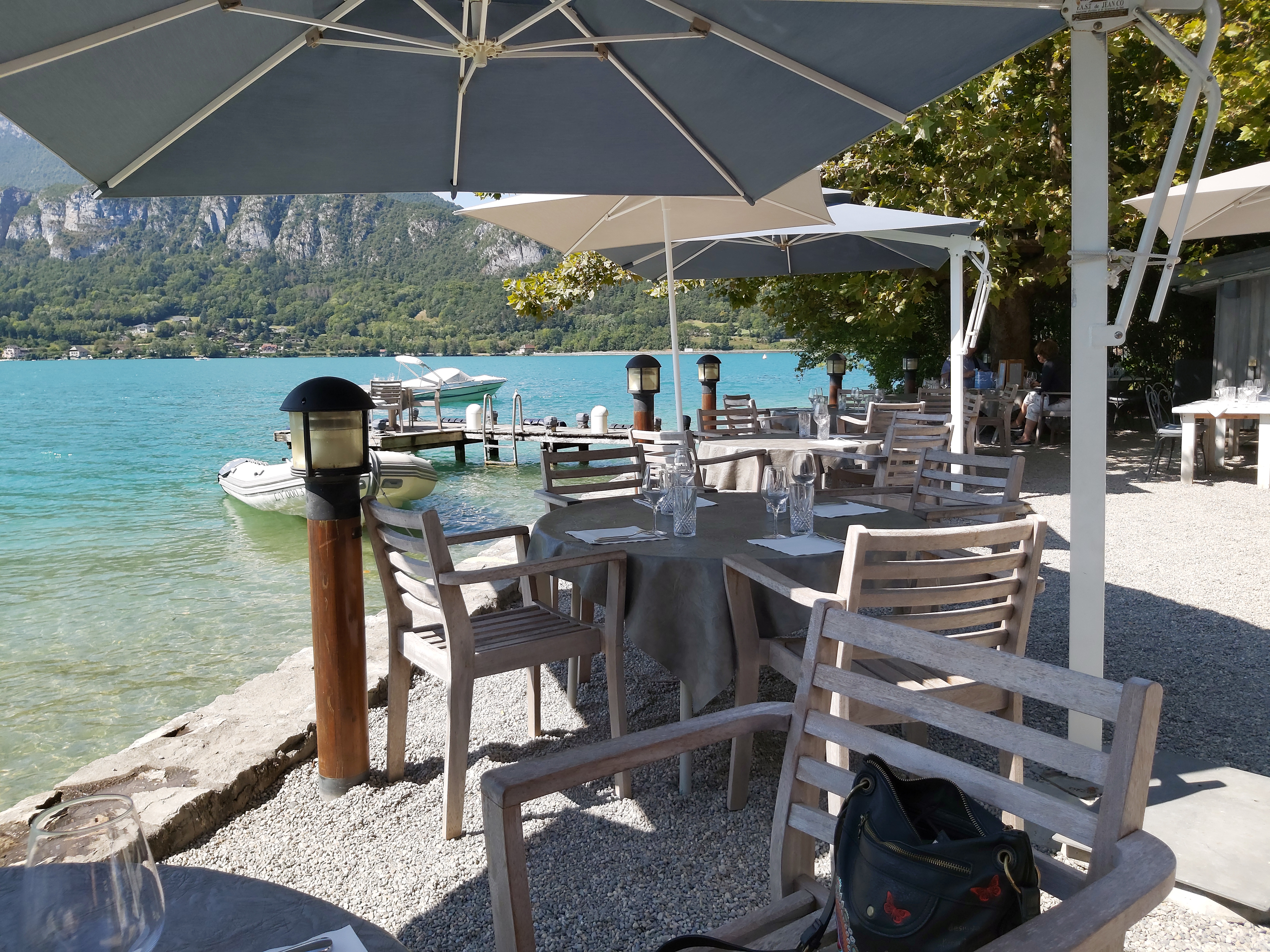 Incroyable petite perle au bord du lac d'Annecy. Restaurant gastronomique en un plein air dans un cadre divin pieds-dans-l'eau. Ayant une atmosphère relaxé, le personnel très sympathique vous propose de très bonnes choses à manger d'une petite carte. Inventif et bon, vous ne saurez pas d'écus ! Un peu cher par contre, mais en considérant la qualité de la nourriture, le service et le cadre, ça en vaut chaque centime! Vous pouvez aussi toujours venir pour un simple café ou dessert en admirant le paysage :)