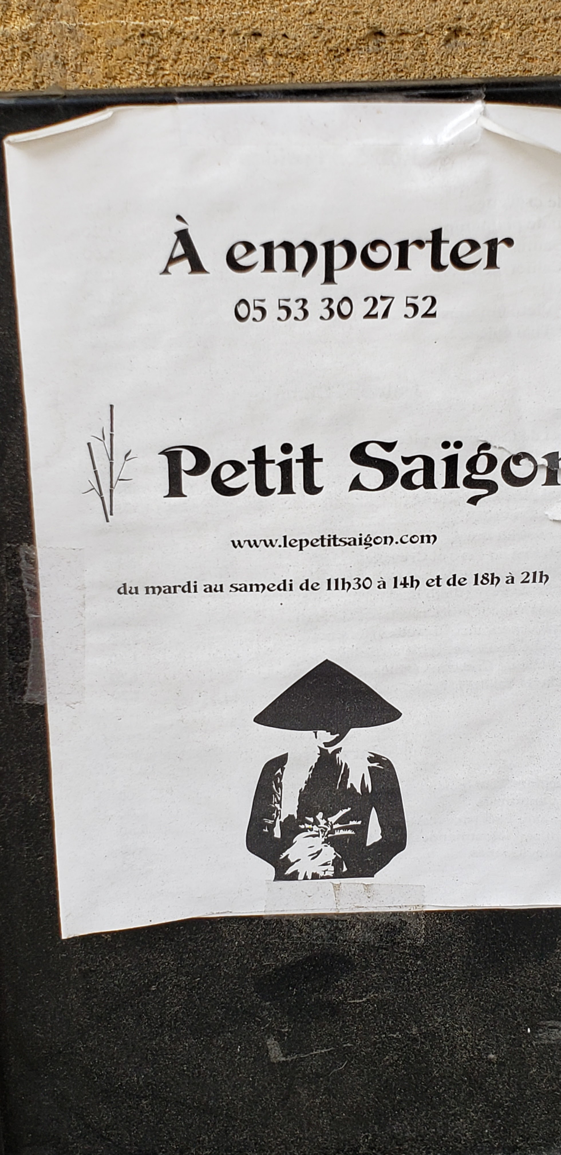Voici toutes les informations sur le Restaurant vietnamien Petit Saïgon qui ce trouve au 40 Av. Gambetta, 24200 Sarlat-la-Canéda (24). Sur cette fiche vous trouverez les photos, l'adresse, les horaires d'ouverture, le numero de téléphone et les avis clients.Vous pouvez églement rédiger un avis si vous le souhaitez en bas de page.