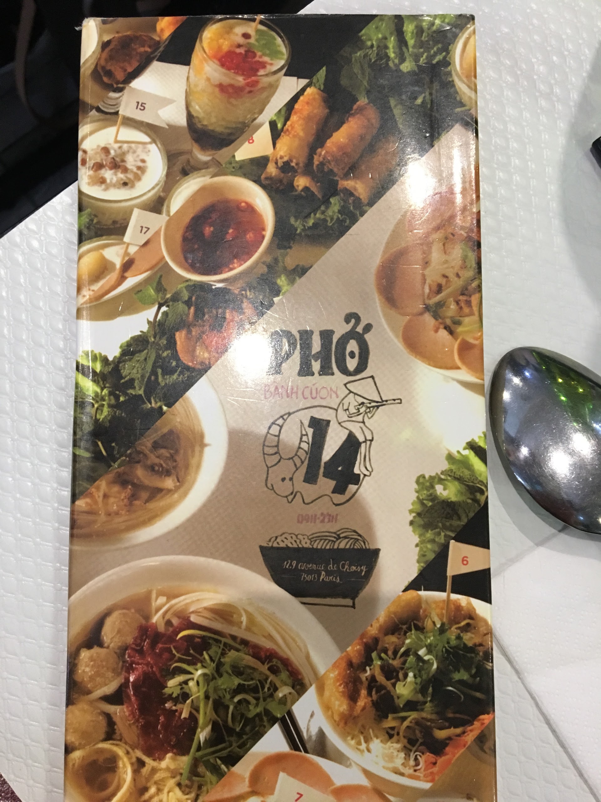 Pho 13 débarque du XIIIe dans le 1er et il s'appelle Pho 14 (13+1 ?) en tous cas pas de faux comptes dans l'assiette un Pho délicieux au très bon bouillon. Il ne faut pas craindre de sentir un peu la friture en sortant ! A deux le midi ça passe à plus il faut de la chance pour ne pas patienter. (éditer pour correction ortho)