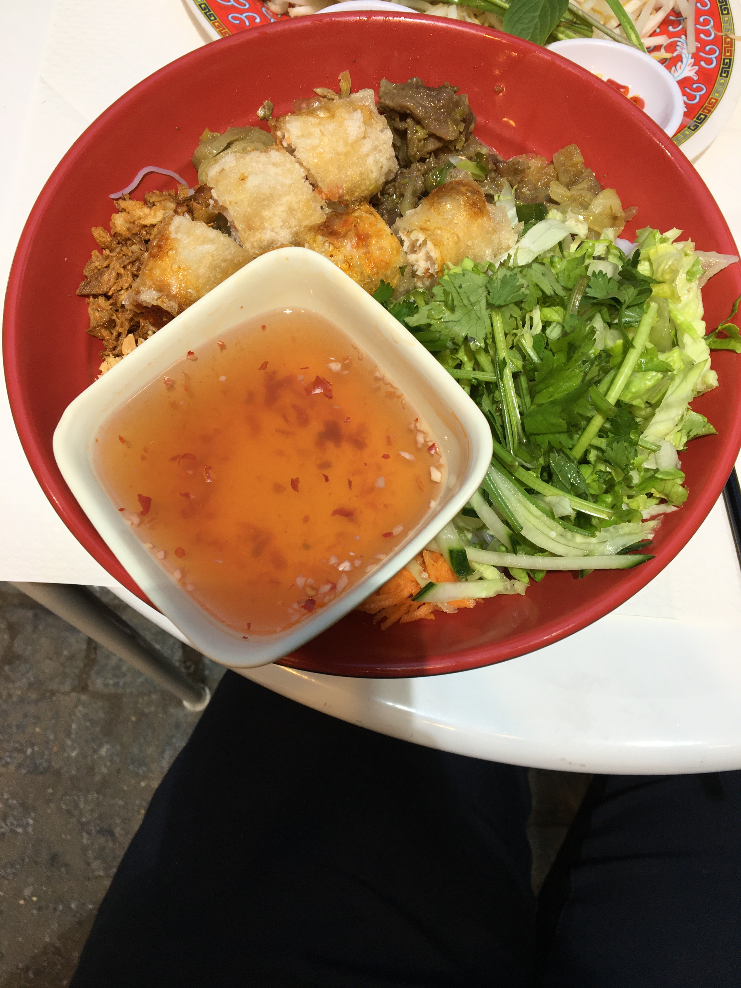 J'ai testé le loc lac: viande trop cuite, riz sans saveur. Puis j'ai testé un bobun. C'était un peu mieux mais sans plus.