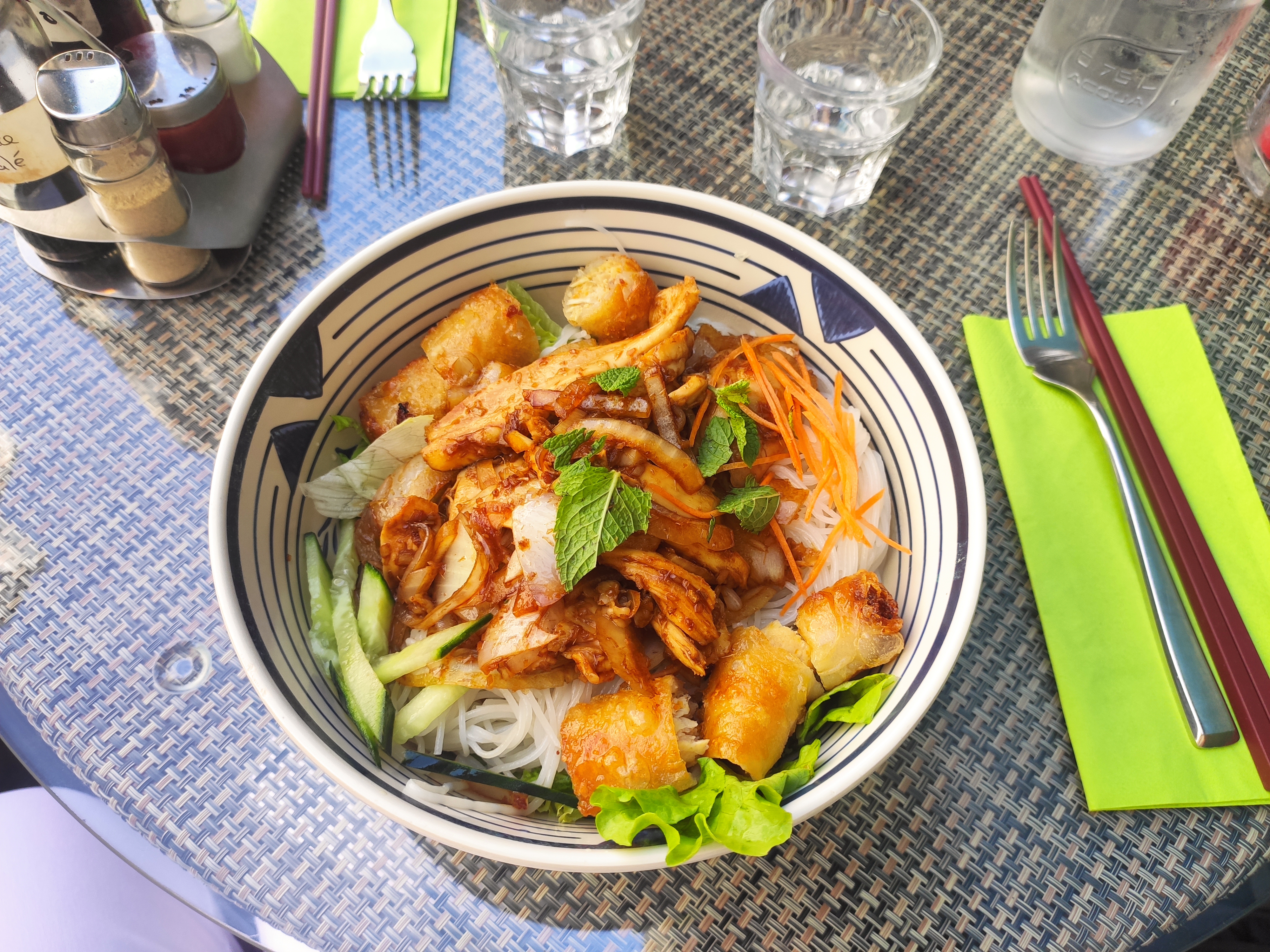 Toujours surprenant de voir un restaurant vietnamien sans viande de porc ! La cuisine est correcte les portions un peu justes notamment le bobun
