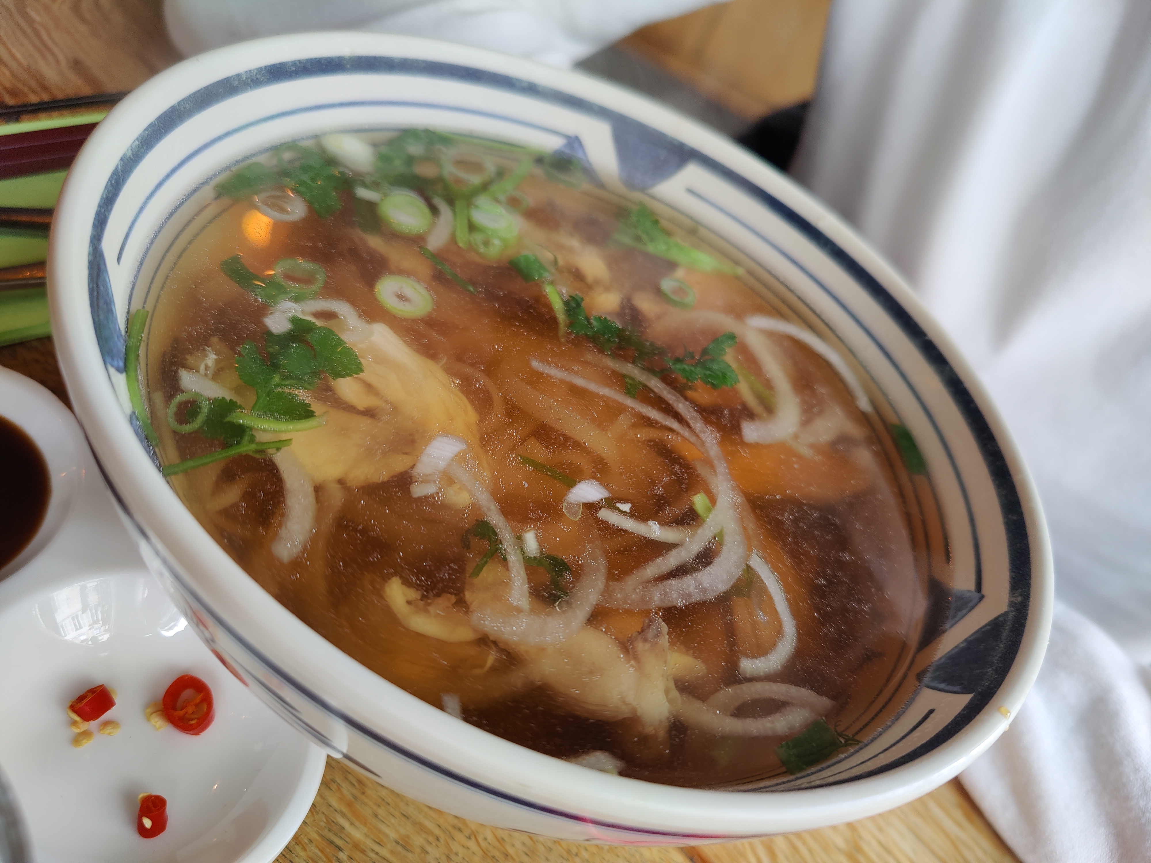 Le meilleur bouillon pho. Le poulet était génial, de belles tranches moelleuses au lieu des fines tranches typiques. Je recommanderais de partager un bol car il s'agissait d'une portion énorme.