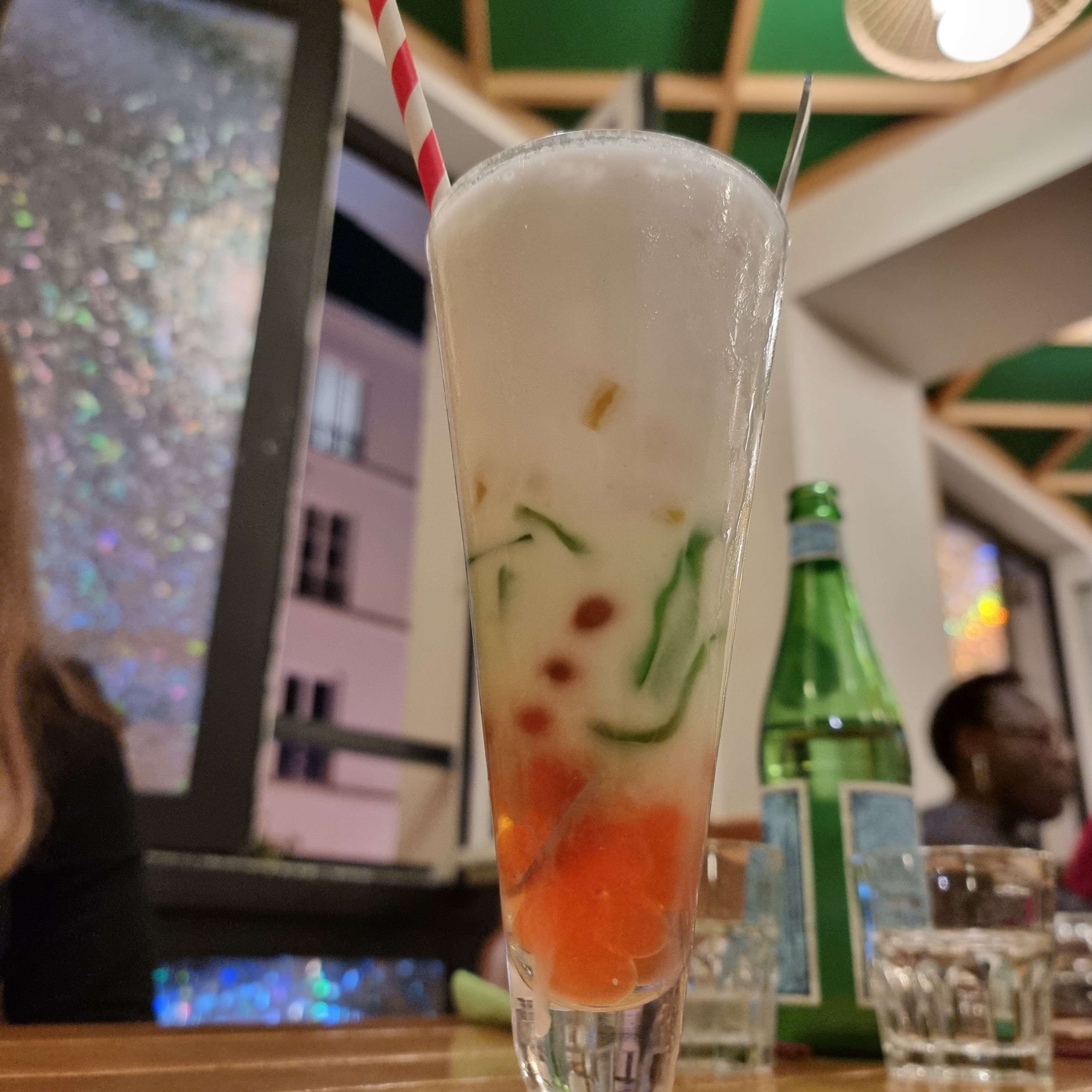 Délicieux Bo bun et pho au boeuf tendre et juste saisi, boisson 3 couleurs généreuse en lait de coco, gelées de fruit goûteuses et glace pilée ! Une très bonne adresse juste à côté de Bastille ☺️🎇