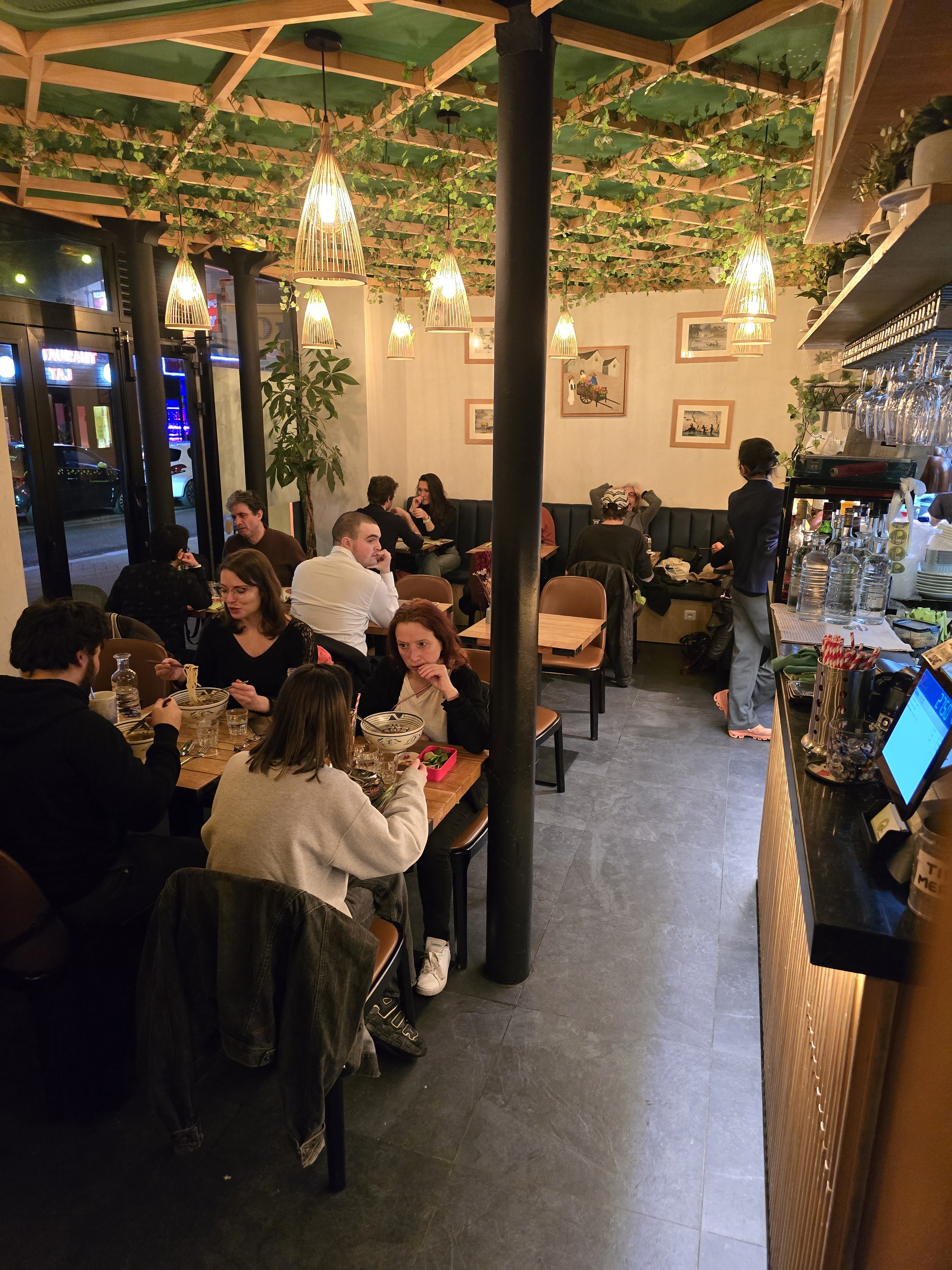 Sympa La décoration est simple, le restaurant possède un étage ainsi qu'une terrasse. Le service est correct et plutôt rapide compte tenu de l'affluence. Le bobun était très bon et le reste des plats assez satisfaisants.