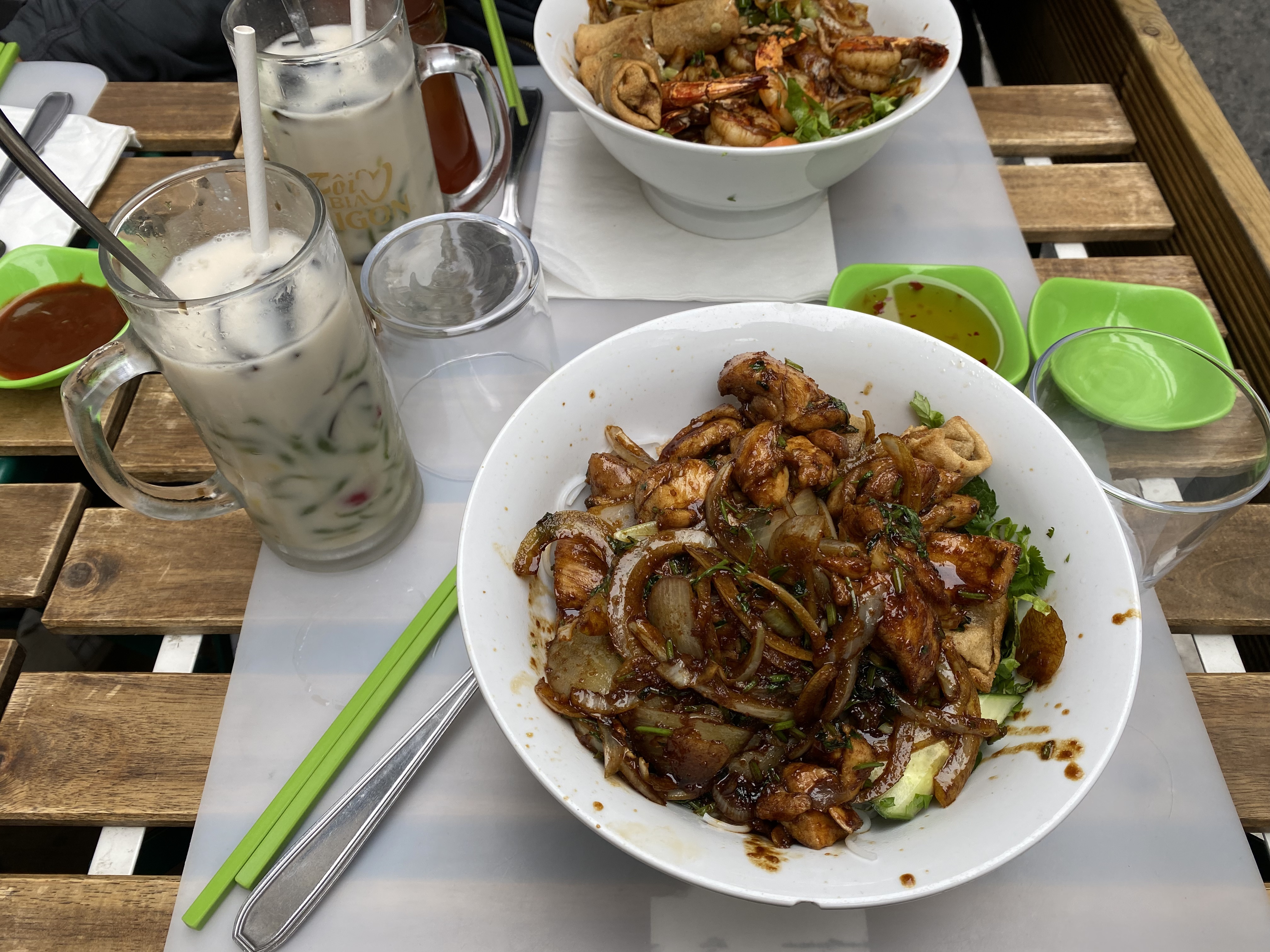 Très bon rapport qualité / prix ! Portion très généreuse pour le bo bun au poulet La boisson trois couleur est très bonne ! (Attention beaucoup de sucre pour ceux qui veulent garder leur ligne haha ) La salle est vite remplie, donc obligé de manger en terrasse sinon rien à dire au niveau du service