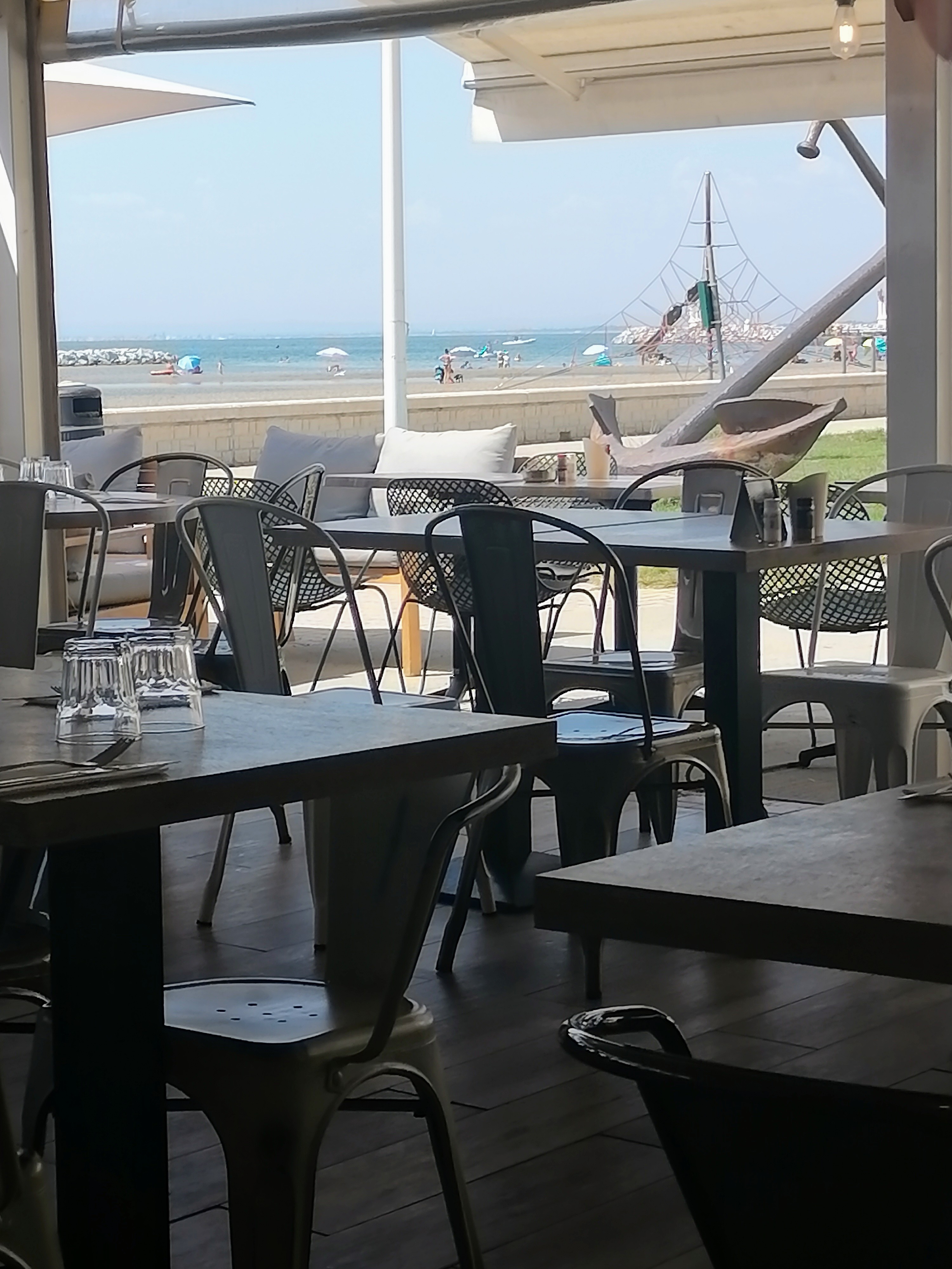 Venus dans ce restaurant après avoir lu les avis sur google et le fait qu’il soit bien situé (bord de mer). Un peu déçu du service, nous avons demandé à ne pas avoir notre apéritif en même temps que notre plat (commande prise en même temps à la demande du serveur). Le serveur nous certifie que ça ne sera pas le cas. Finalement nous avons tout eu en même temps, on s’est donc retrouvé à manger des moules en buvant un apéritif… Le menu enfant est un peu limité, aucune possibilité de changement de boisson ou de dessert (avec supplément bien évidement). Le serveur en charge de notre table demande aux tables avoisinantes si leur repas se passe bien, à aucun moment il n’est venu nous voir pour savoir si tout allait bien de notre côté. C’est dommage car les produits sont bons et de qualité (même si le smoothie commandé n’était rien de plus qu’un jus de fruits…) Nous avons tout de même préféré partir avant le dessert pour le prendre ailleurs. Malgré notre venue annuelle au Grau du Roi, nous ne pensons pas revenir dans ce restaurant.