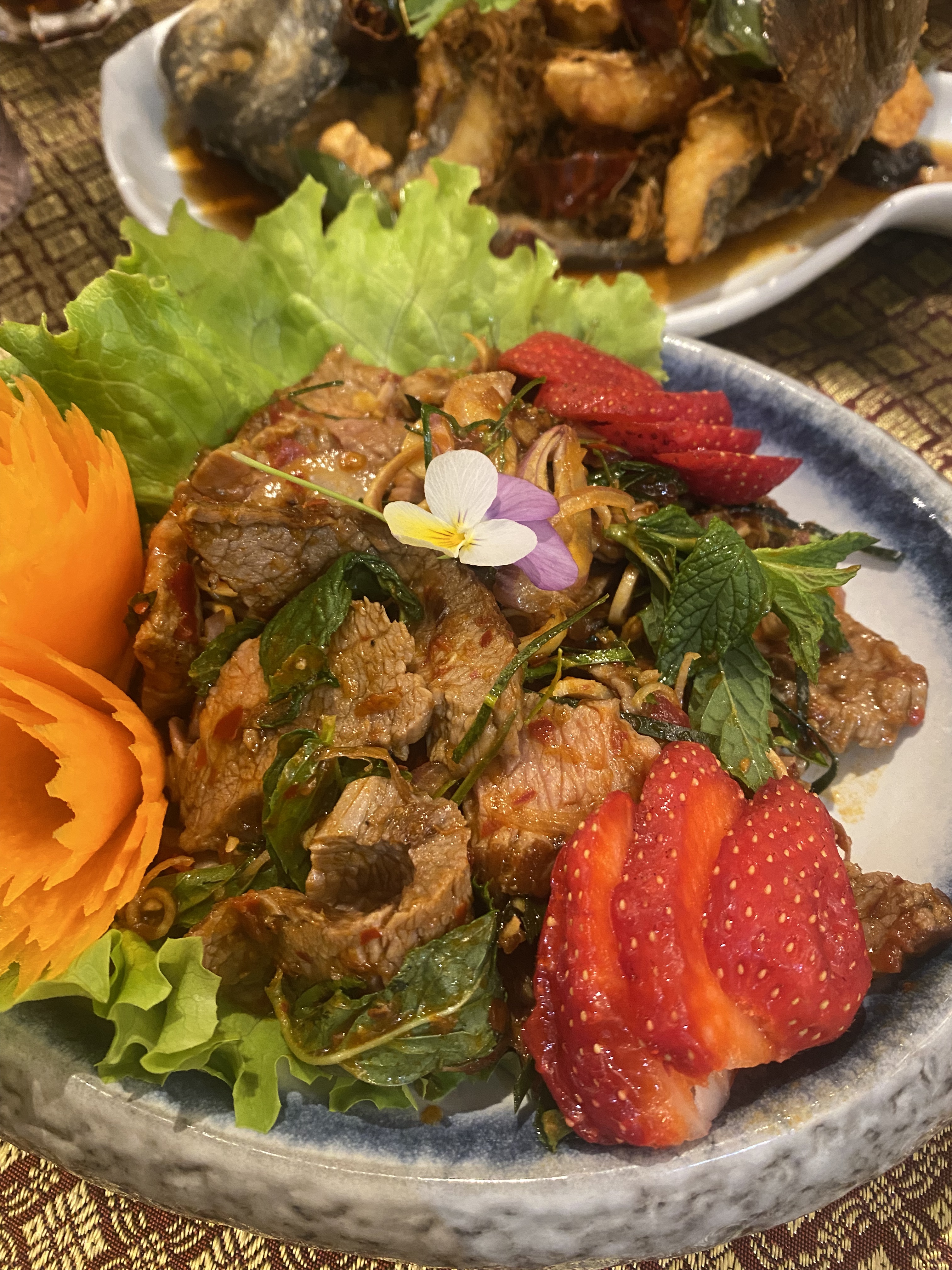 Tous nos amis nous avaient recommandé cet incroyable restaurant. . ils ont dit que c'était délicieux! ! ! Et ils avaient raison ! J'ai commandé la salade de boeuf et c'était ABSOLUMENT DIVIN !! Il y avait une délicieuse sauce signature qui était tellement bonne! J'ai besoin de la recette maintenant !! Merci beaucoup Phatsara de nous avoir servi les repas les plus délicieux de tous les temps!