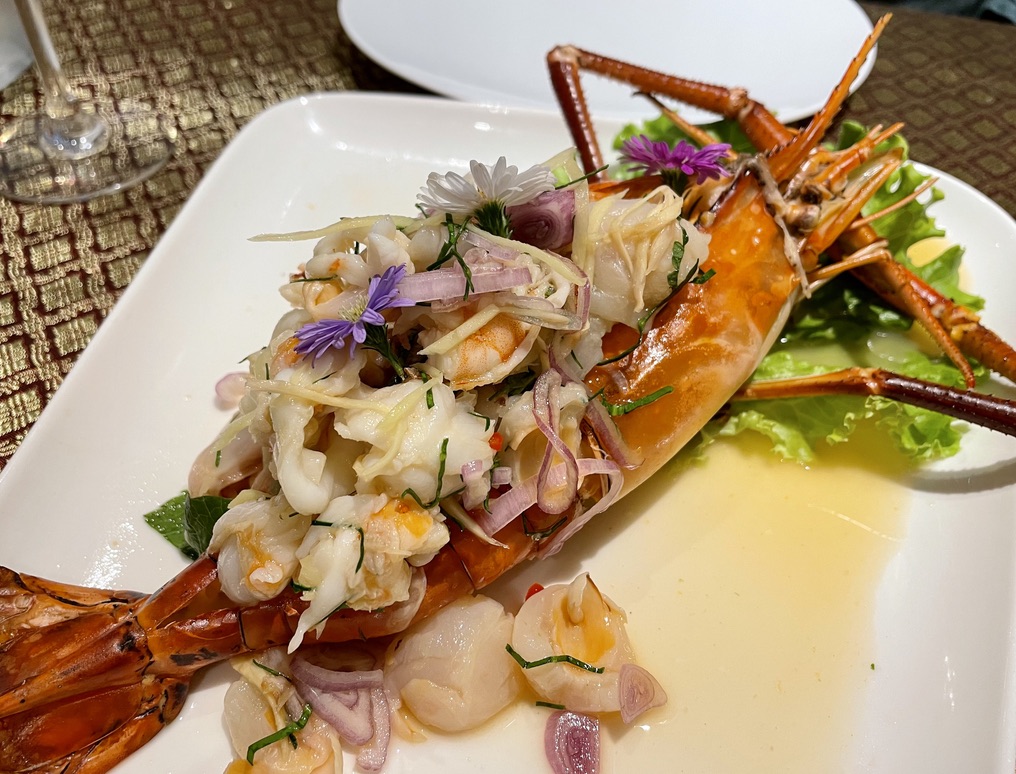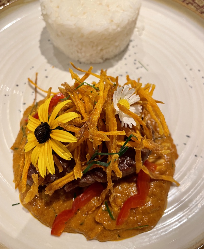 Nous avons encore eu un merveilleux repas au restaurant familial @Phatsara - Saveurs de Thaïlande à Aix. Le chef Jira est thaïlandais, son mari Ben et sa fille Ilona dirigent la devanture de la maison. Parlez-leur du degré de piquant que vous aimeriez avoir, ou pas du tout. Ils ajusteront le niveau d'épices à votre demande. Lors de notre dernière visite, nous avons demandé à l'avance au chef Jira de nous surprendre et de cuisiner pour nous et elle l'a fait. La nourriture était délicieuse, avec tant de niveaux de saveurs ! L'apéritif était une salade géante de crevettes d'eau douce au litchi et à la citronnelle : San Wa Kung. Le plat principal était un steak tendre avec une sauce au curry rouge, aux cacahuètes et à la noix de coco rôtie maison : Panang Nuea. Je ne sais pas si vous devrez les commander spécialement à l'avance ou s'ils sont au menu. Tout est fait maison. Nous avons également eu une belle bouteille de La Porte sauvignon blanc. Ilona a un fort intérêt pour le vin... Ils ont également le Château Beaupré local au menu ainsi que de la bière locale et thaïlandaise. Bon pour les familles, les couples ou les amis, pour manger à l'intérieur et à l'extérieur, tout le monde est très sympathique. Juste à côté du coin Sextius et Cordelier sur la rue Van Loo.