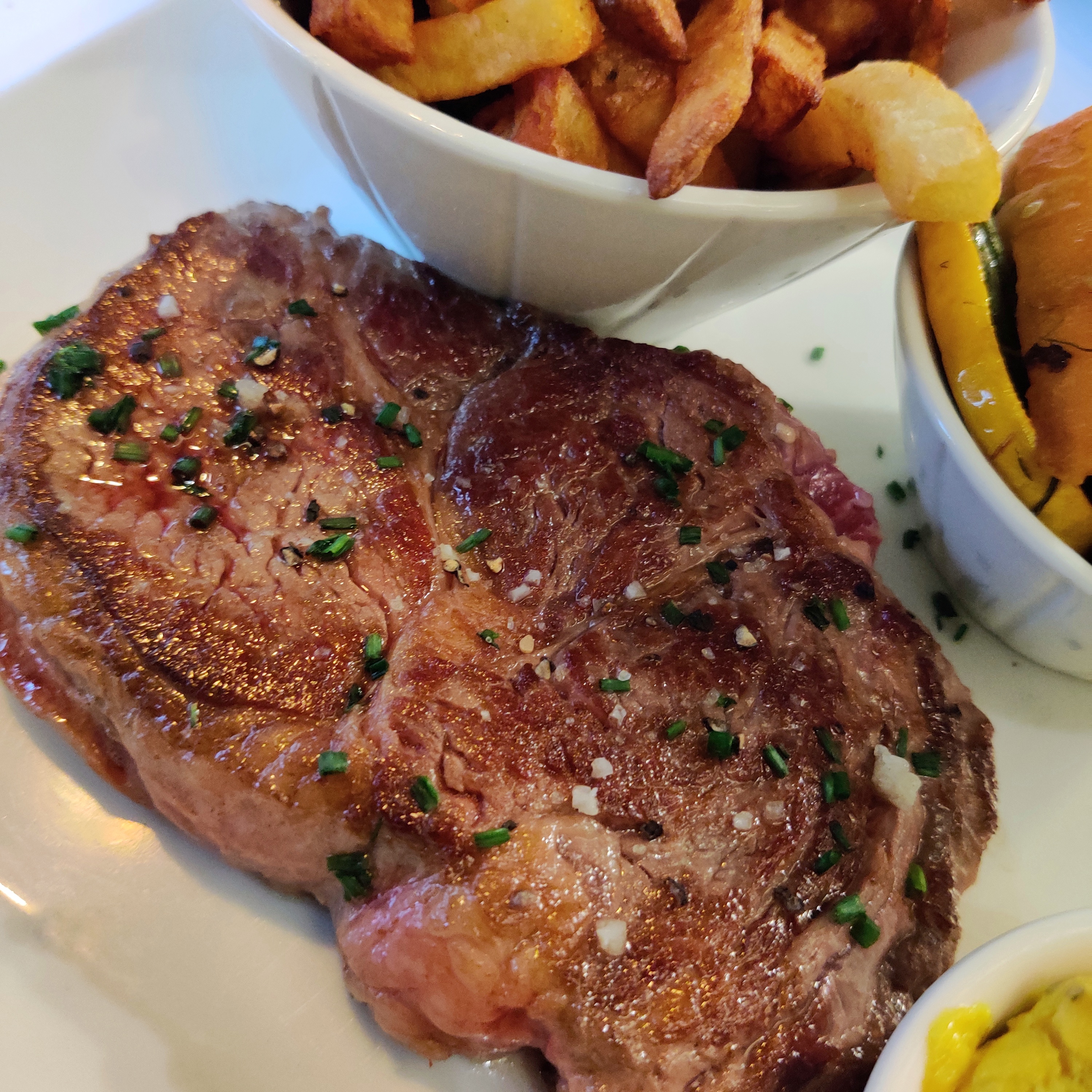 Ambiance incroyable avec des côtes de bœuf et des frites absolument délicieuses. Hautement recommandé!!