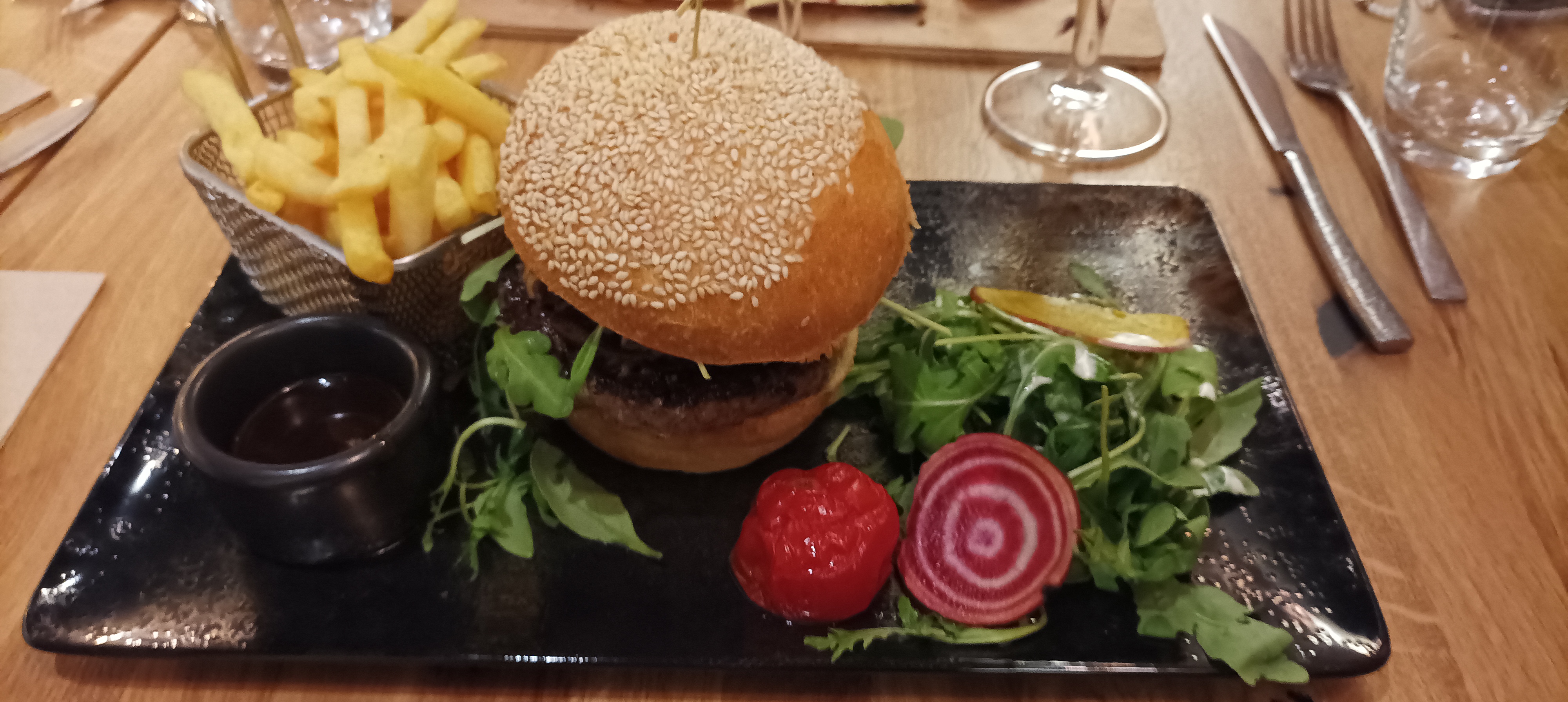 Nous avons pris le hamburger le plat et assez copieux nous avons bien mangé