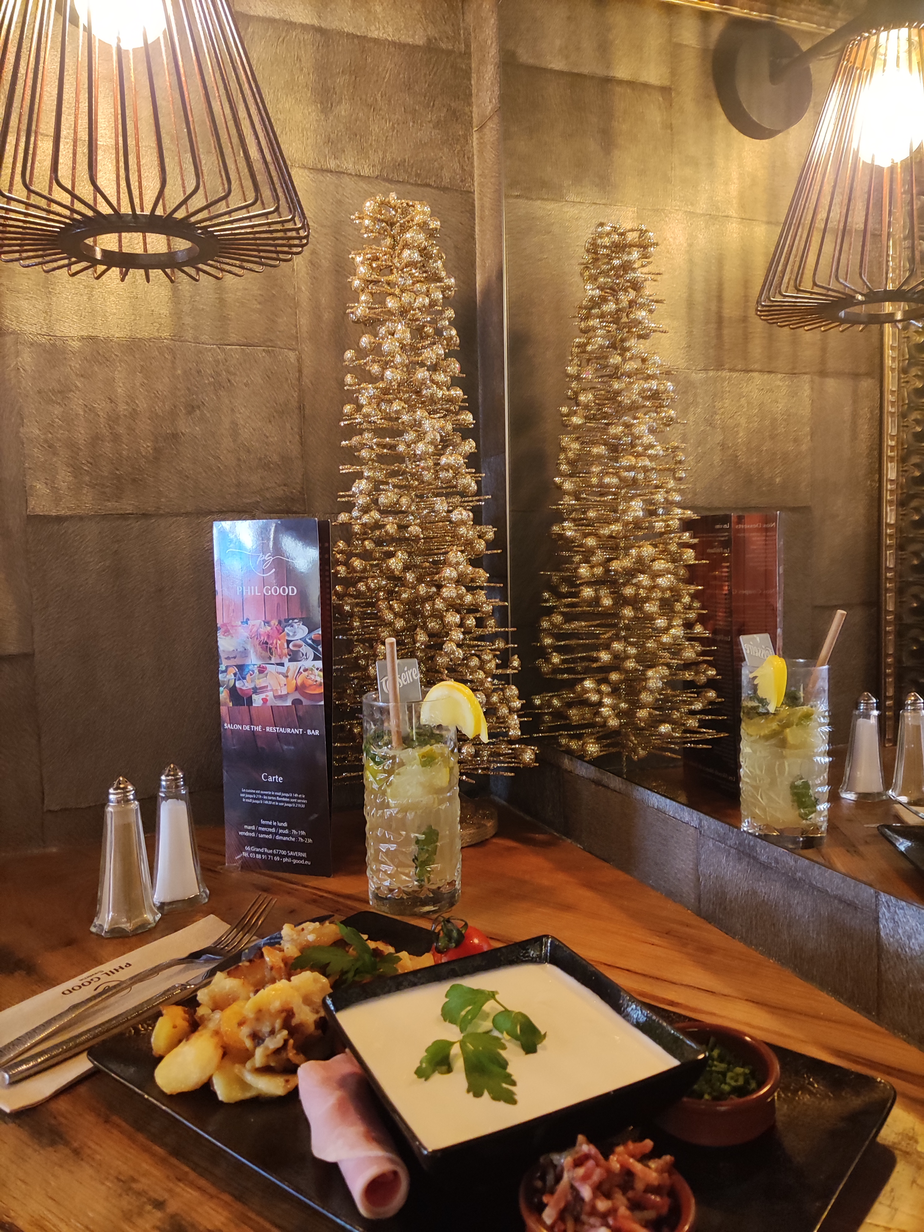 C'était notre première fois chez Phil Good et on n'a pas été déçus. Les plats sont copieux et bons. Tarte flambée aux oignons confits et salade césar que nous avons partagés. Malheureusement on n'avait plus de place dans notre estomac pour goûter un dessert ! La petite salle au fond est charmante et cosy. Lors d'une prochaine escapade à Saverne, on reviendra vous voir.