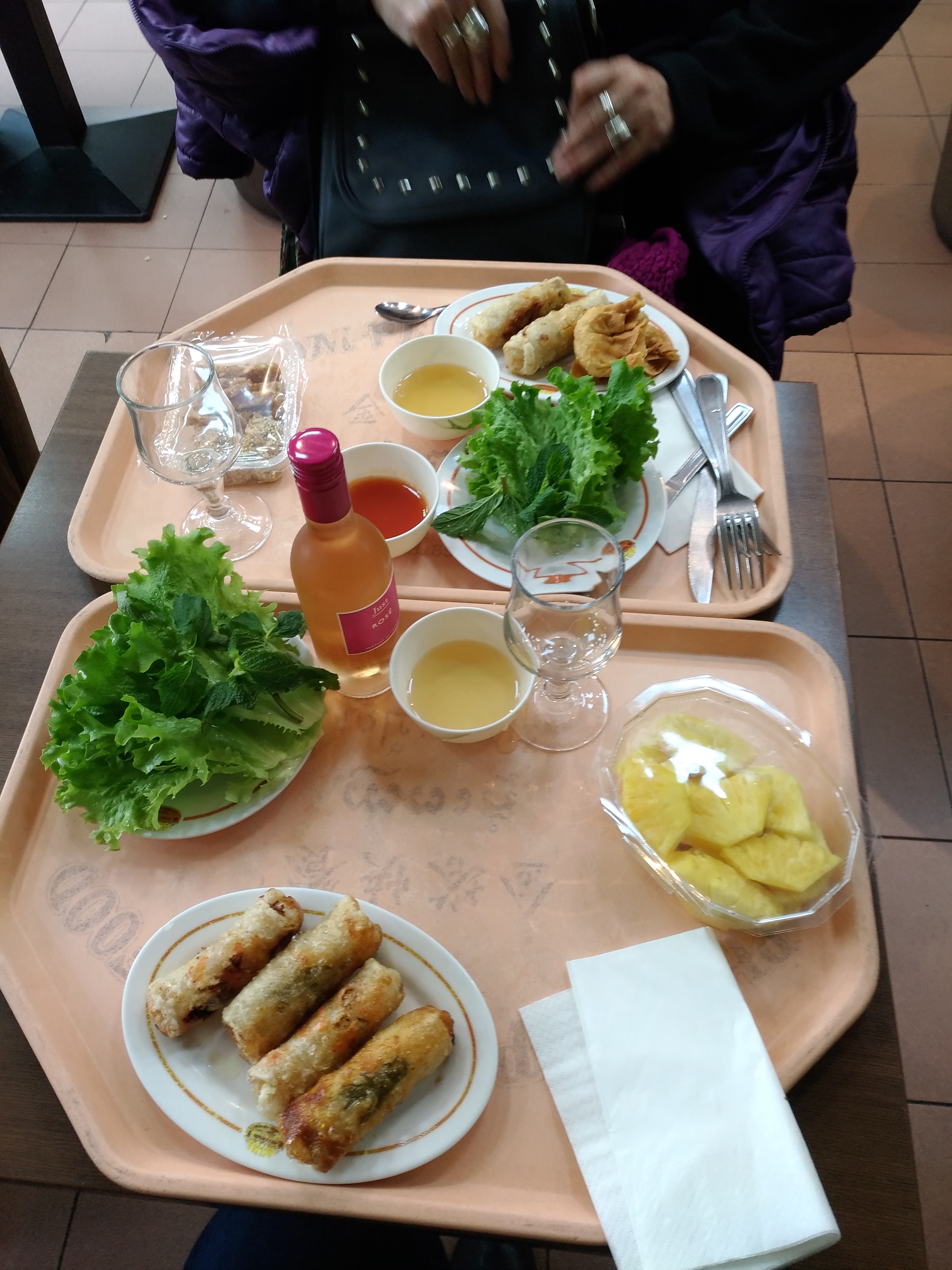 La nourriture était vraiment bonne. Les rouleaux de printemps contenaient trop d'huile. Tout était en grosses portions. 22 euros un déjeuner pour deux, 4 types de plats, 2 boissons et un dessert.
