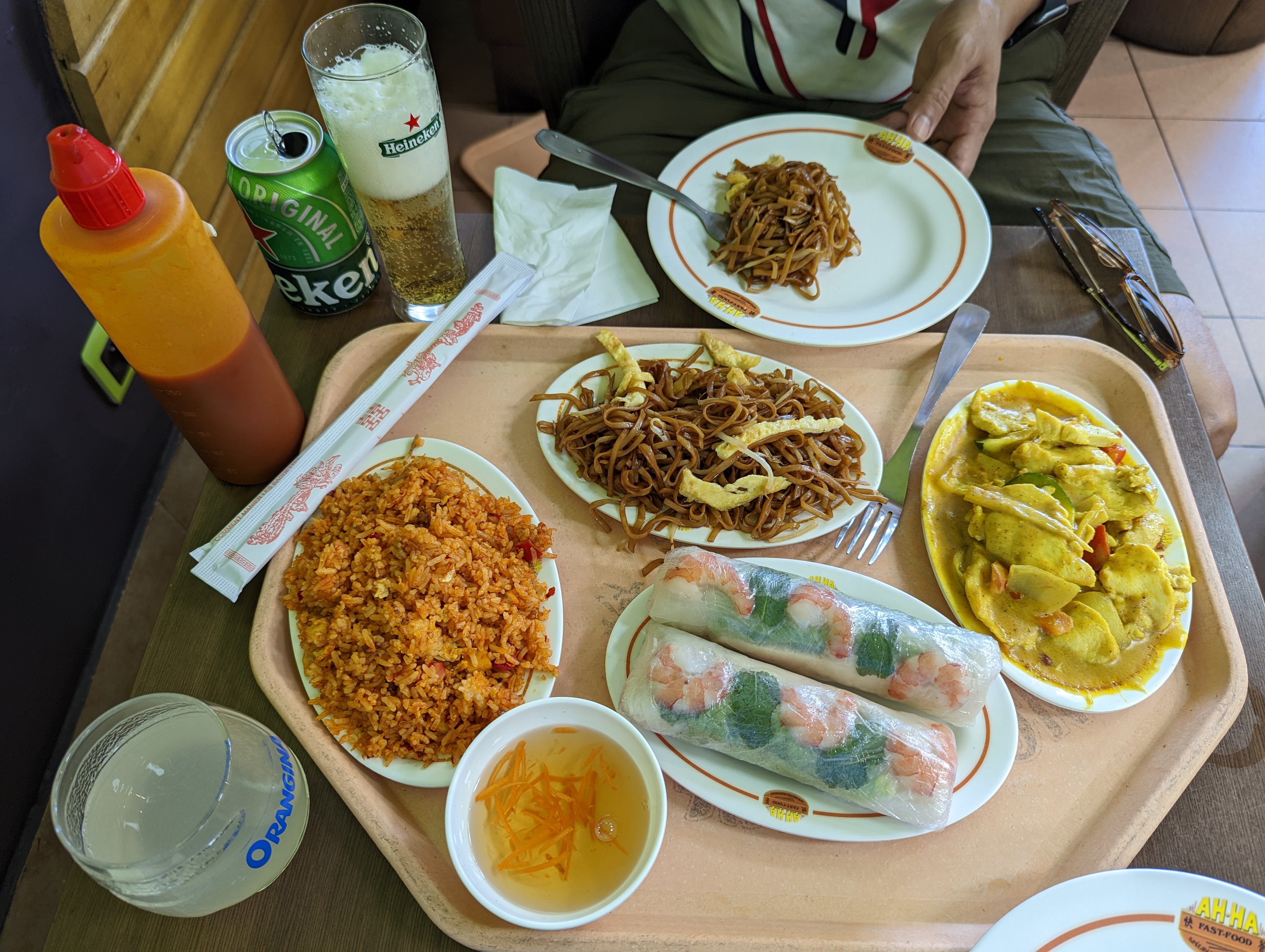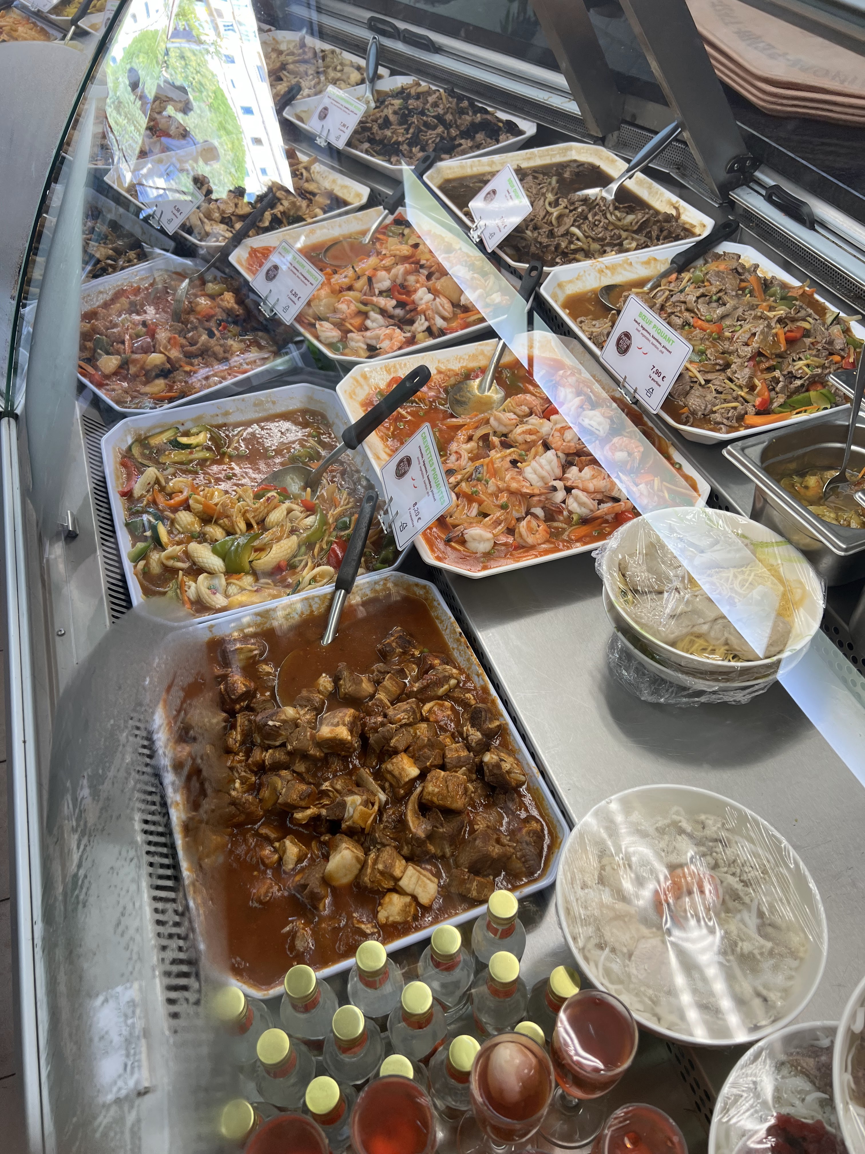 Nous sommes une famille de 5 personnes et avons mangé environ 8,5 euros par personne. Nous n'étions pas difficiles, car c'est bon marché, mais je dois dire que la nourriture n'était vraiment pas très bonne. (Viande, riz,... À quel point peut-il être frais s'il reste là toute la journée ?) Le personnel était sympathique. Cependant, certains plats étaient encore froids à l’intérieur, nous avons donc utilisé nous-mêmes le micro-ondes pour réchauffer les aliments. Pensez peut-être à utiliser Google Maps pour trouver autre chose, à moins que vous ne soyez pressé ou que vous souhaitiez économiser votre argent.
