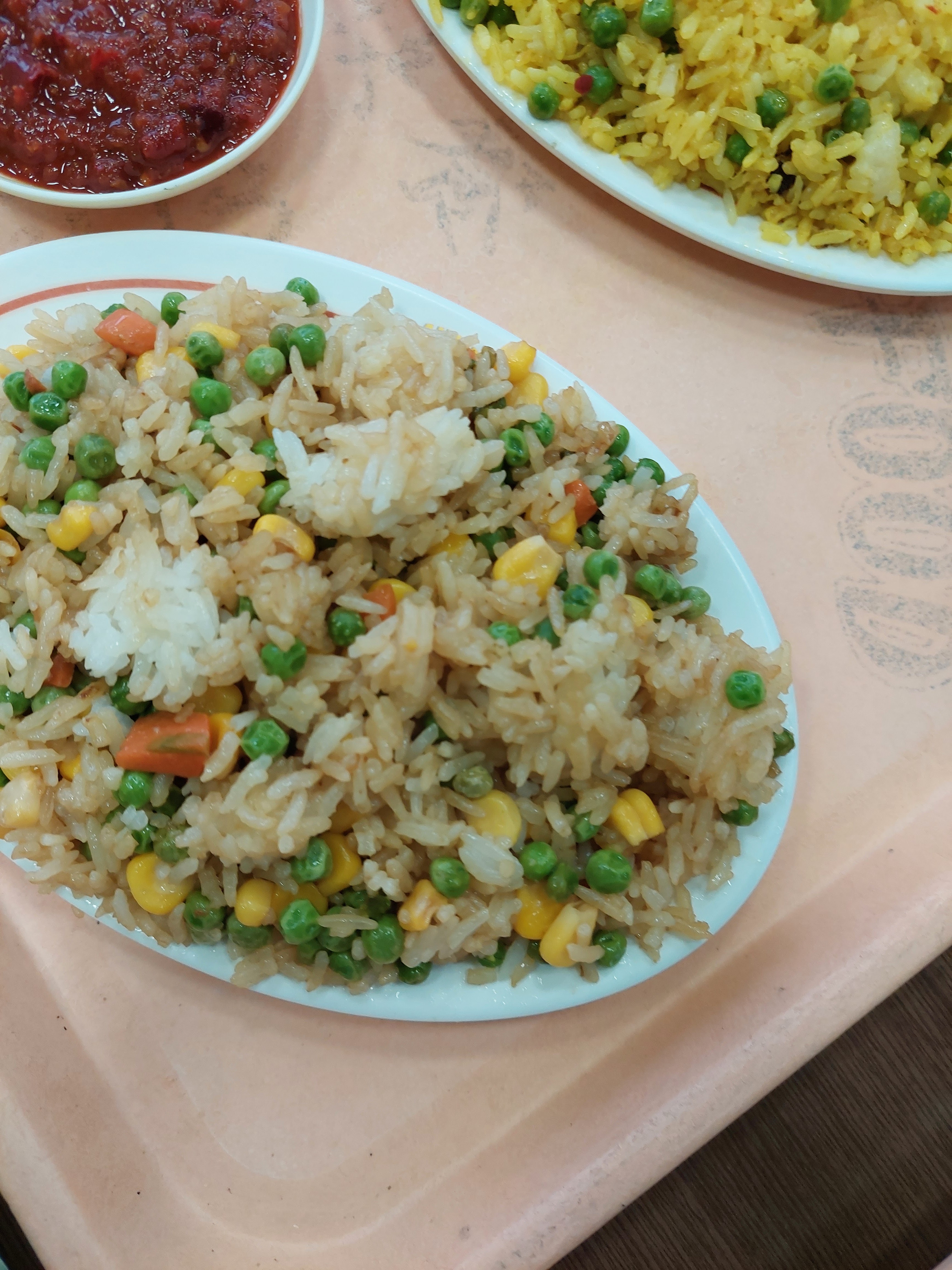 Le riz végétarien et indien était très bon. Aussi les samosas au poulet et au bœuf. Il y a de grandes portions. Nous avons emporté la nourriture avec nous. Les sauces étaient incluses gratuitement.