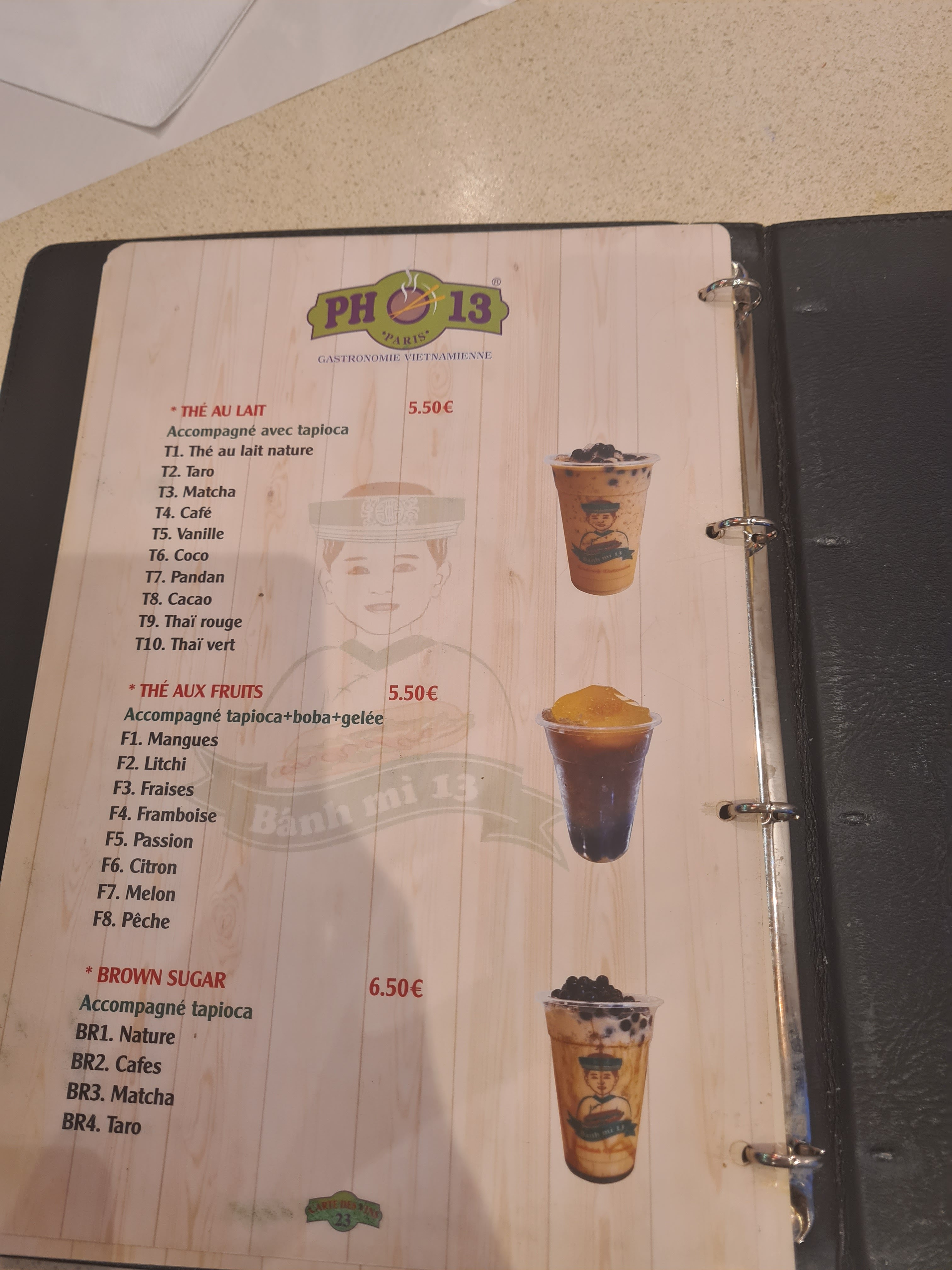 Mon premier avis datant de plus de 3 ans, avec 3 étoiles, une petite mise à jour est nécessaire, je pense. Dimanche 5 novembre 2022, nous avons pris notre déjeuner au Pho 13. Bon accueil, bon repas et prix correct. Le petit plus qui vaut les 5 étoiles, maintenant, c'est le service. Il a été rapide aujourd'hui malgré le monde qu'il y avait 😊. ________________________________________ Un dimanche après-midi, assez tard, nous sommes passés au Pho 13 pour déjeuner. J'aime bien le décor simple et clair, pas trop de superflus: côté mûr, grande banquette beige, toilettes à la bonne taille 🙂. L'accueil était chaleureux, le personnel professionnel et à l'écoute, le repas bon, le prix abordable. Seul souci, l'attente des plats a été un peu longue, peut-être à cause de l'heure. Pourtant après nous, il y a eu encore d'autres clients qui sont arrivés.